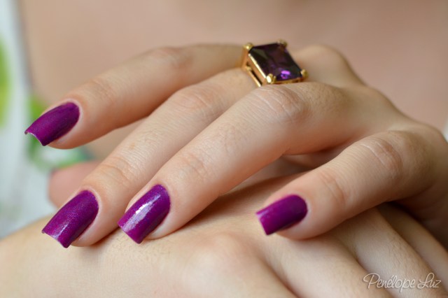 E que roxo lindo!! A cor das fotos está bem fiel, fica esse roxo neon lindo de viver e bem parecido com o vidrinho, diferente de alguns outros esmaltes nesse tom, que escurecem muito depois da aplicação. Esse fica igual o vidrinho, amei!