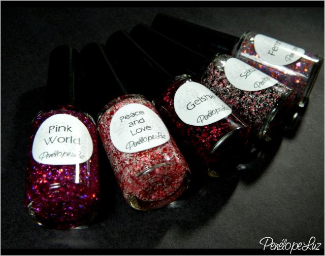Ao todo são 20 esmaltes, e 2 sorteadas, cada uma levando 10 vidrinhos. Serão 10 esmaltes importados (todos novos, é claro) e os 10 últimos esmaltes Penélope Luz que foram lançados. Cada uma vai levar 5 de cada.