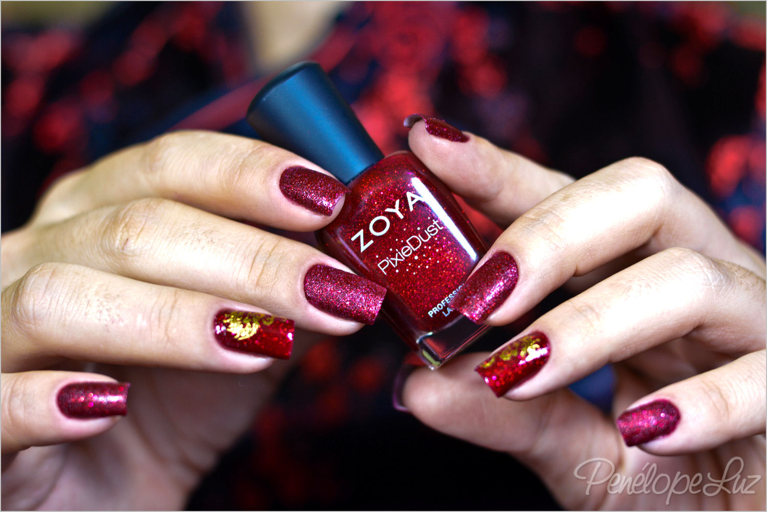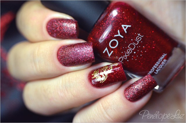 É uma pena que nas fotos não mostre o tanto que ele brilha sem top coat mesmo! Aí nessa foto de cima, como o mindinho e o indicador estão desfocados, dá para ter uma idéia dos brilhinhos. Me lembrou demais o Ruby Pumps da China Glaze, mas na versão liquid sand e sem perder aquela dança de brilhos vermelhinhos! Um espetáculo!