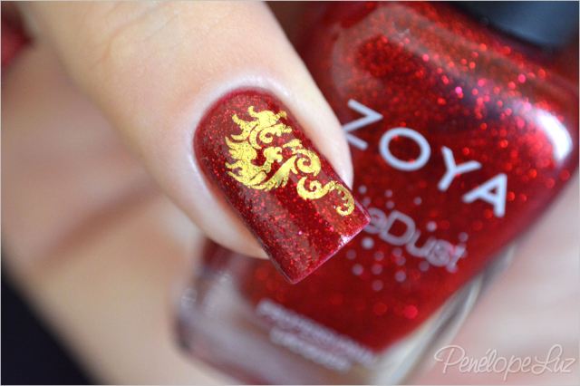 Também usei um adesivinho com tema chinês (um dragão chinês) muito fofo que comprei no ebay, nesse vendedor aqui. Ele é bem dourado, parece uma jóia na unha! Chegou em 6 dias corridos, foi a minha encomenda gringa mais rápida! A moça manda por carta comum, dentro de um envelope, e chega à jato! Tem uma mais linda que a outra, comprei várias, especialmente as douradas que ainda não vi para vender aqui no Brasil e são lindíssimas! A aplicação é com água, igual aquelas tatuagens de quando éramos crianças, sabem? Fácil de aplicar e pode passar top coat depois que não estraga, pelo contrário, adere totalmente ao esmalte! Adorei!