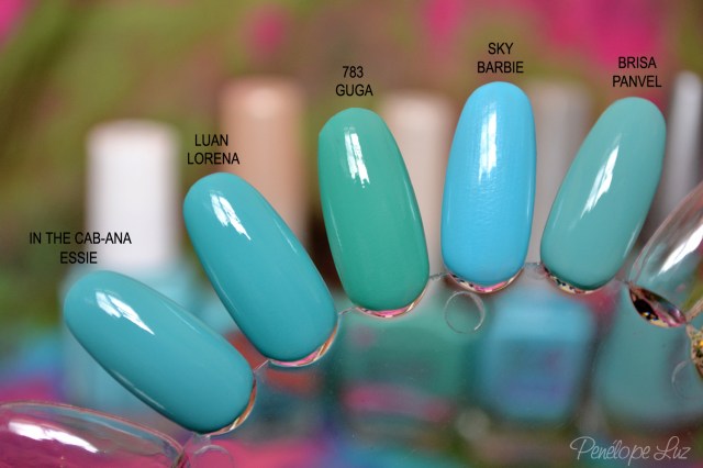 Que não conseguir comprar o Essie, pode tentar substituí-lo pelo Luan na Lorena, que é um dupe perfeito, inclusive o Luan também é bem pigmentado. Outros esmaltes nacionais tem uma cor quase igual, como o Sky da Barbie (levemente mais azulado e com um shimmer discreto), o 783 da Guga (levemente mais esverdeado), Brisa da Panvel (um pouco mais claro). Todos ficam lindos e com efeito bem próximo!
