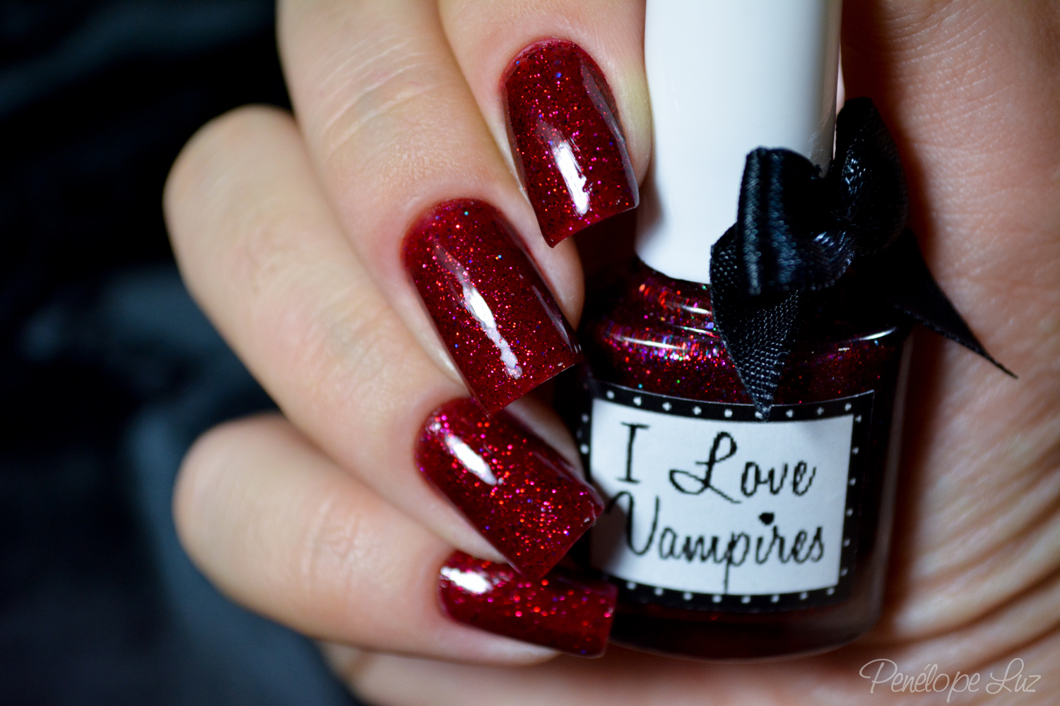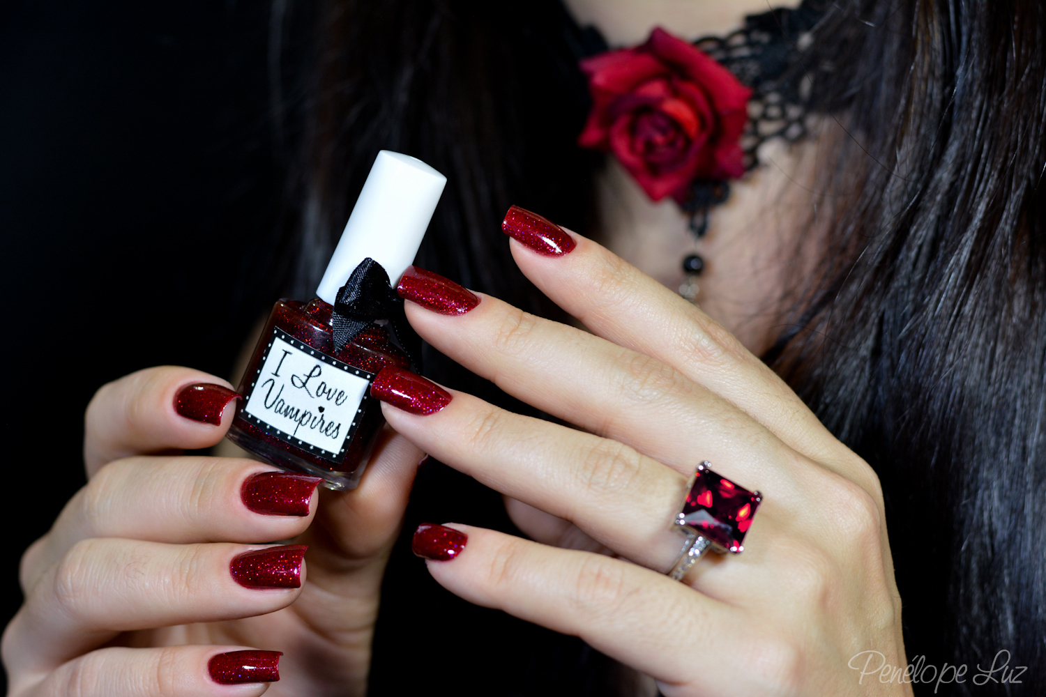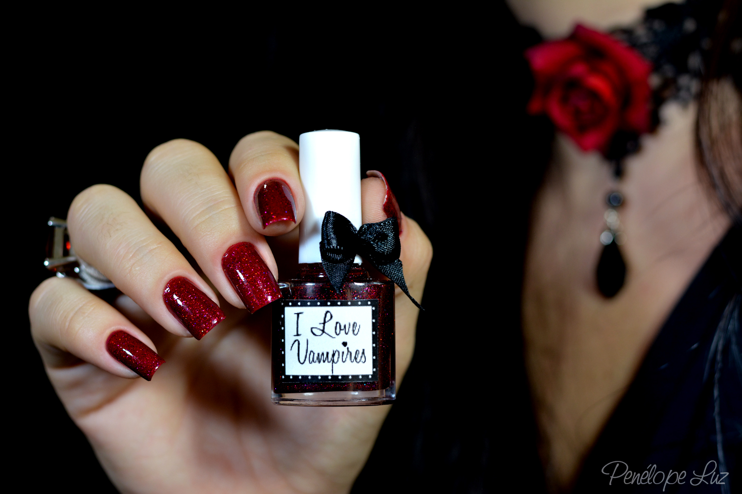 O esmalte de hoje é mais um lindo da Kelly, um que fiquei de olho desde o dia que ela mostrou pela primeira vez, porque igual a Kelly, adoro uma história de vampiros! E ele tem tudo a ver, é vermelho, glamouroso, feminino (as vampiras que, não importa o estilo, são sempre muito femininas, até Bella Swan ficou mulherão quando virou vampira, e quem diria que ela conseguiria? :P), é lindooo!!