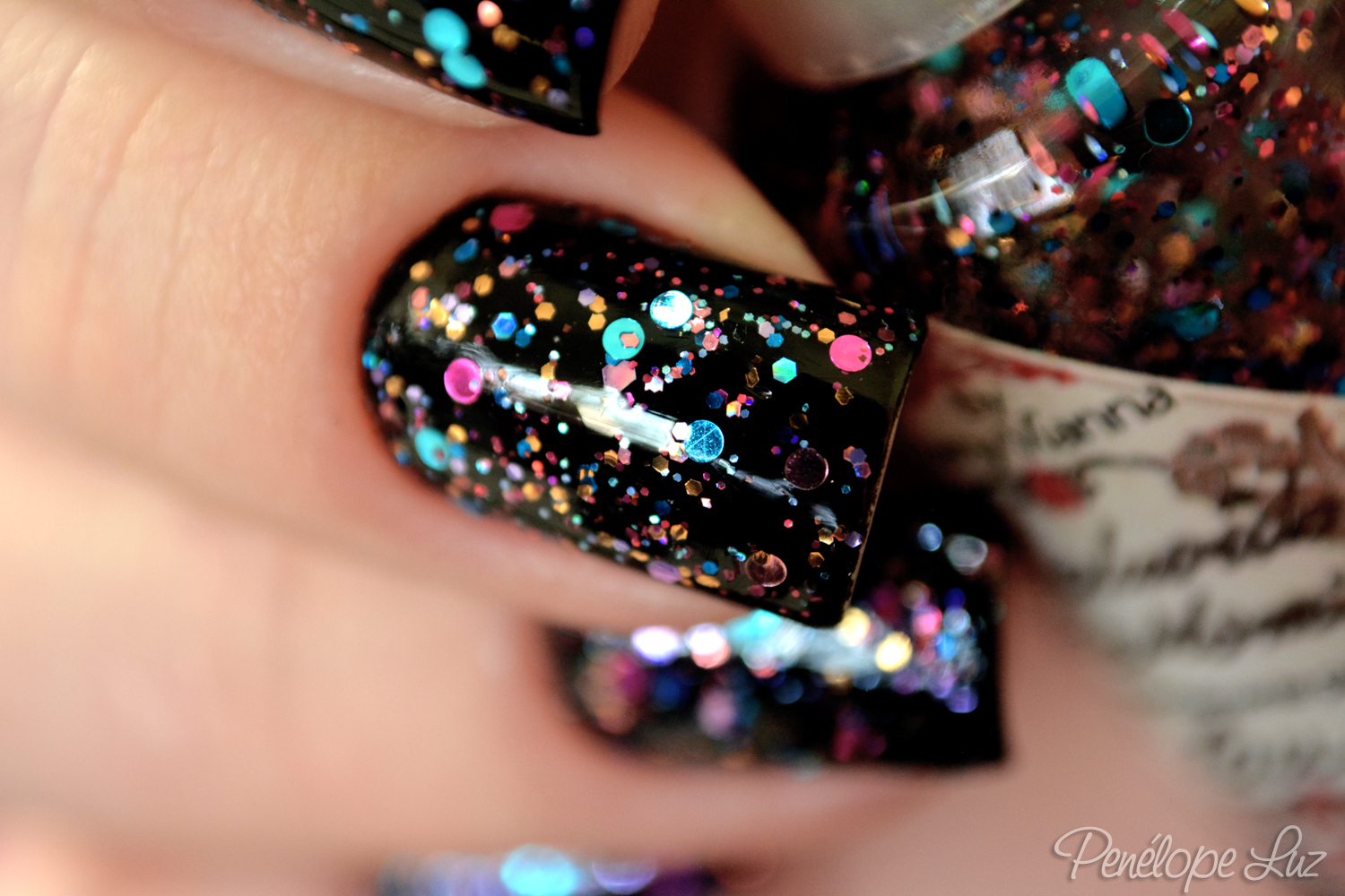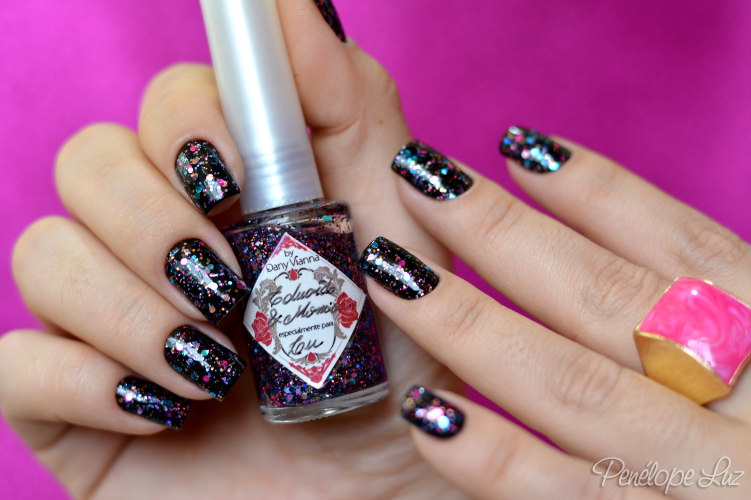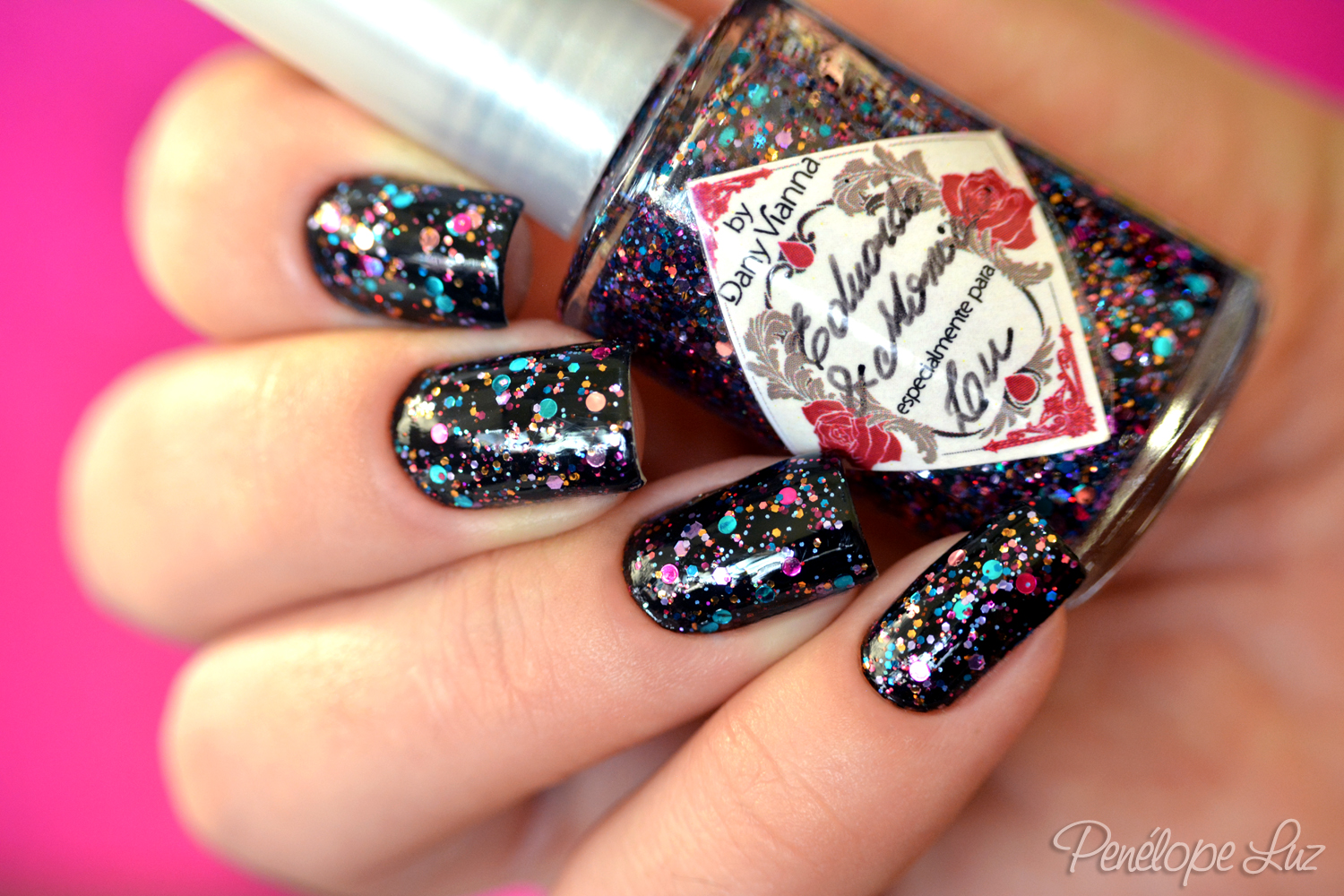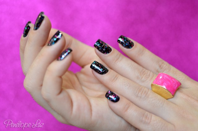 Mais perfeito do que esse duo da Dany (que eu não consegui comprar, abafa) é os esmaltes misturados. Está aí uma boa oportunidade pra quem não conseguiu o duo se jogar neste! Combinação perfeita amiga, amo esses glitters coloridos com esmalte preto de base.