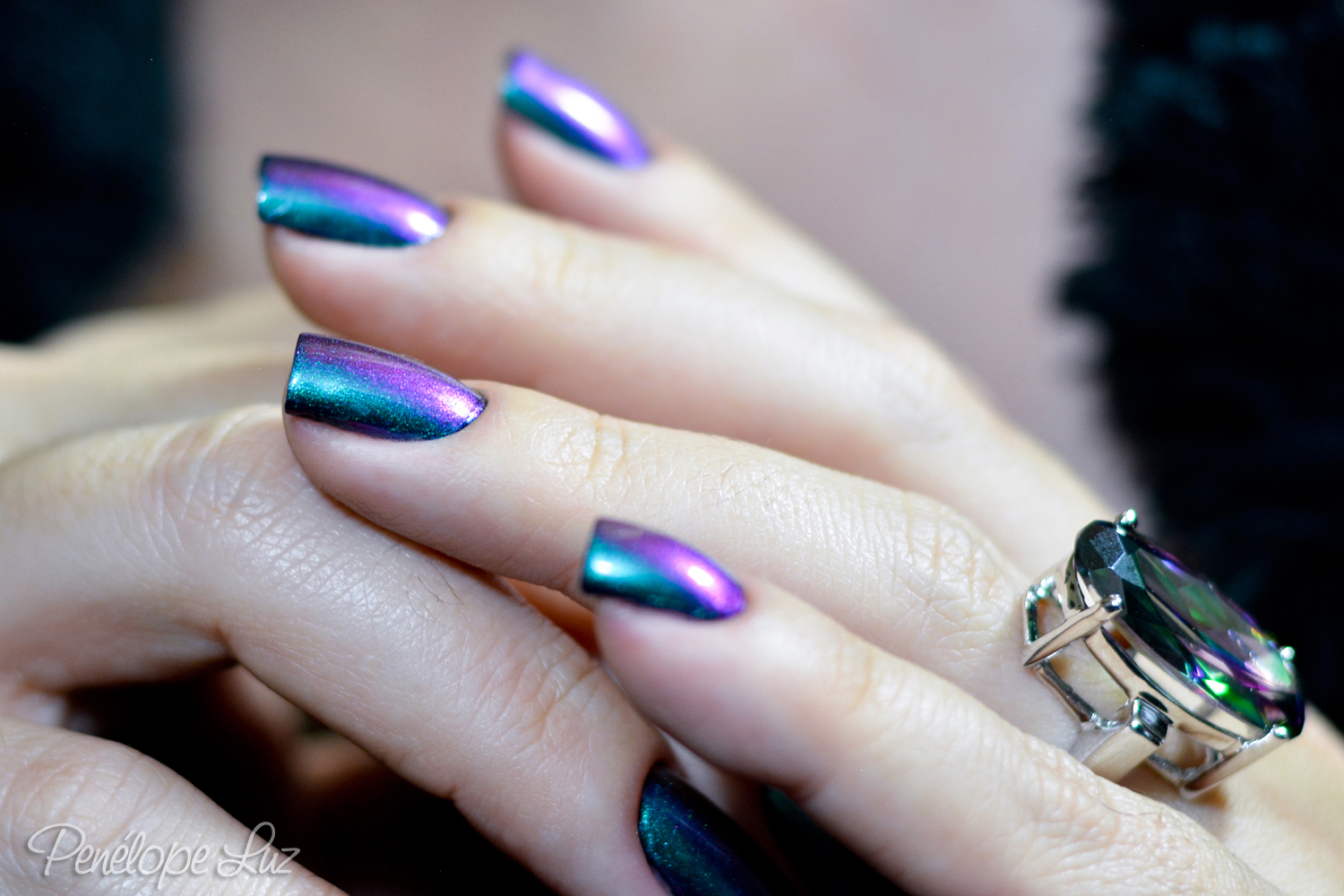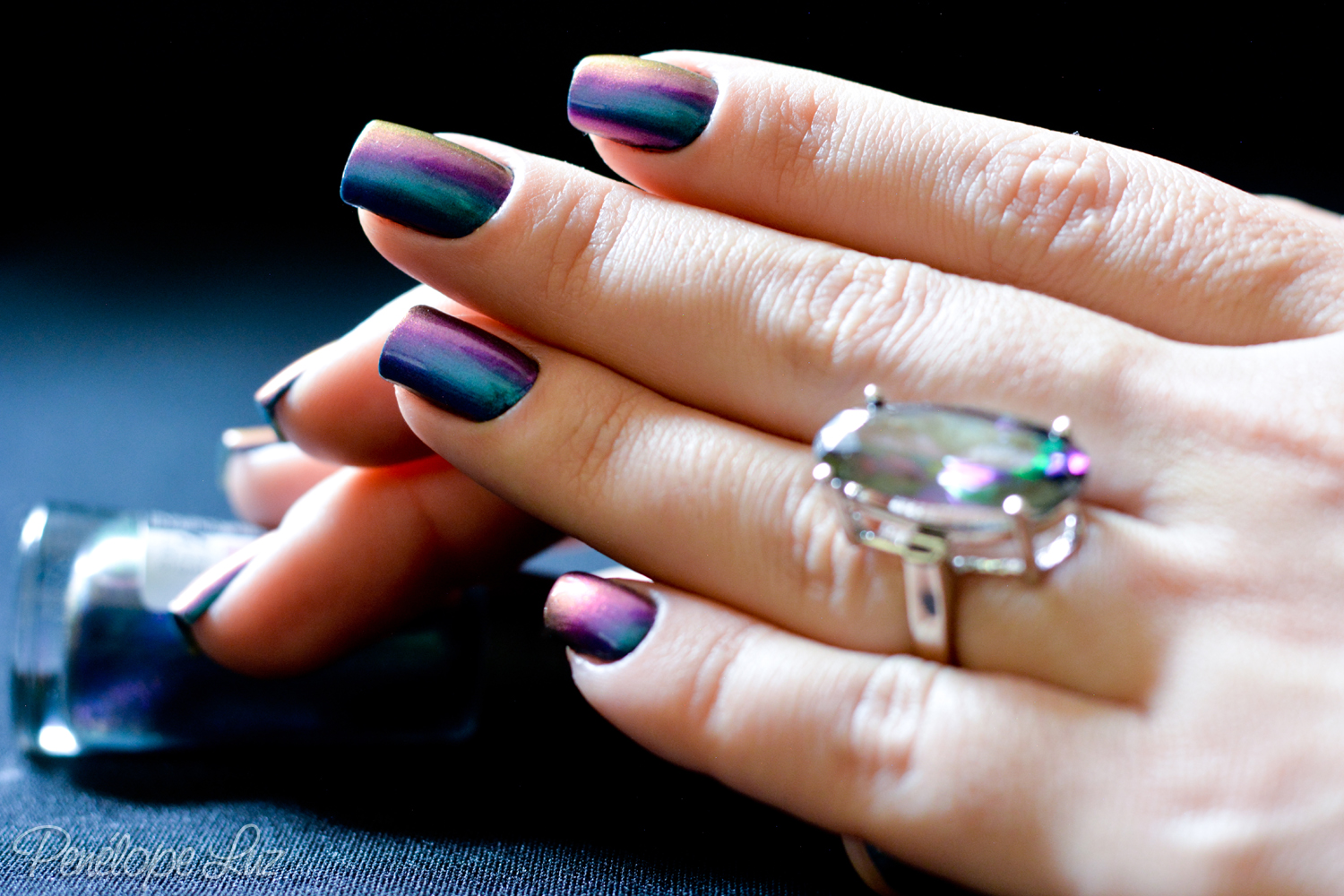 Há dias que eu ando naquela vontade louca de usar um multichrome por causa dos posts lindos que estão surgindo da nova coleção da Dance Legend, a Chameleon. Entro nos blogs das russas e morro de vontade, mas ainda nem está vendendo na loja da marca, então pelos vistos até que consigamos comprar aqui no Brasil, vai um chão… Mas como aqui no Brasil a Ludurana já fez lindos iguais há dois anos atrás, não fiquei muito na vontade! 😀