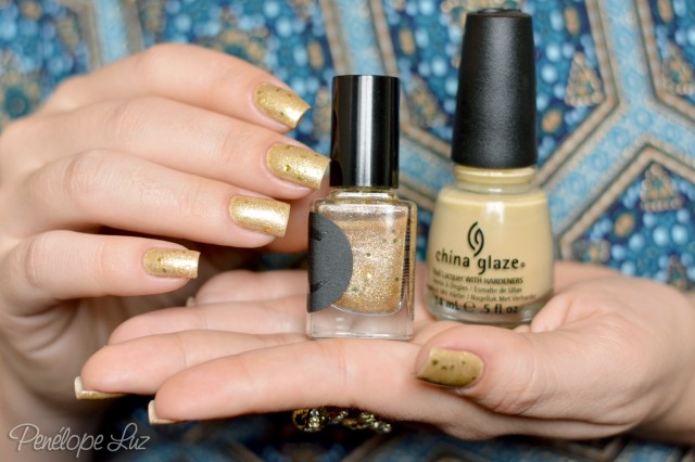 O esmalte de hoje é uma combinação que usei há um tempo atrás entre o Kalahari Kiss da China Glaze e o Trousseau da marca indie americana Cirque. 🙂