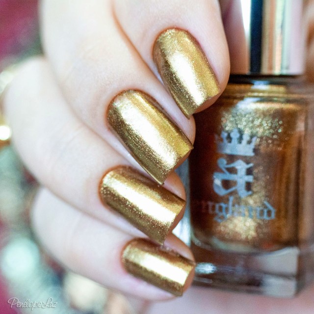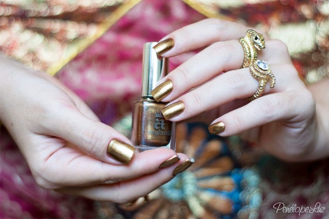 O esmalte desse post eu já usei há algumas semanas, coloquei ele para fazer uma tape mani, mas antes eu fotografei ele sozinho porque ficou lindo! Depois a tape nem deu certo no fim das contas! O Holy Grail tem um tom lindíssimo de dourado escuro, que puxa para o cobre. Fiquei apaixonada pela cor dele!