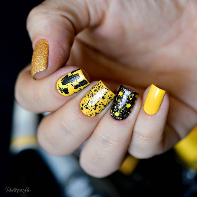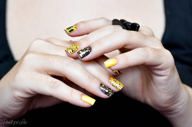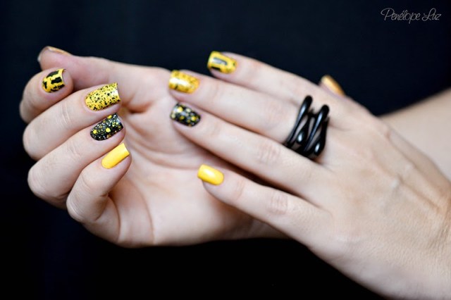 Hoje quero mostrar uma mani que fiz porque fui “castigada” em uma TAG do flickr! A TAG dizia que precisávamos postar um esmalte (ou combo) sem dizer qual era, para que pudessem adivinhar, e quem acertasse, poderia escolher um “castigo” pra quem postasse o esmalte. Eu postei uma combo de 3 esmaltes, e a Isis esperta acertou os 3! Como “castigo” ela disse que eu deveria fazer uma mix’n match que tivesse amarelo e craquelado! Então aí está o meu “castigo”, Isis! 😛