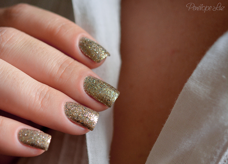 O Halo tem glitters dourados e prateados, por isso fica essa cor de osso, um nude clarinho, tão fofo! Depois da uma cada do OPI e das duas do Orly, finalizei com uma de top coat Super Extra Brilho da Jade.