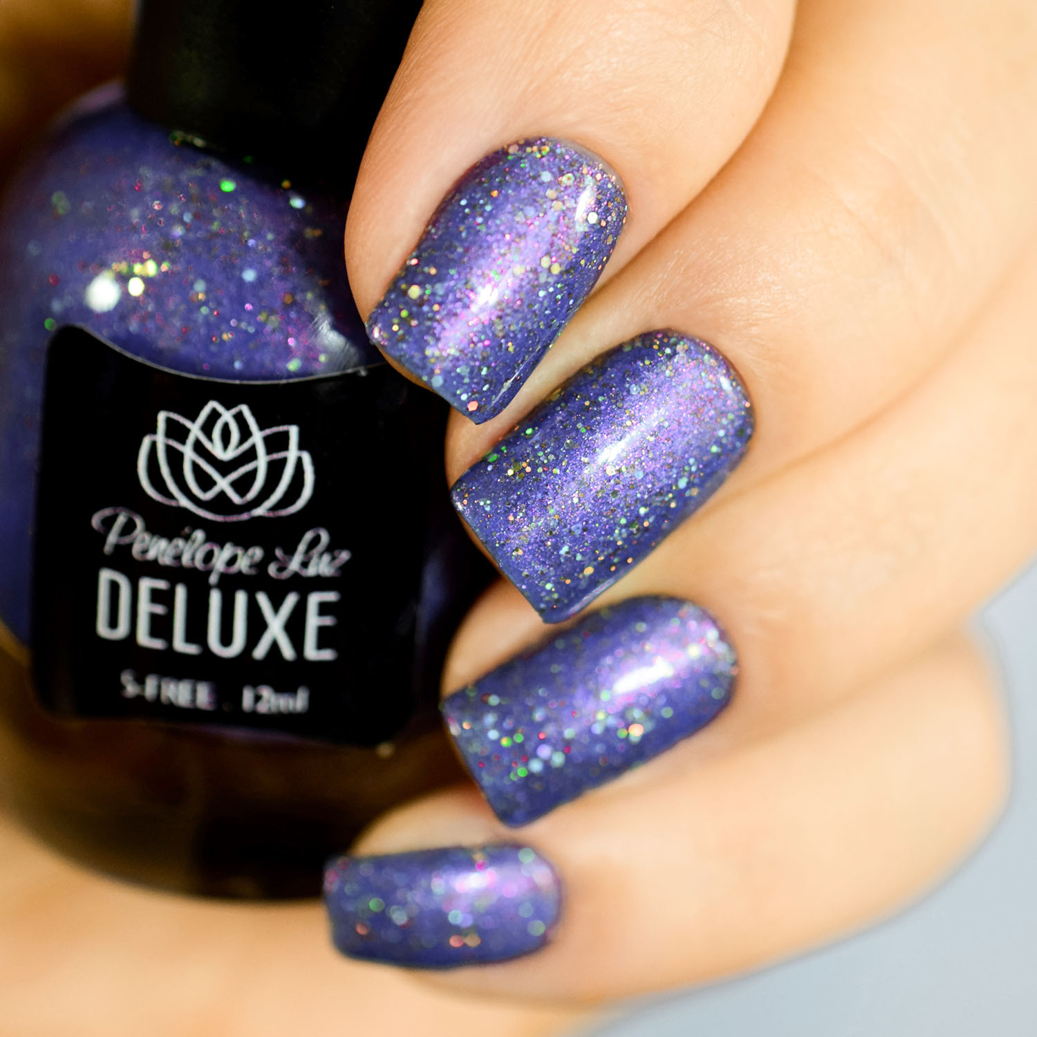 Agora vamos conhecer o Firework, que é um azulzinho com fundo violeta e glitters galaxy dourado. Eu amei esse esmalte, é tão fofo! Para quem quer um 2017 cheio de cor e vida!