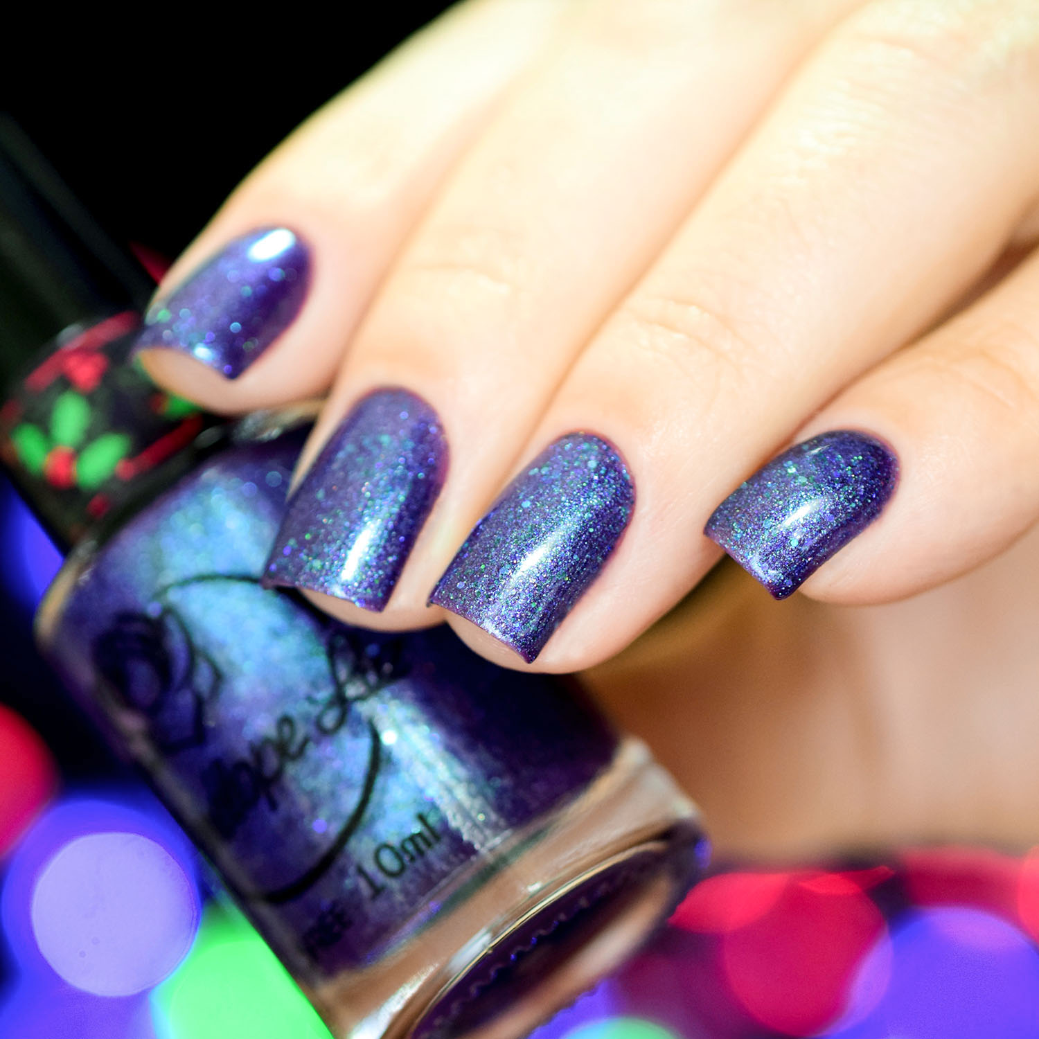 Agora vamos conhecer o Pray for Mercy, que é o diferente da coleção. Ele é roxo com pigmentos e glitters da cor teal. Eu sou apaixonada por essa combinação de cores, sempre quis um esmalte assim! Botei duas camadas. ❤