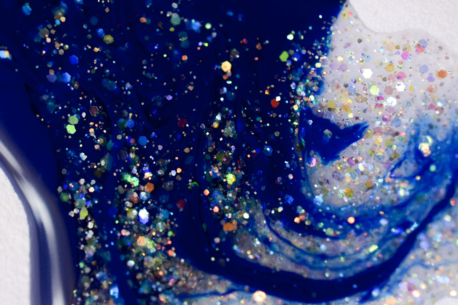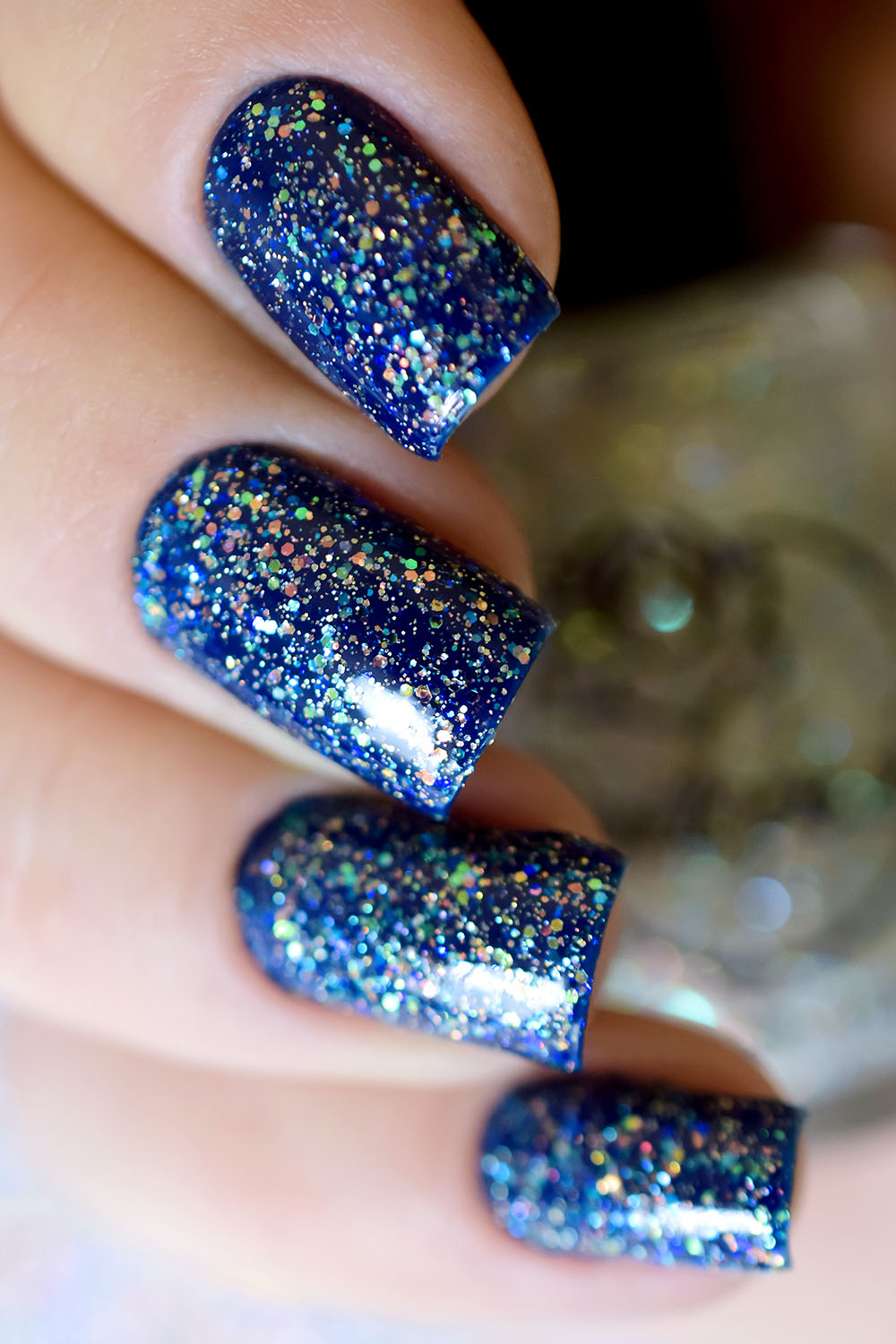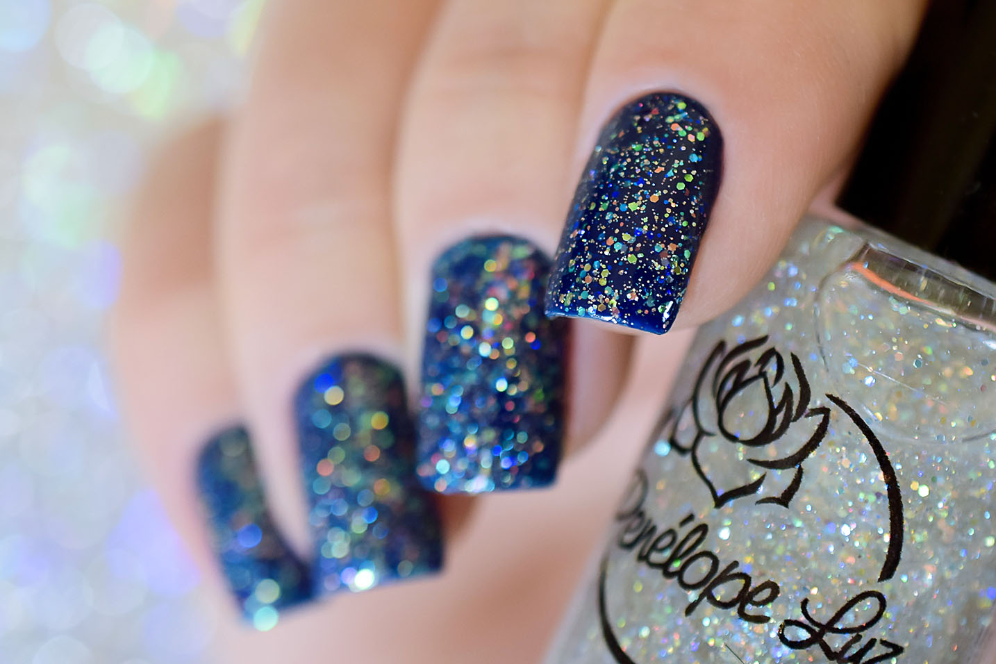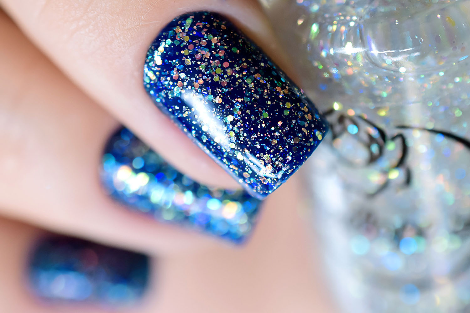 Por cima do Ondina, coloquei uma camada do Peaceful e finalizei com uma do extra-brilho da Big Universo. O Peaceful tem glitters furta-cor de vários tamanhos, e também glitter holográficos prata bem fininhos, como já disse aqui no post de lançamento. Dá um efeito lindo! Delicado e feminino, à mim transmite muita paz mesmo. Fica lindo também sobre esmaltes clarinhos. ❤