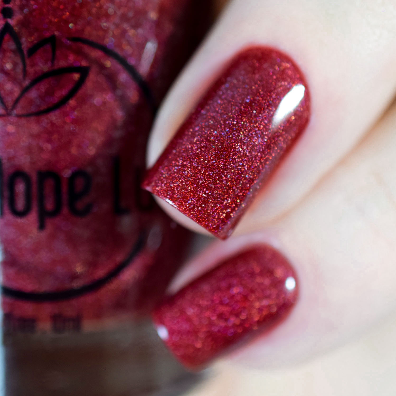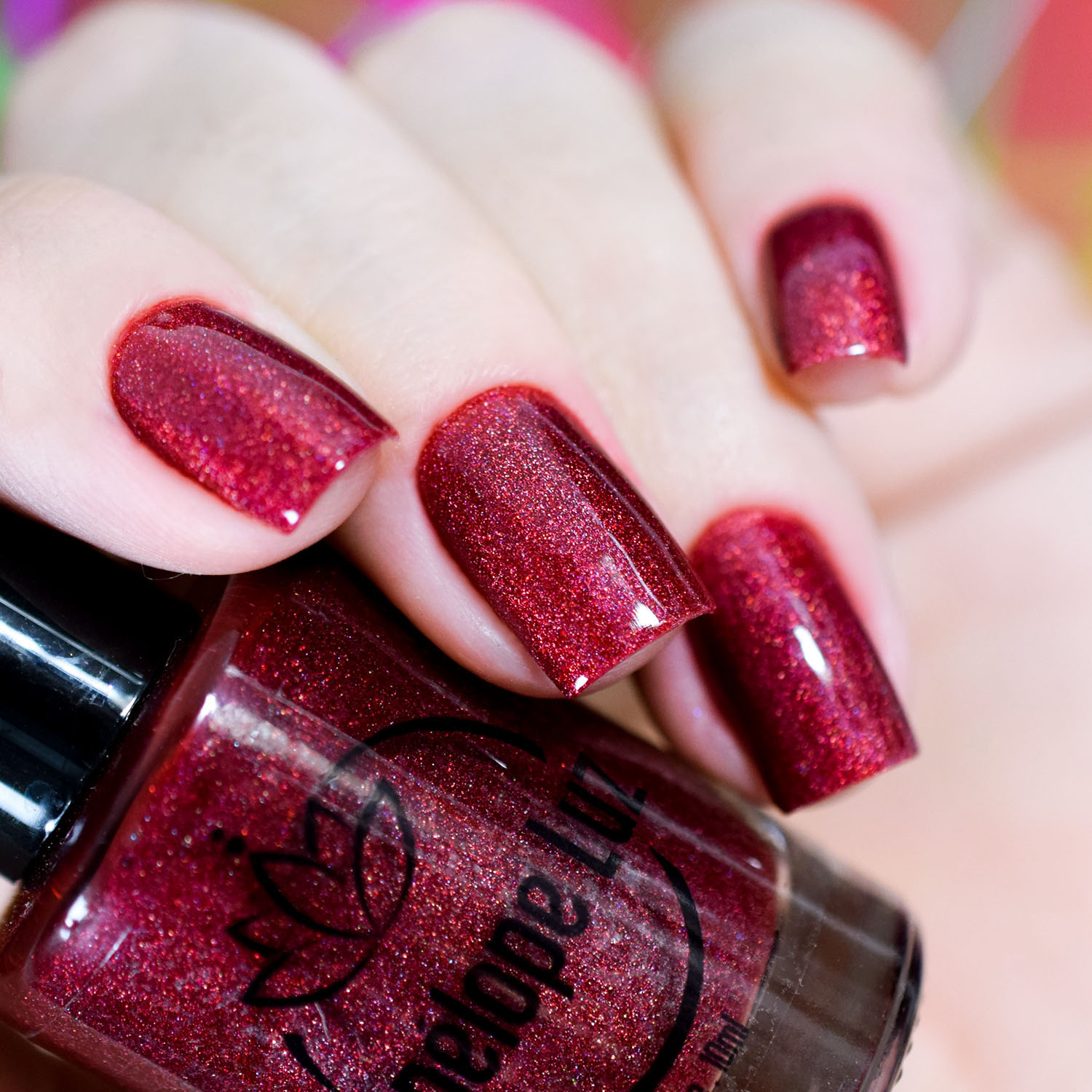Agora vamos ao Almandine, que é um vermelho fechado, mais escuro, super elegante! Amo demais ele! Nele só coloquei a cor mesmo junto com o pigmento holo, igual os da coleção Poison. Tem duas camadas!