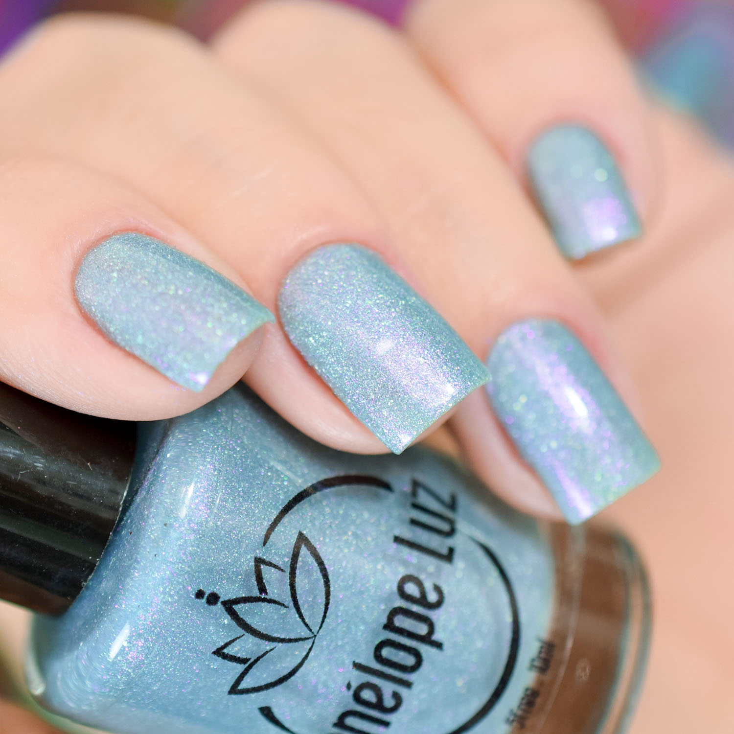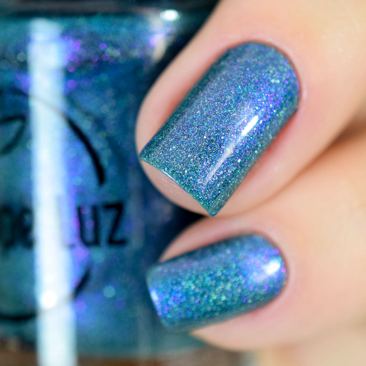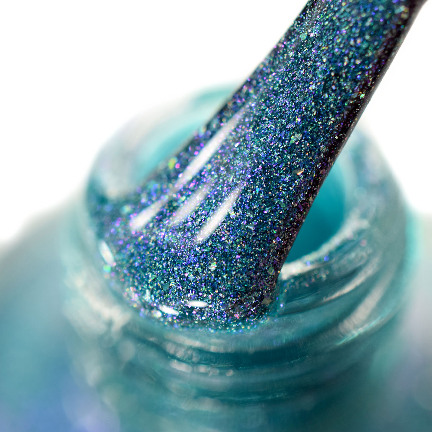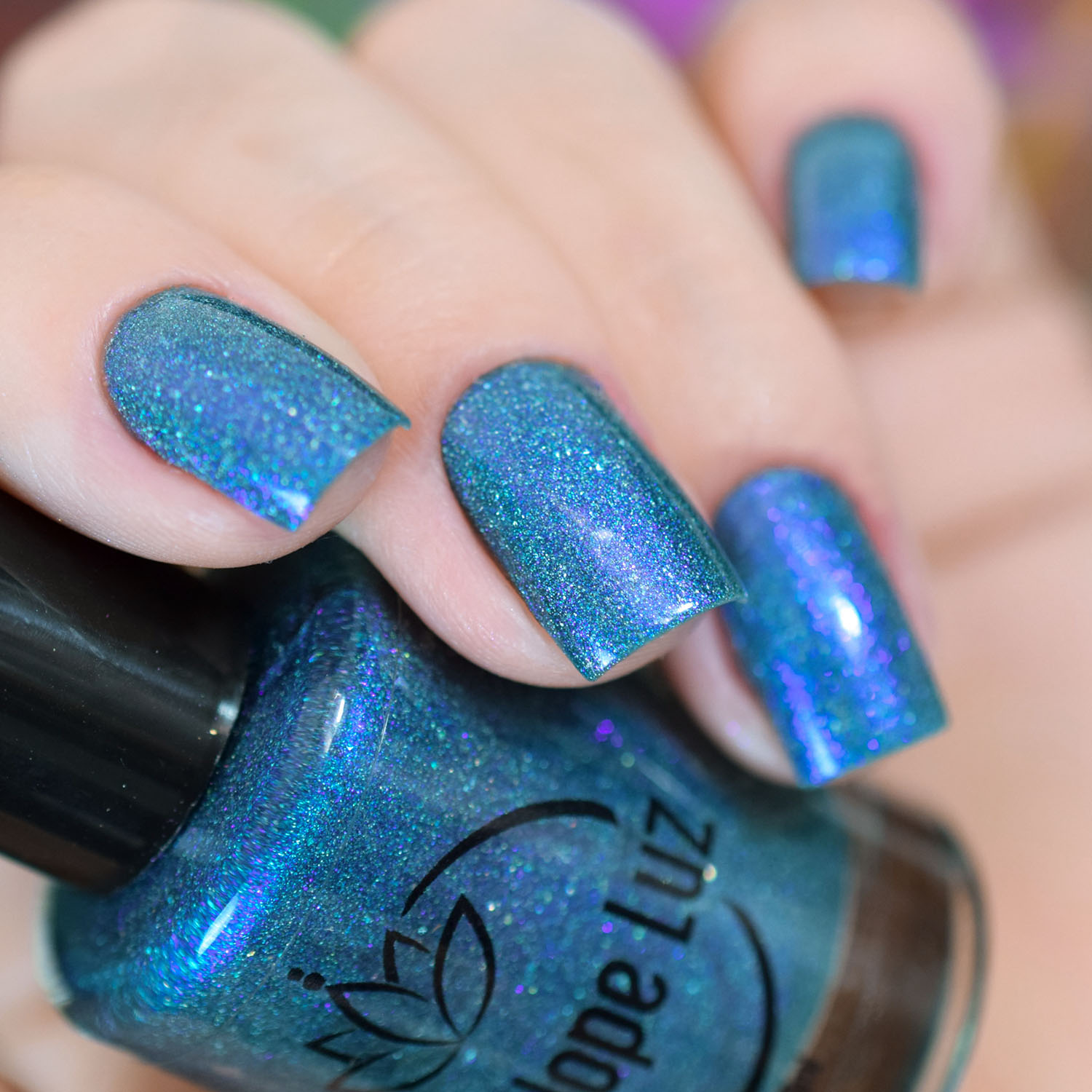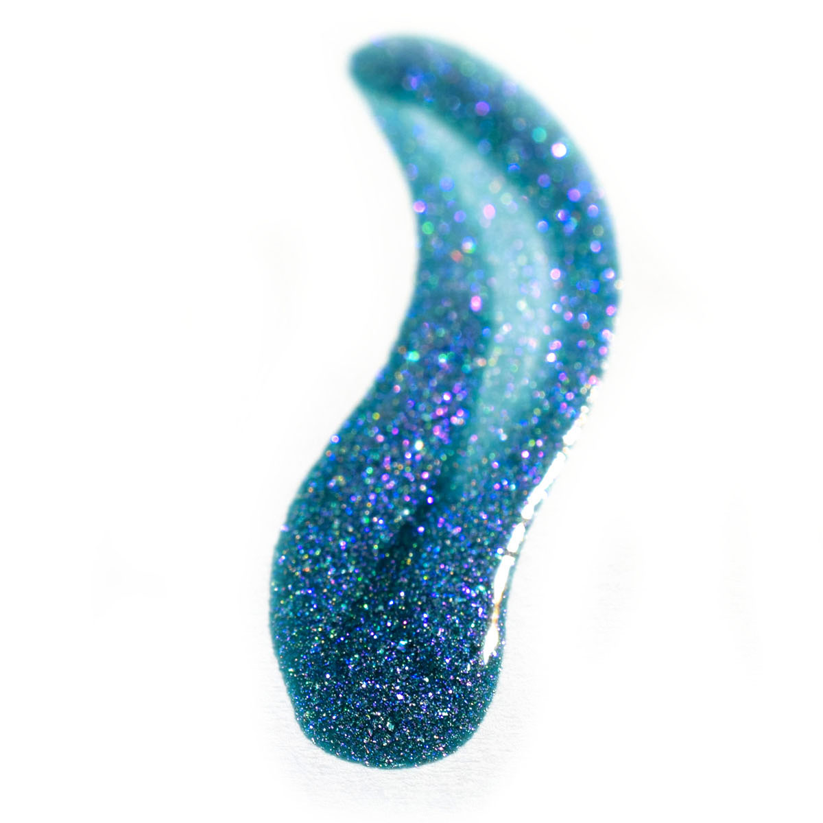 Agora vamos ao Turquoise, que é um teal com floquinho holo e shimmer azul/violeta. Em algumas iluminações ele fica um teal mais azulado e em outras um teal com violeta. Muito lindo! Duas camadas também.