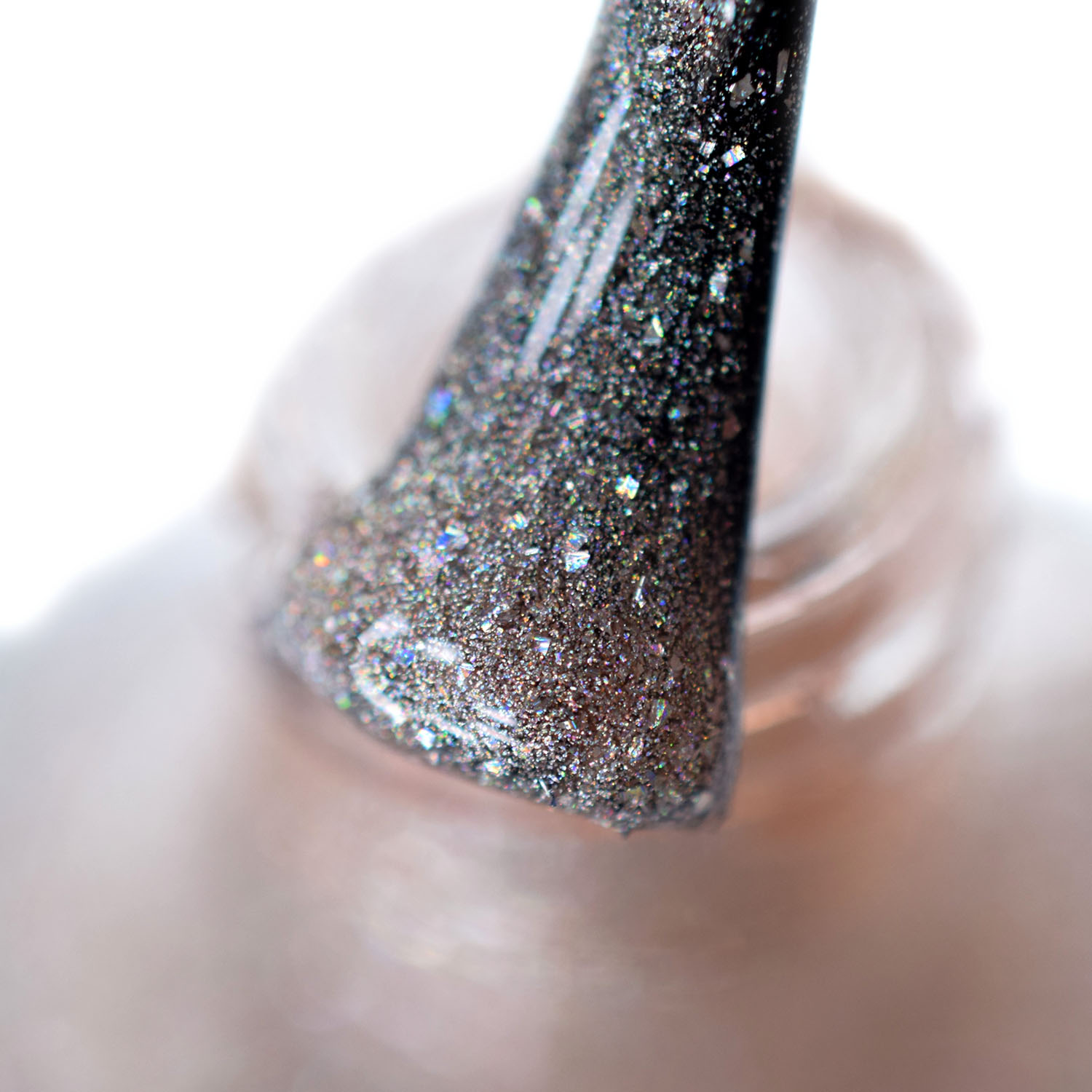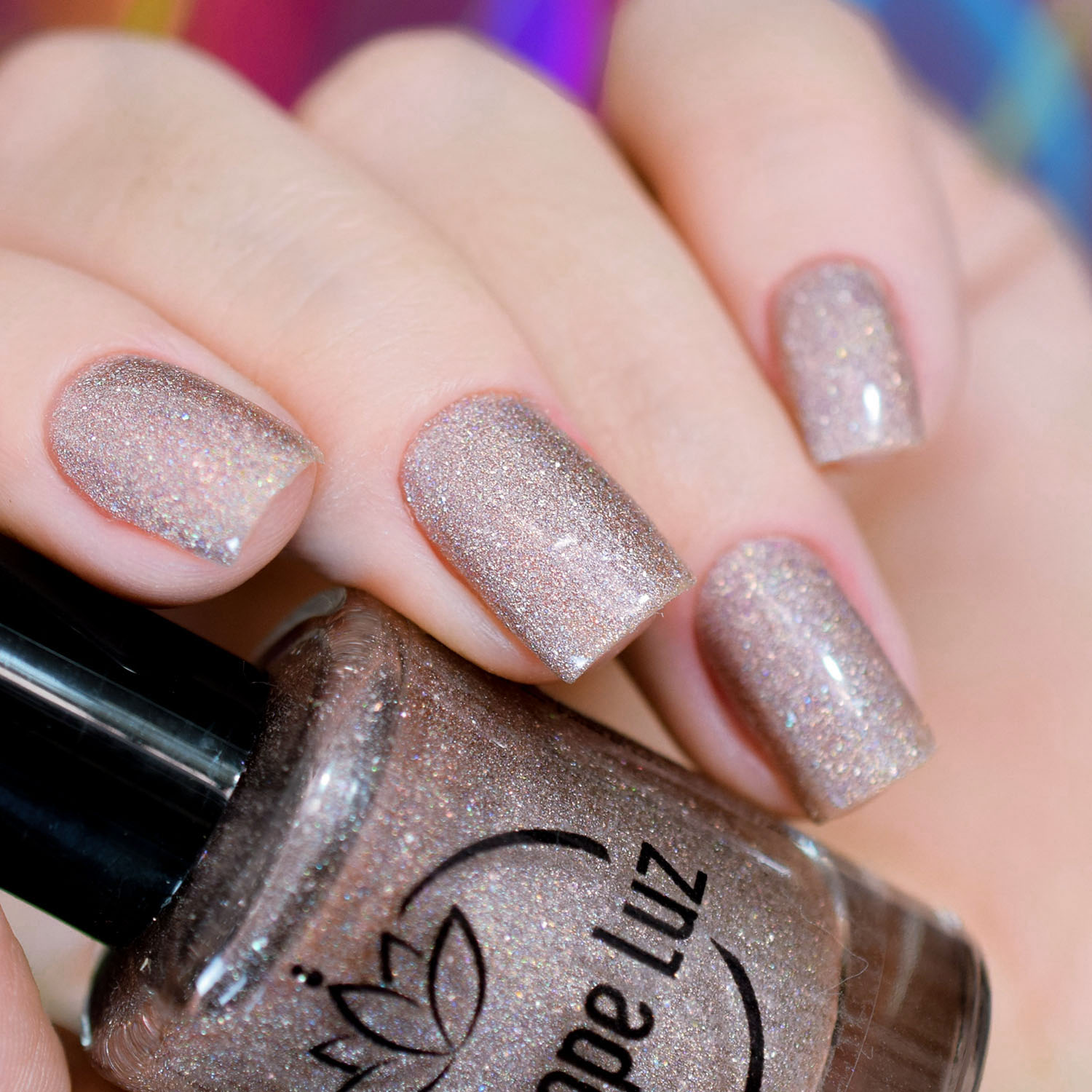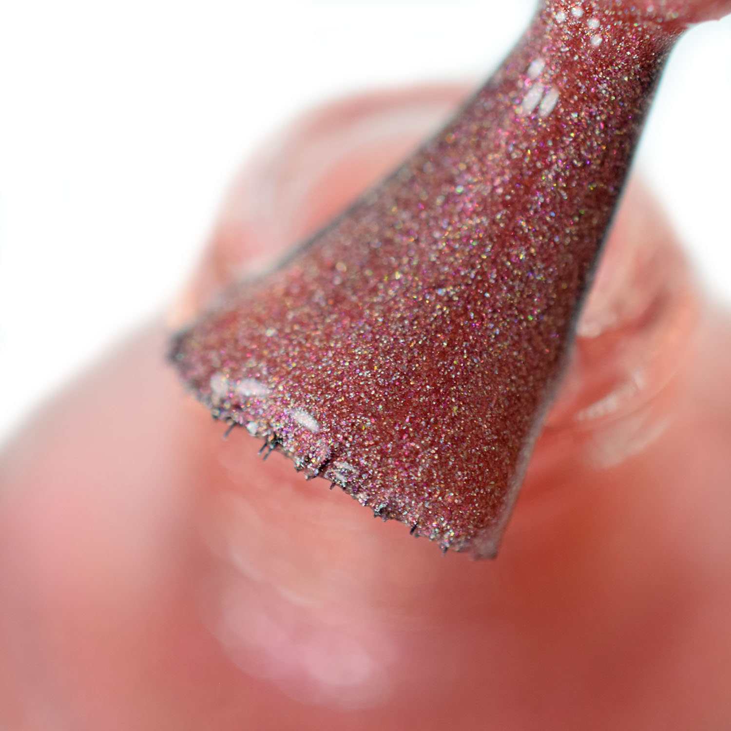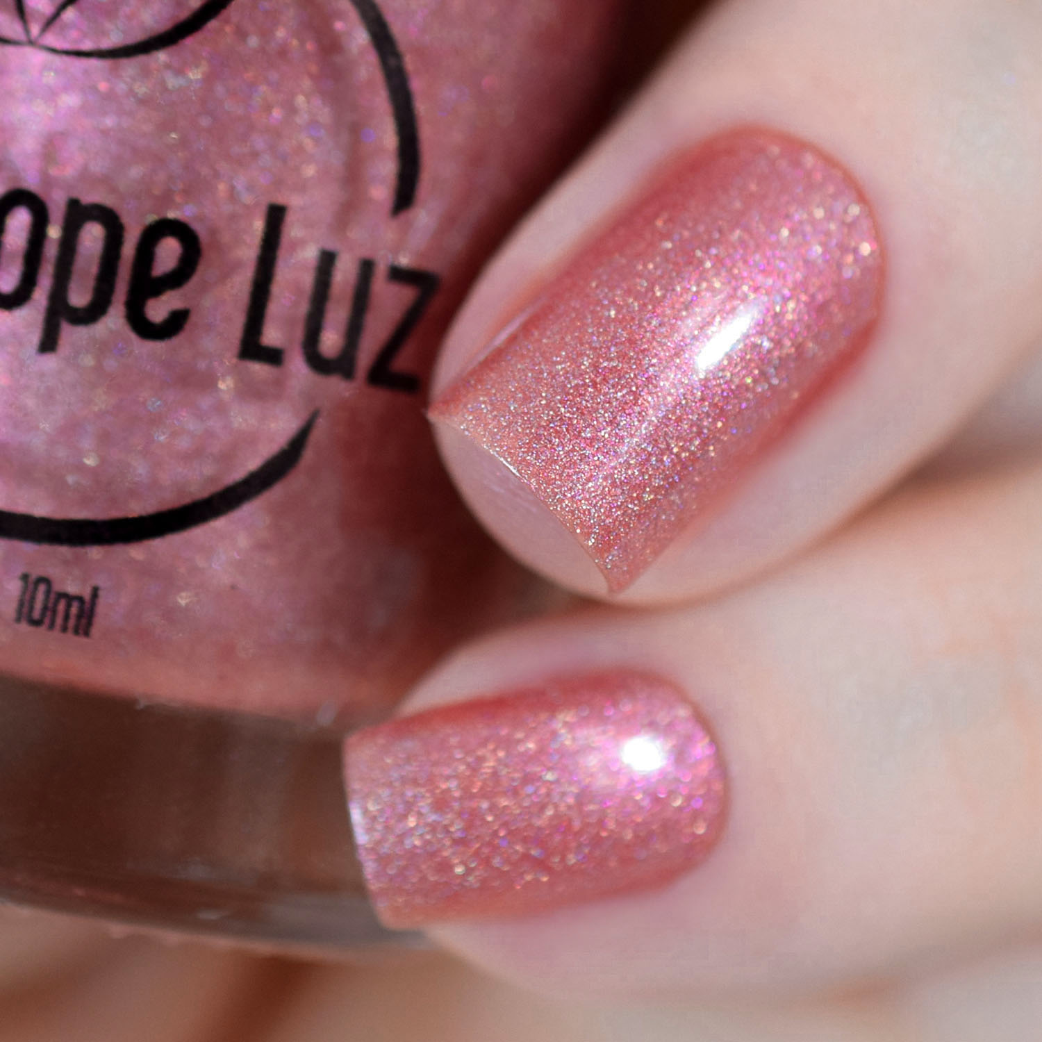 Agora vamos conhecer o Morganite, que também é um bege, mas puxando pro rosadinho. Nele eu incrementei só com o floquinho holo. Como ele é clarinho e sem branco (como no pearl), pigmenta menos que os outros, então para ficar bom nas fotos de macro, coloquei 3 camadas.