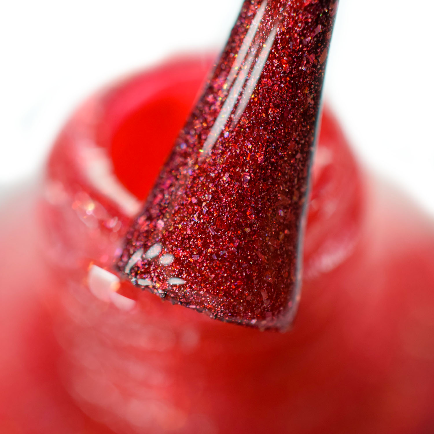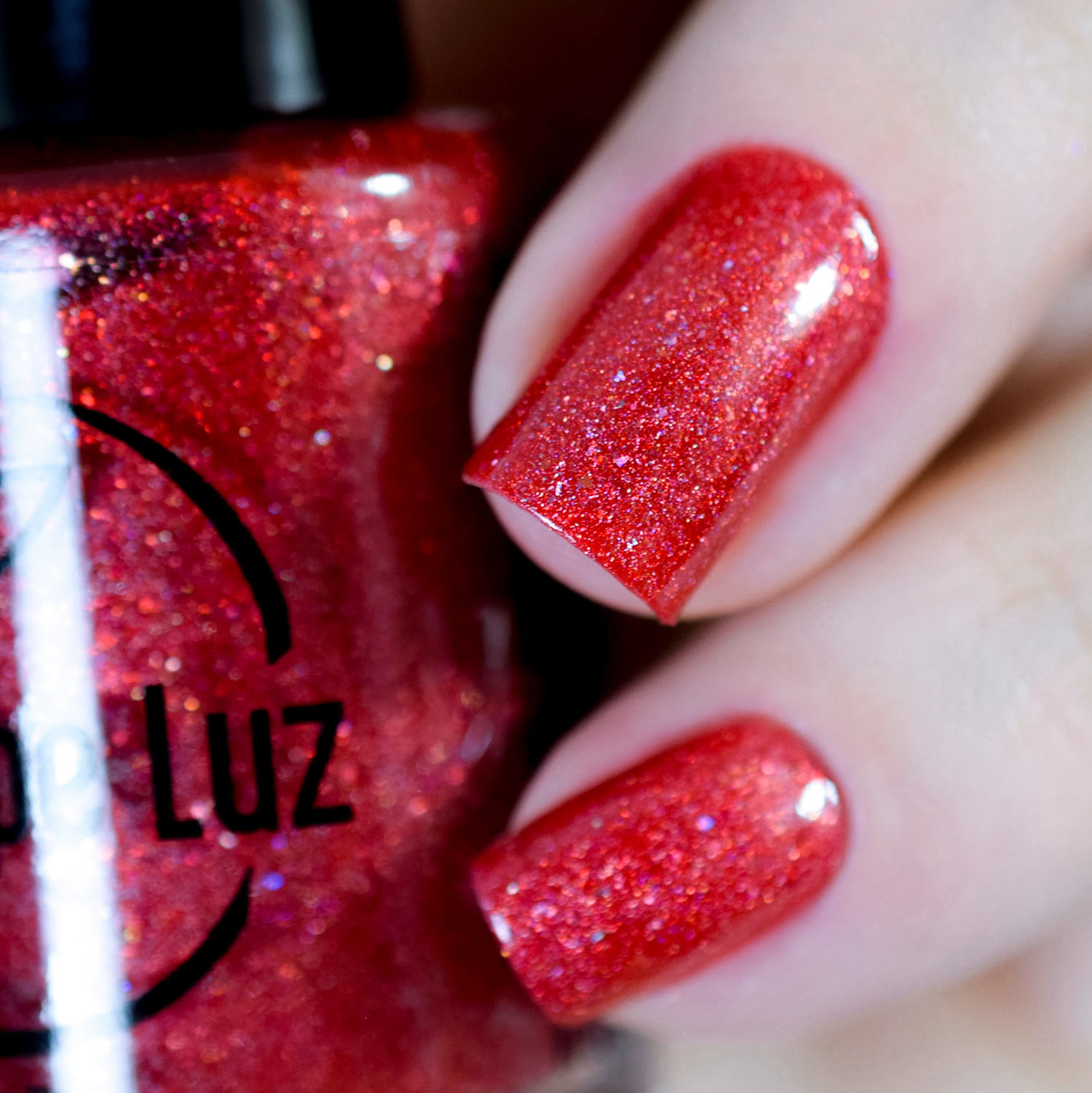 Vamos conhecer agora o Red Diamond, um vermelho aberto e bem vibrante! Nele coloquei caquinhos holo e glass flecked dourado. Tá lindo demais! Duas camadas também!