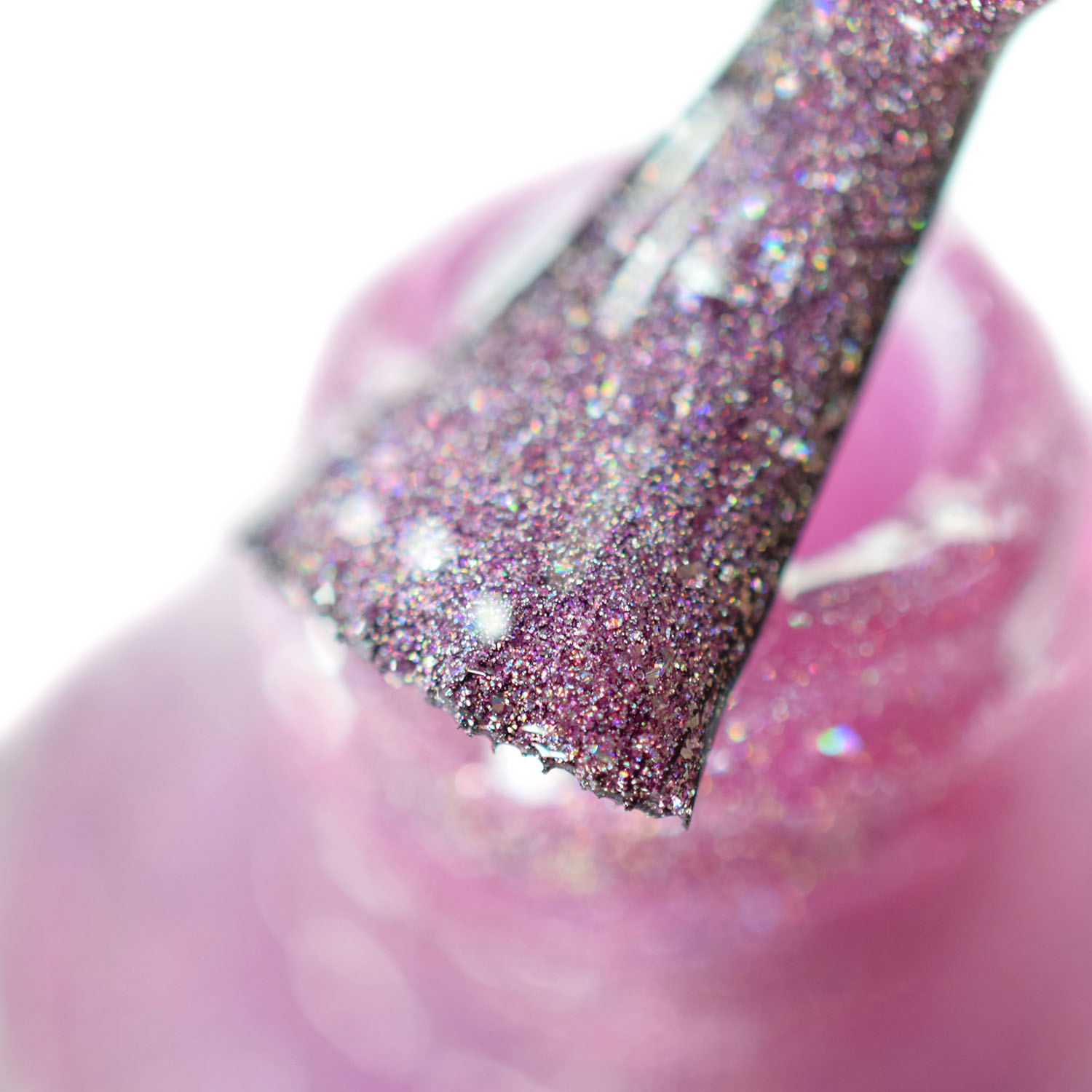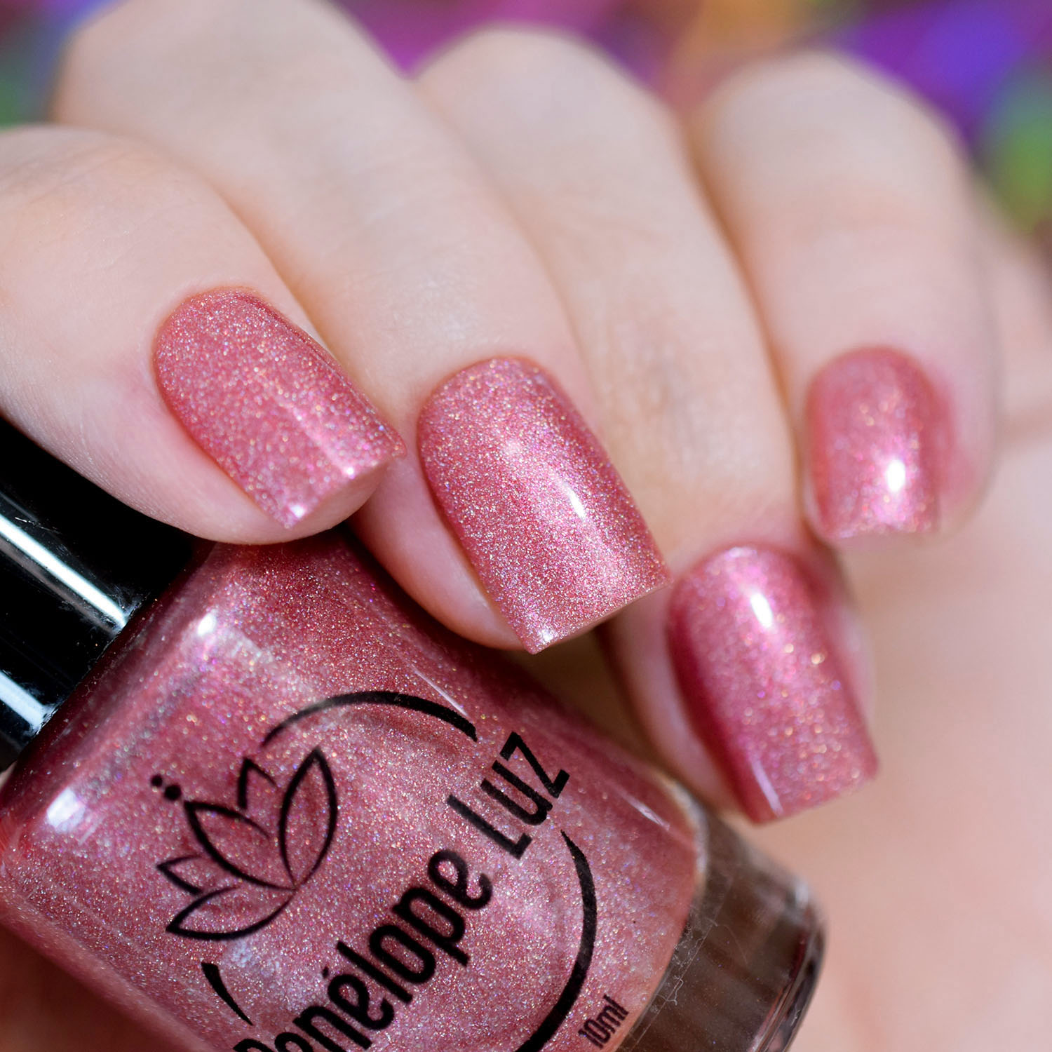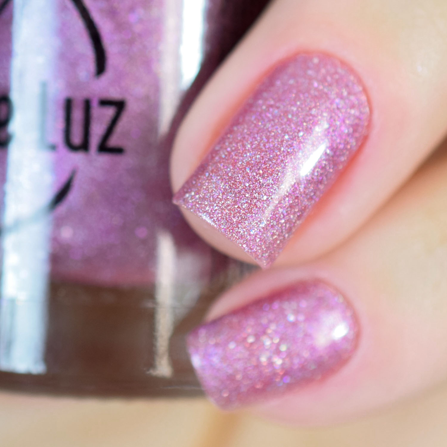 Agora vamos ao rosinha delicado, o Rose Quartz. Nele eu coloquei só o caquinho holo, junto com o pigmento holo. Apesar dele ser clarinho também, duas camadas foi suficiente. Tão delicado esse! ❤