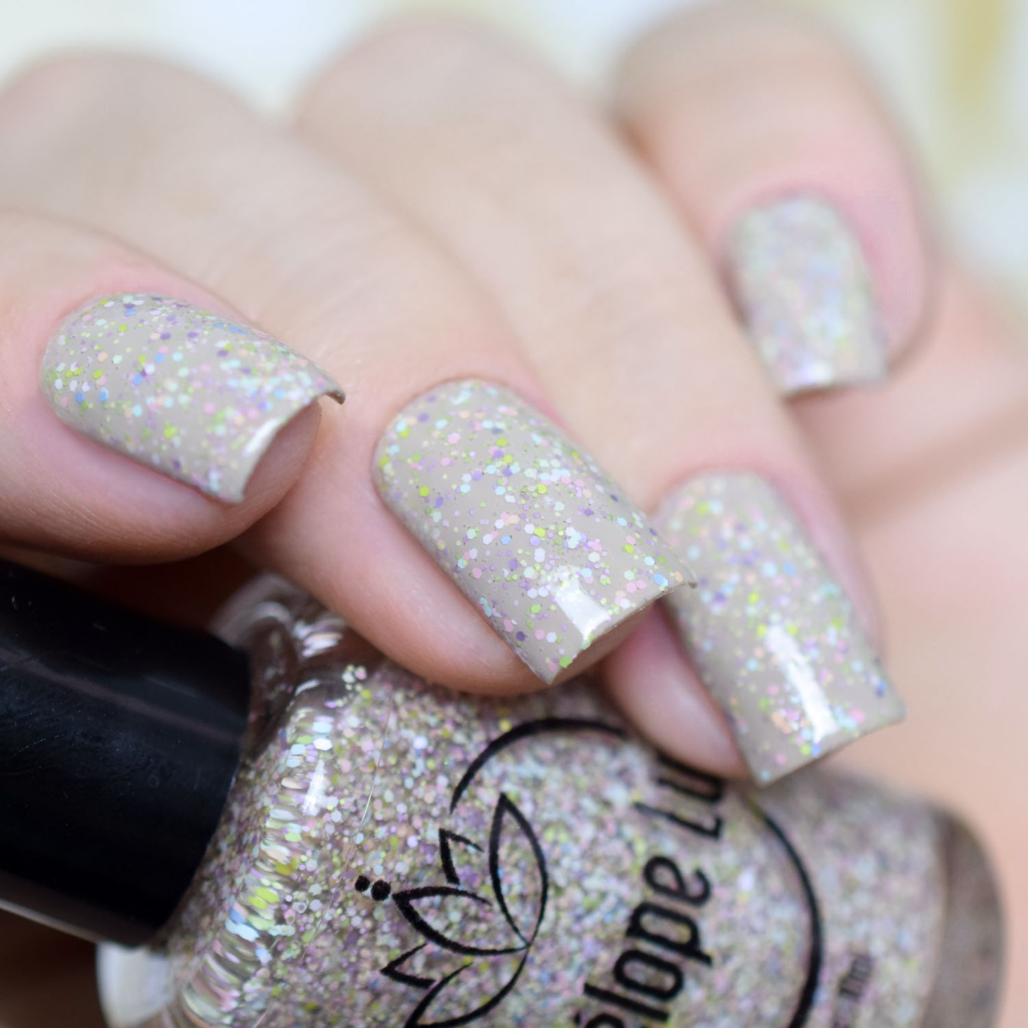 Agora vamos ver o mais delicadinho da coleção, o Lullaby. Ele é todo de glitter matte pastel. Fica tão fofo!