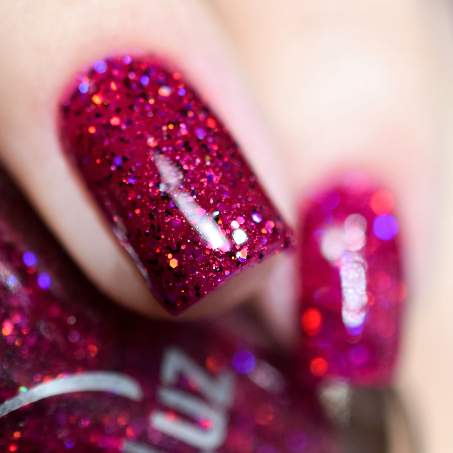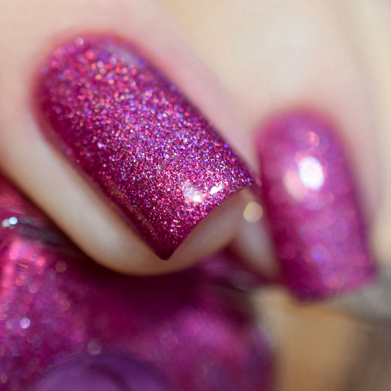 Agora vamos ao Ambiciosa, que é um rosa pink com glitters holográficos nos tons rosa, roxo, vermelho e preto ❤