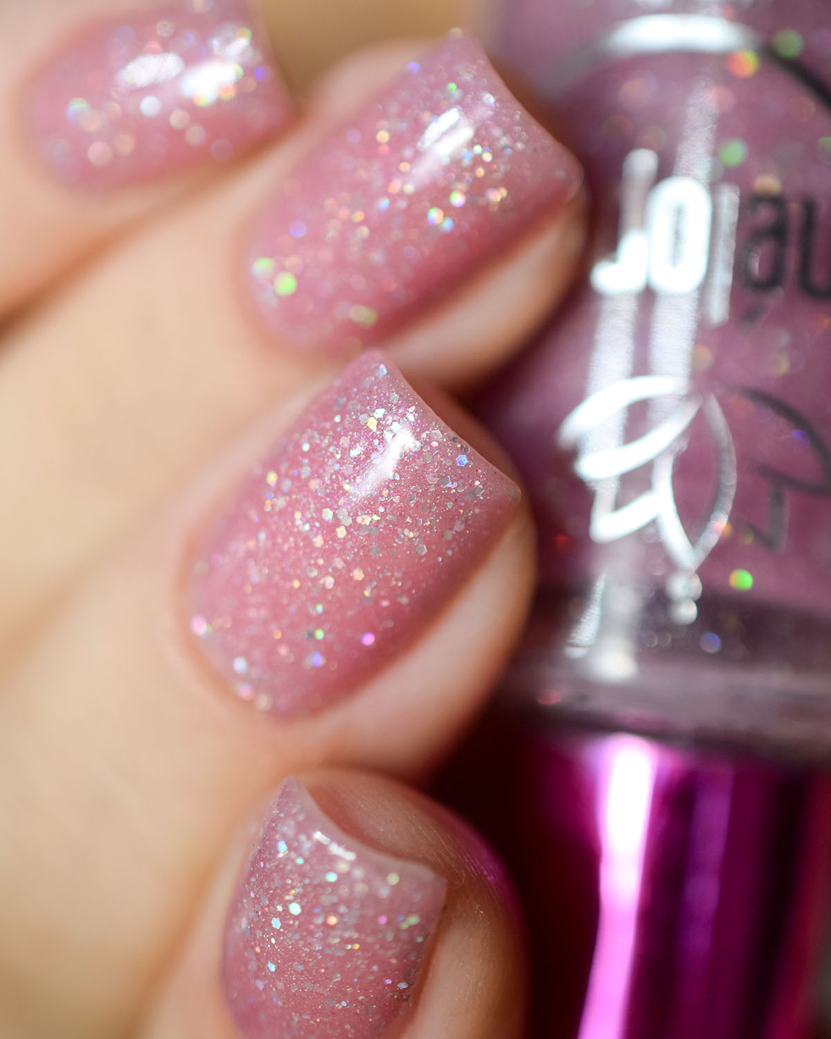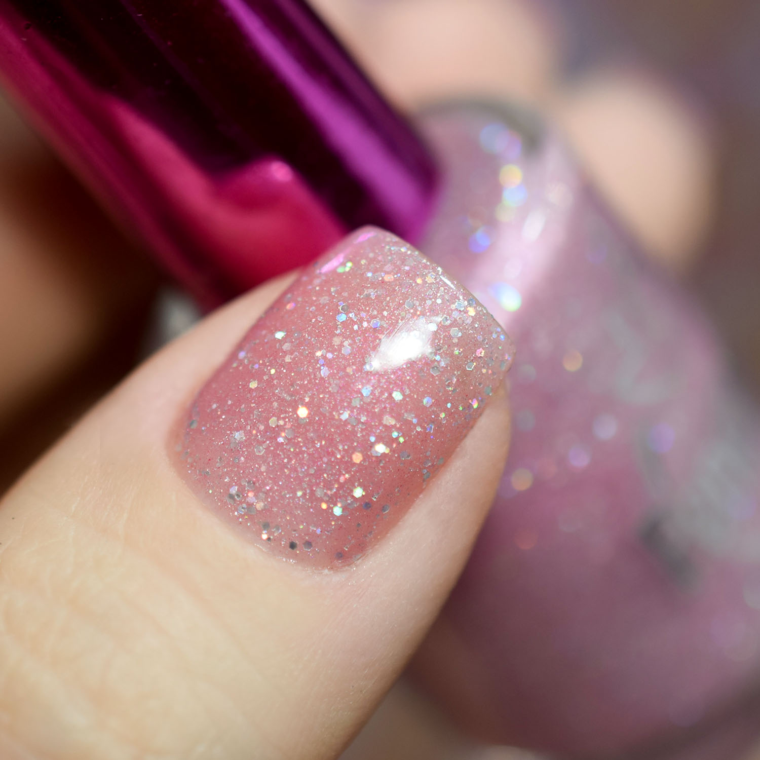 Primeiro vamos ao Glamourosa, que é um Rosa antigo com glitters holográficos prata: