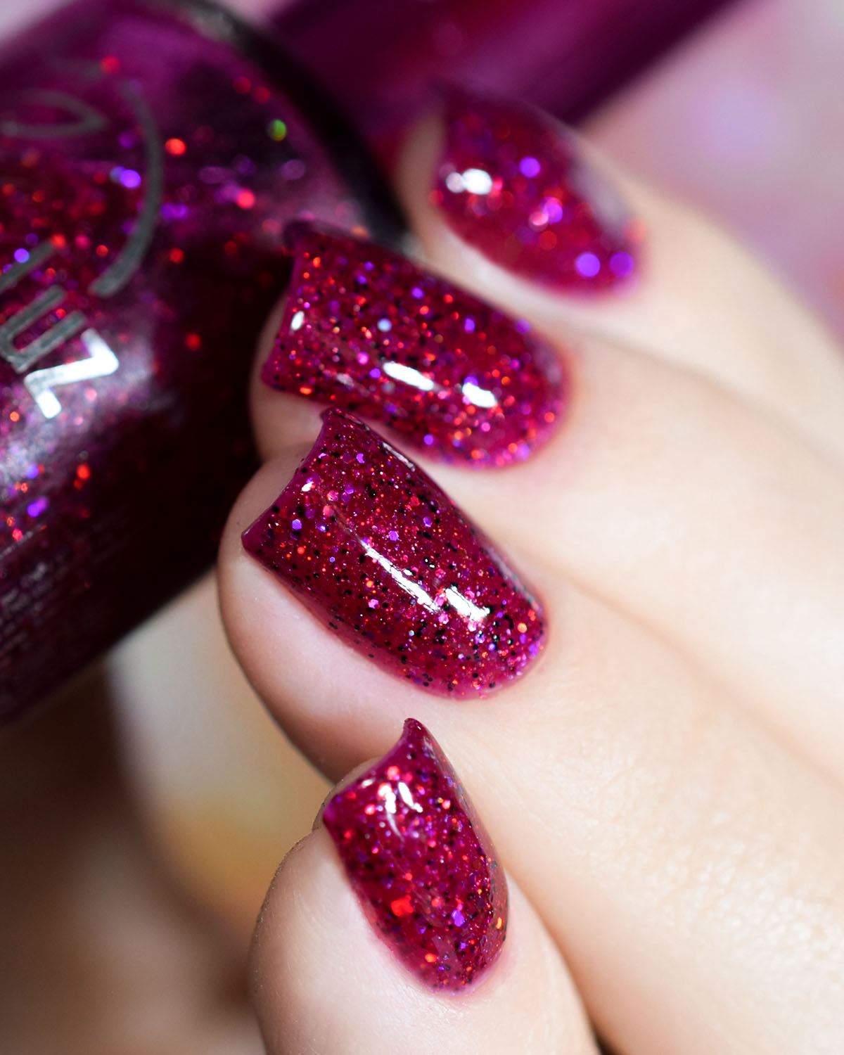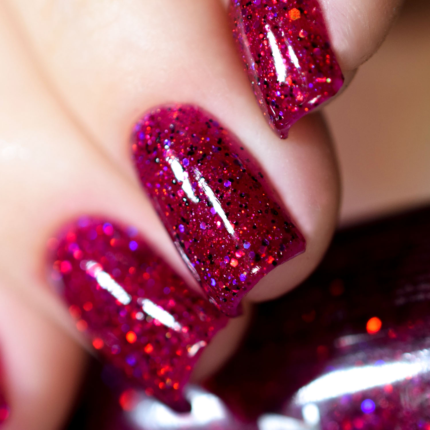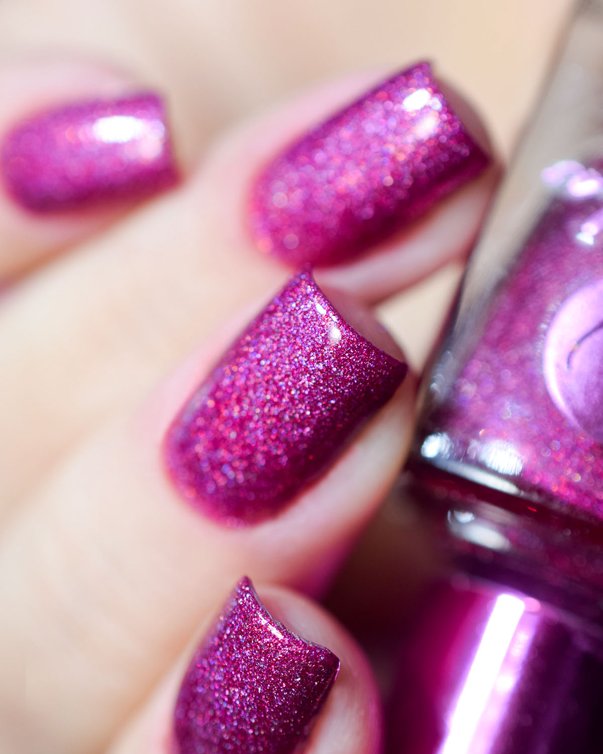 Agora vamos ao Ambiciosa, que é um rosa pink com glitters holográficos nos tons rosa, roxo, vermelho e preto ❤
