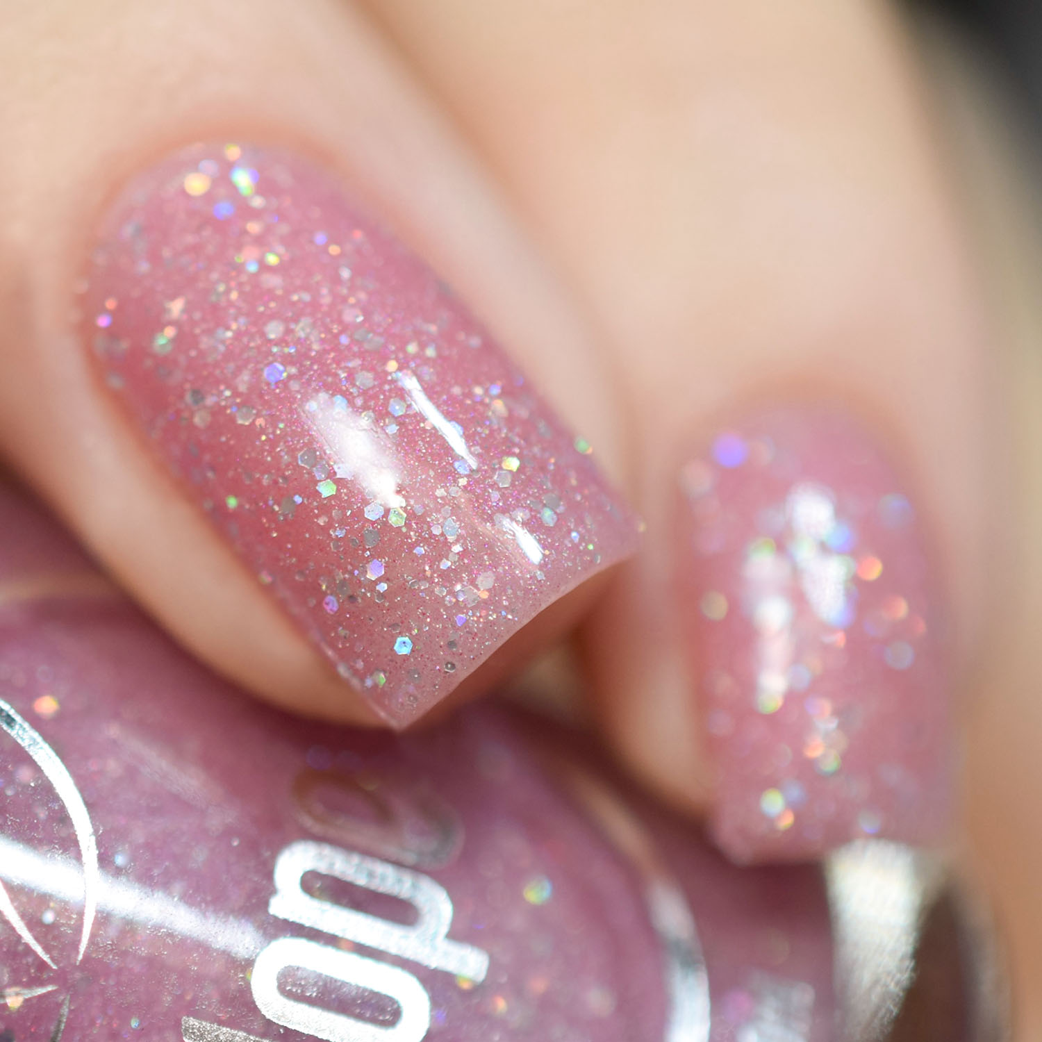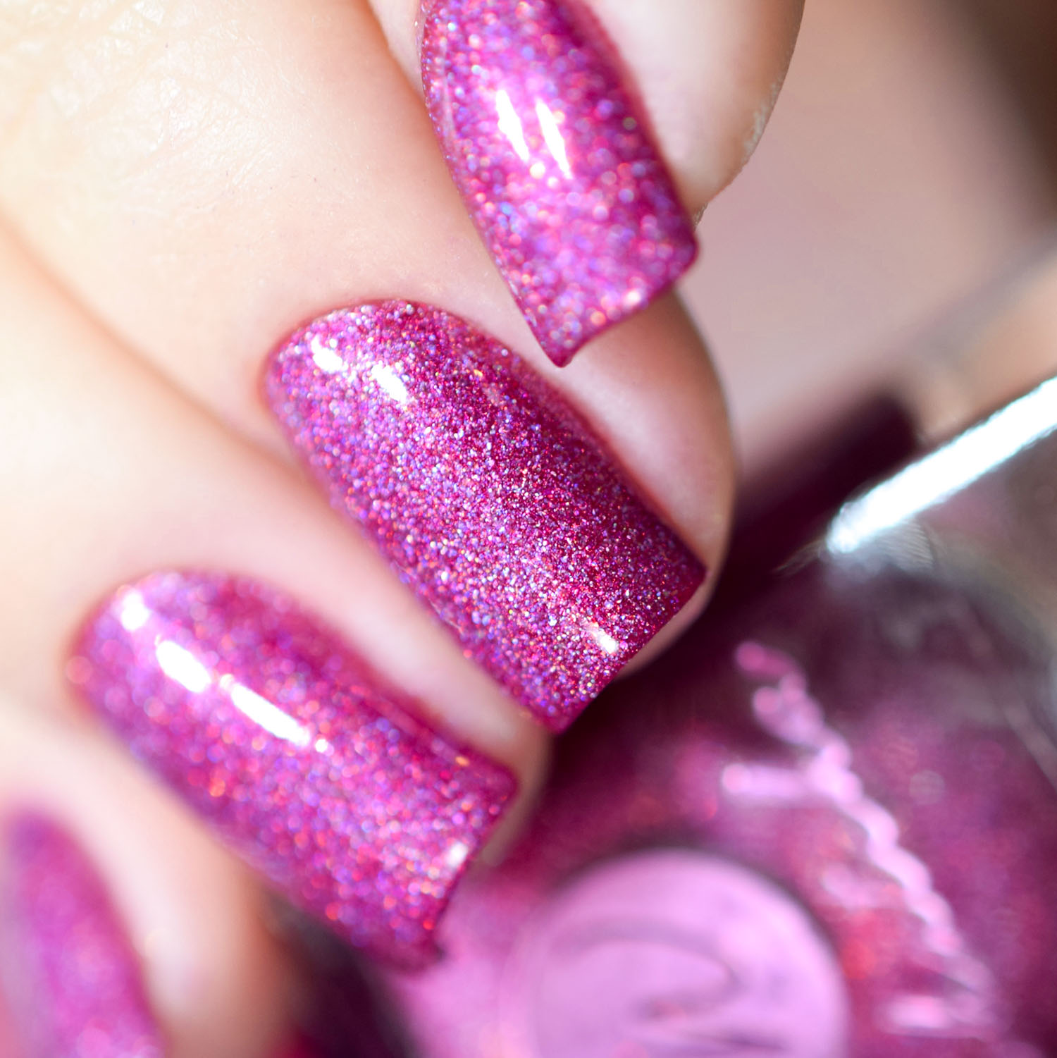 Primeiro vamos ao Glamourosa, que é um Rosa antigo com glitters holográficos prata: