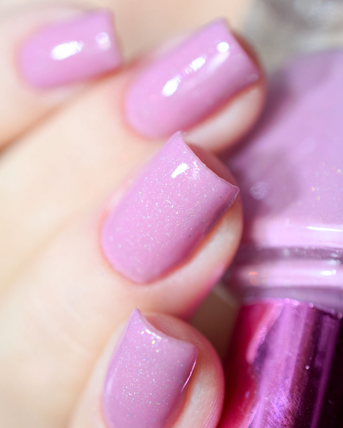 Primeiro vamos ver o Discreta, que é um delicado rosa pastel com pigmento holo pra dar um lindo charme. Muito fofo! ❤
