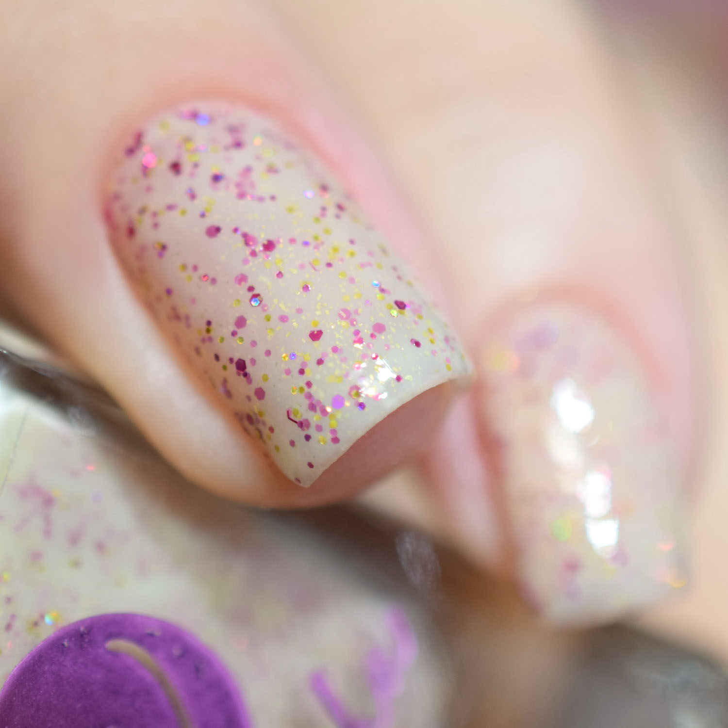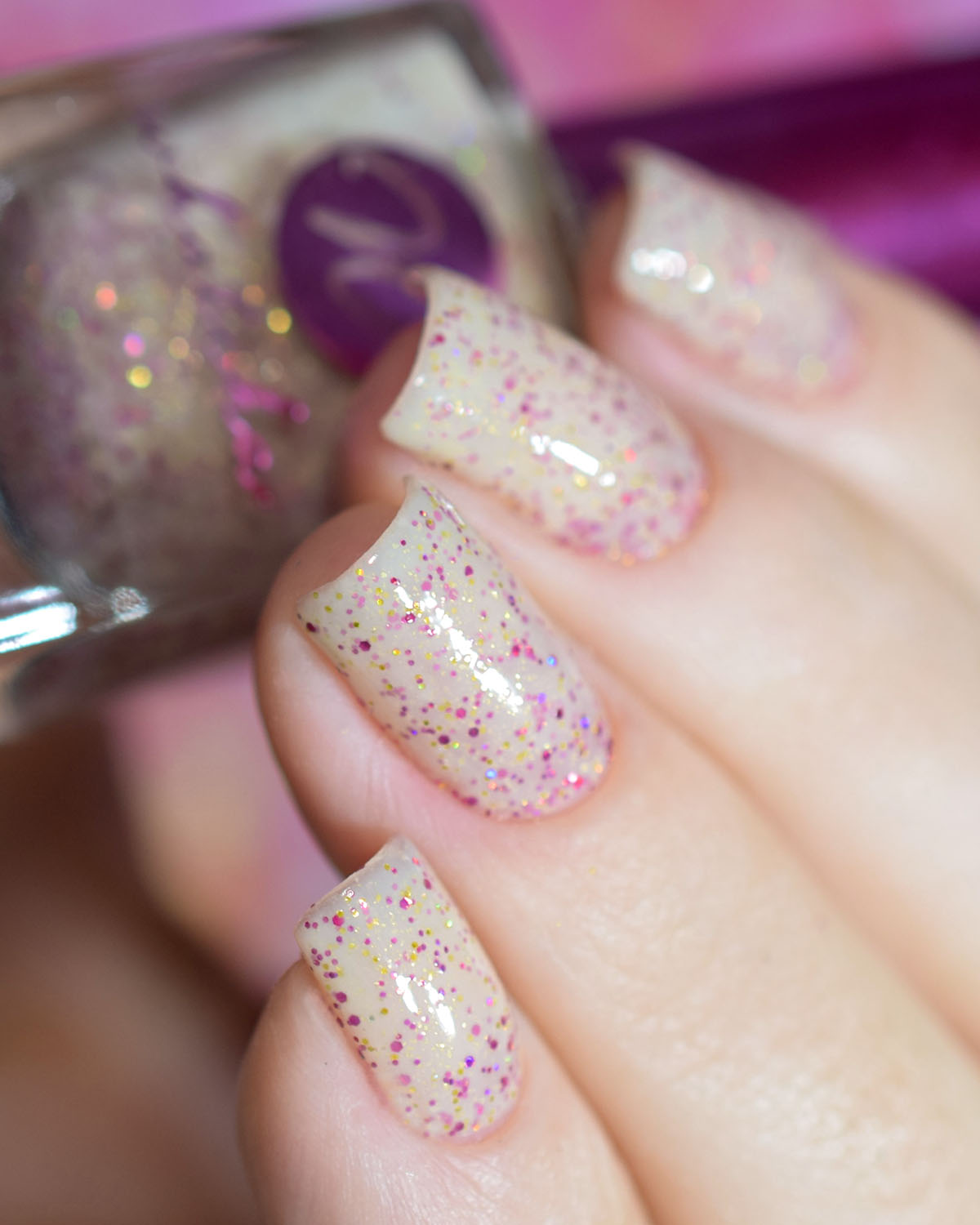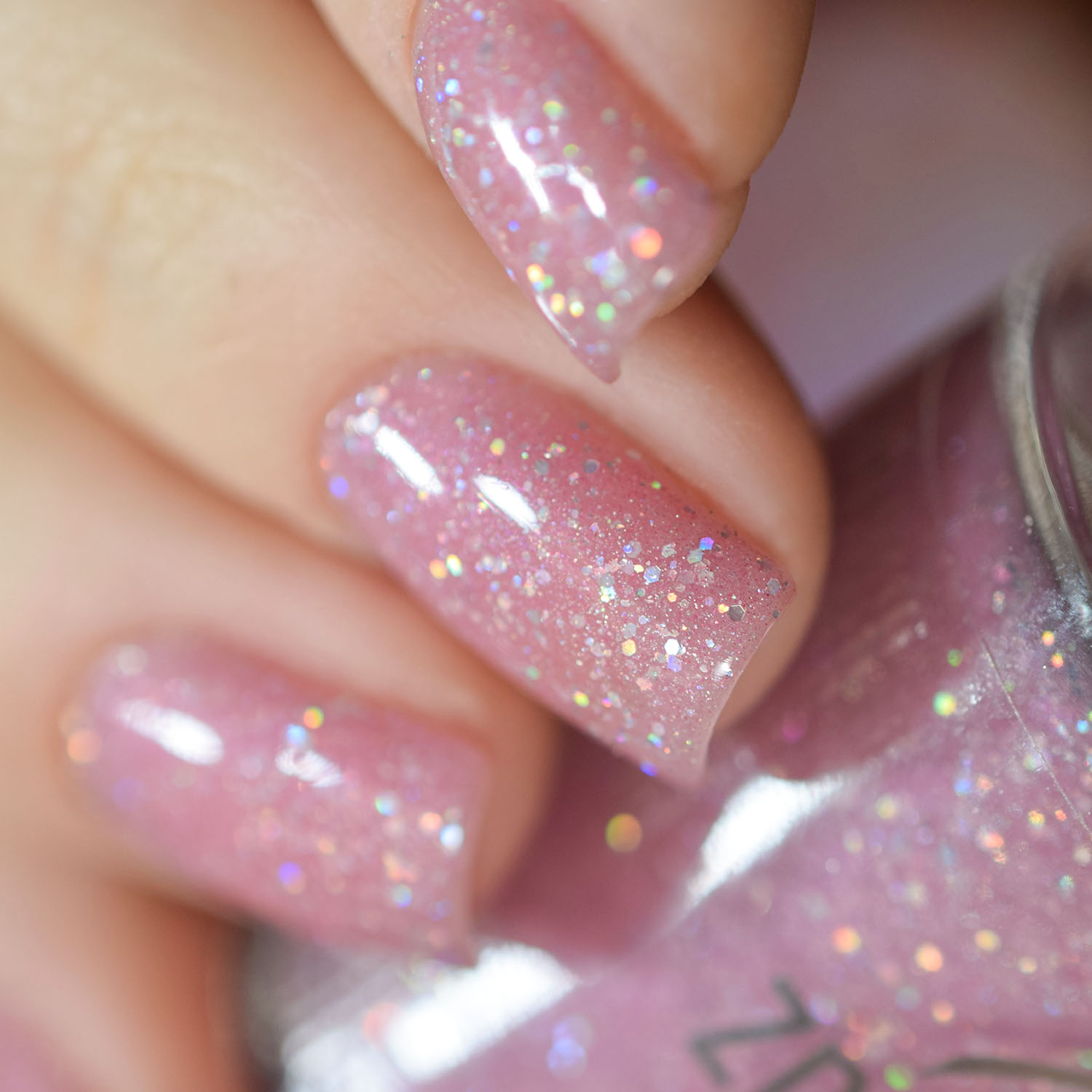 Agora vamos ao Maternal, que é um branquinho leitoso com glitters nos tons rosa pink, rosa pastel e silver holográfico. Tem também um pouquinho de pigmento e caquinho holo pra dar profundidade <33