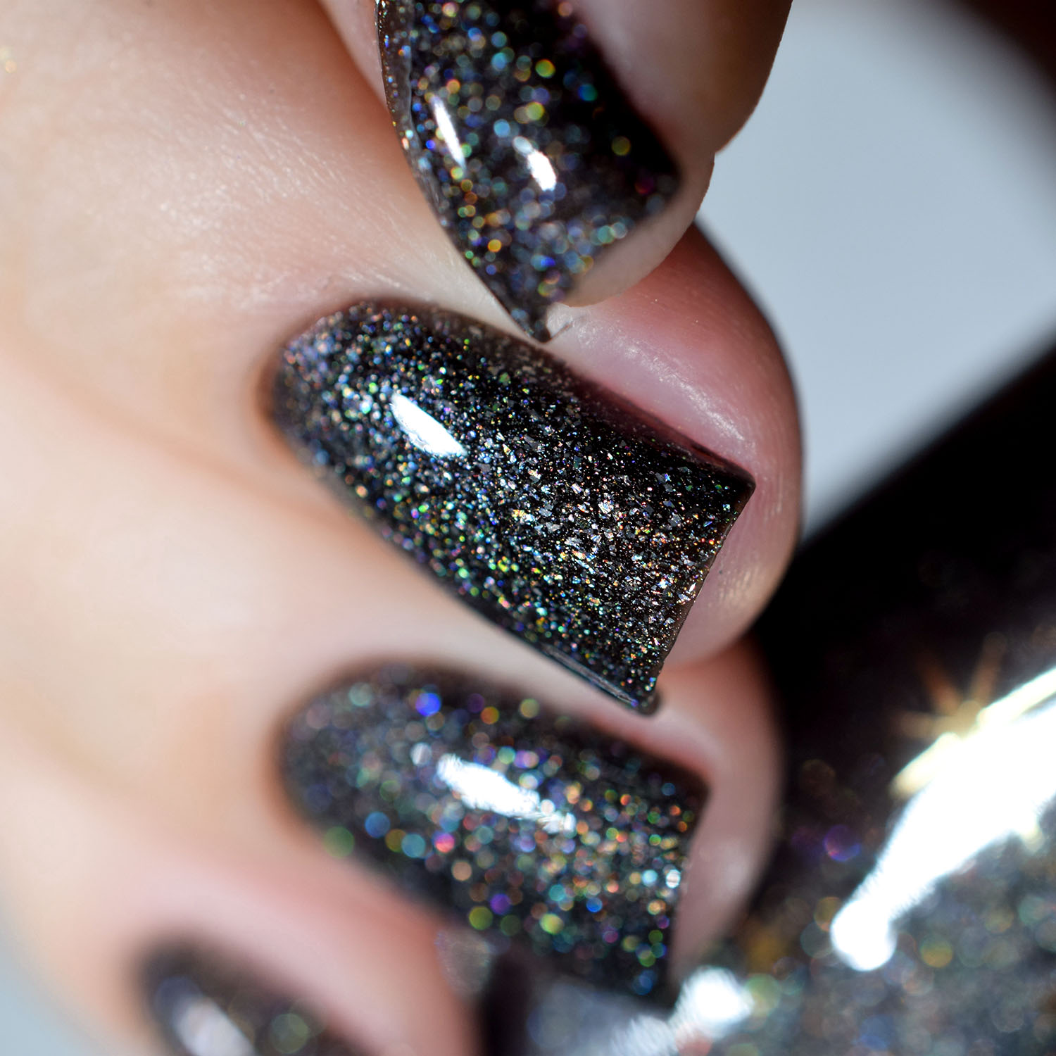 Agora vamos ao Cheers, que tem base preta e três tipos de pigmento holográfico. Maravilhoso ele! ❤