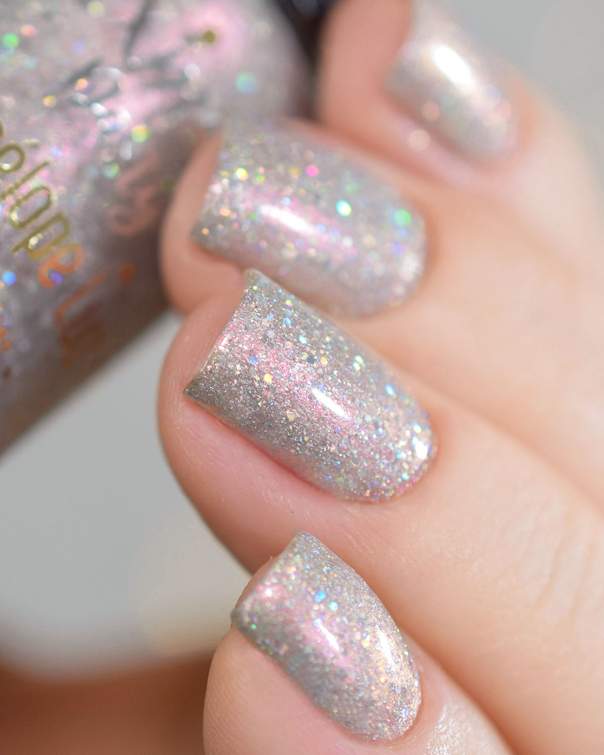 Agora vamos conhecer o Time for Family, que é um cinza indo para o bege, com três tipos de pigmento holográficos e outros pigmentos de efeito. Muito lindo! Ele está bem chique!