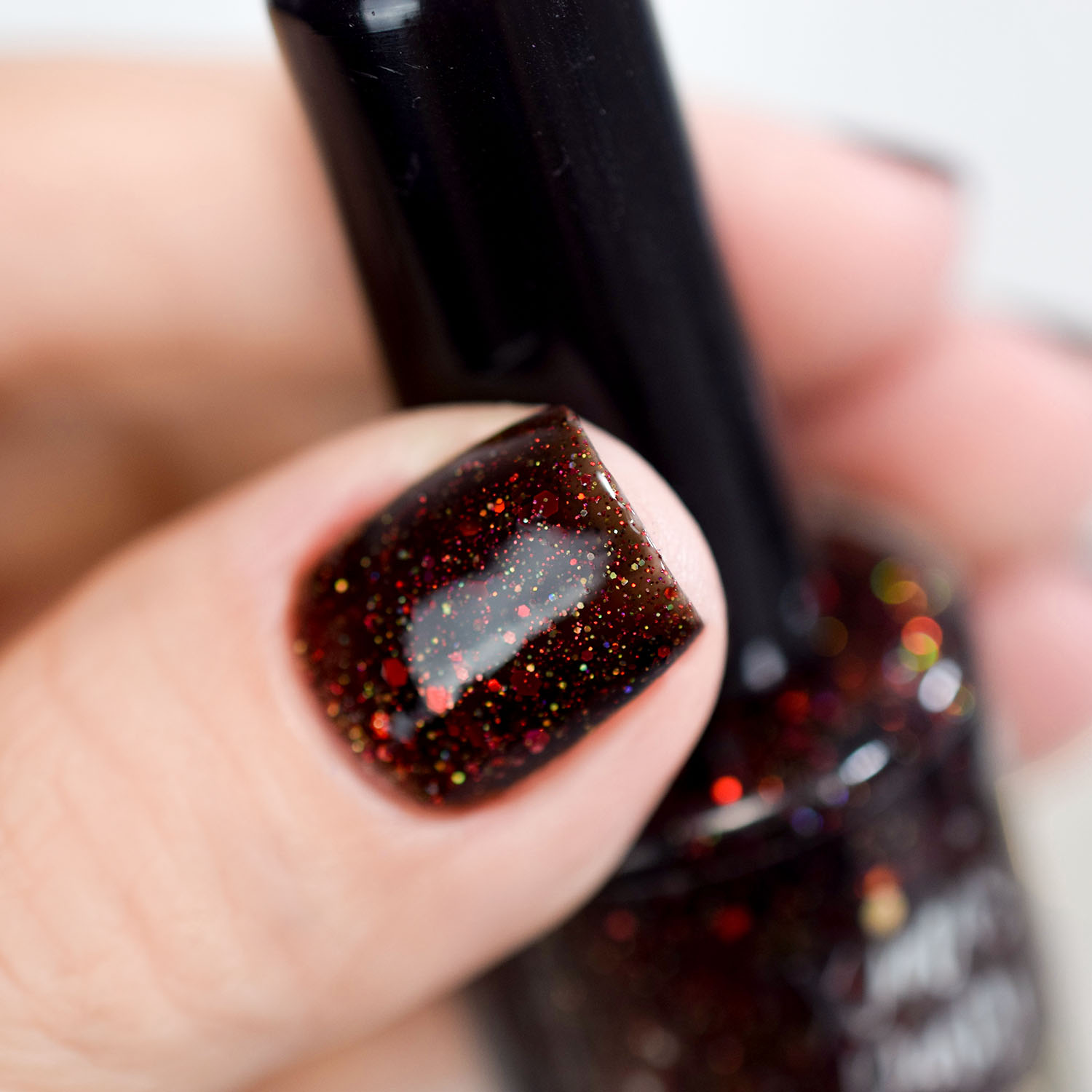 Agora vamos ao Fancy Food, que é um preto lindo, com glitters holográficos dourados e vermelhos. ❤