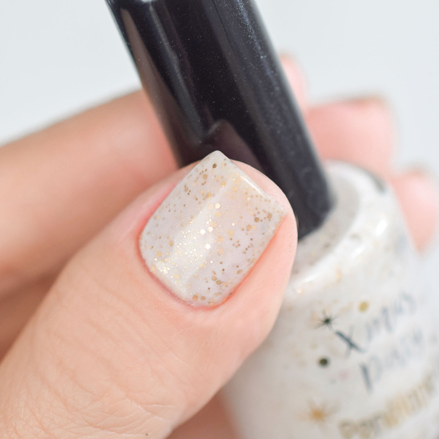 Primeiro vamos conhecer o Gingerbread, que é um branquinho leitoso com glitter metálico dourado e floquinhos dourados. Muito fofo ❤