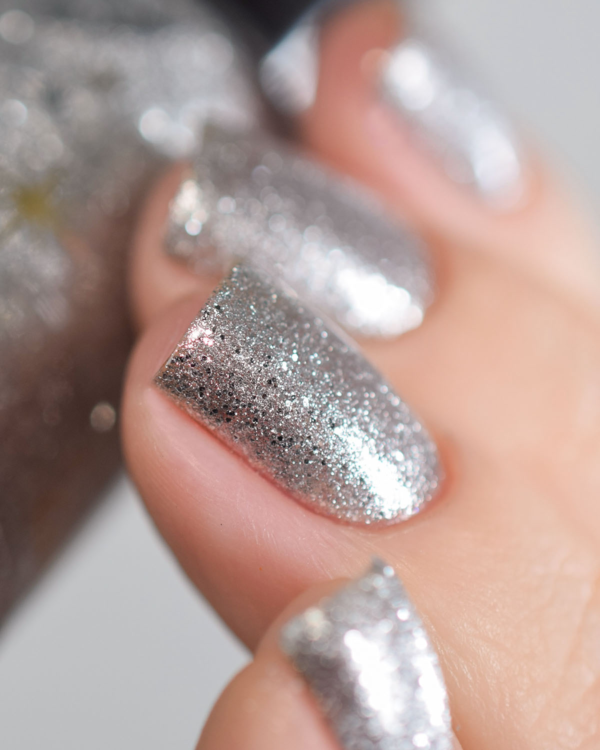 Agora vamos conhecer o Silver Bells, que é esse prata lindo e brilhoso! Ele tem pigmento prata e glitter prata metálico. Amei muito ele!