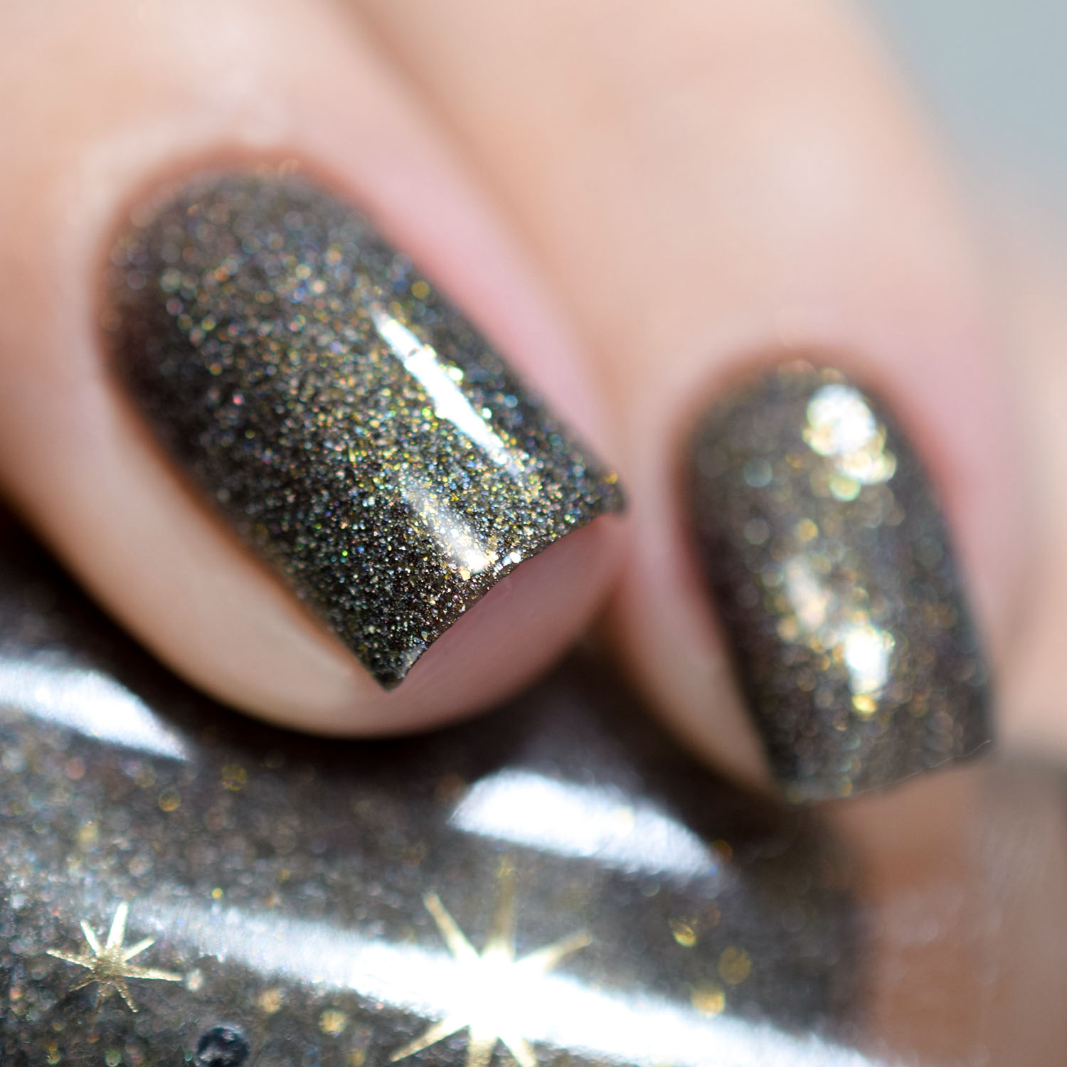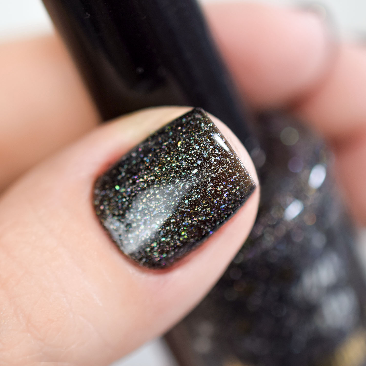 Agora vamos ao Cheers, que tem base preta e três tipos de pigmento holográfico. Maravilhoso ele! ❤