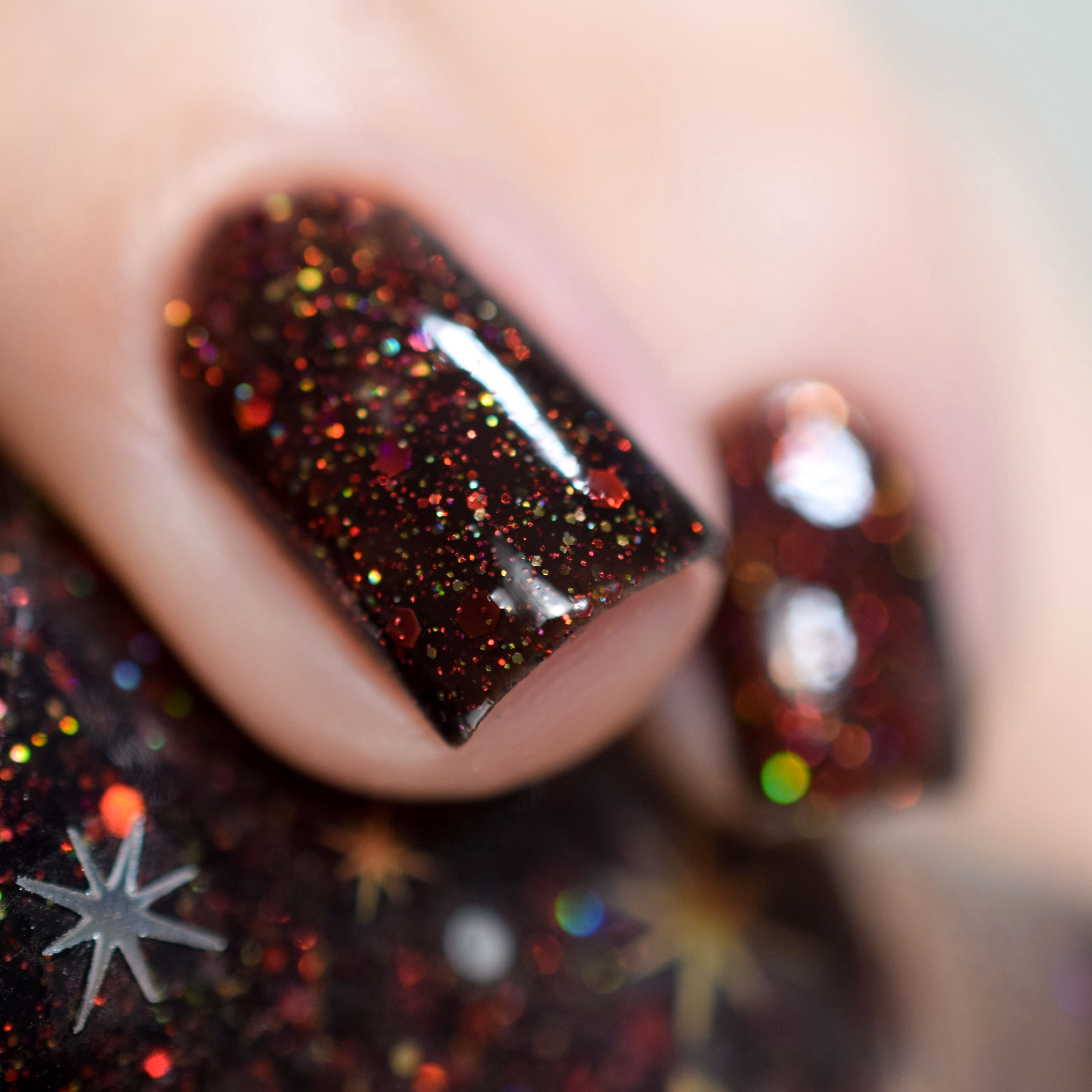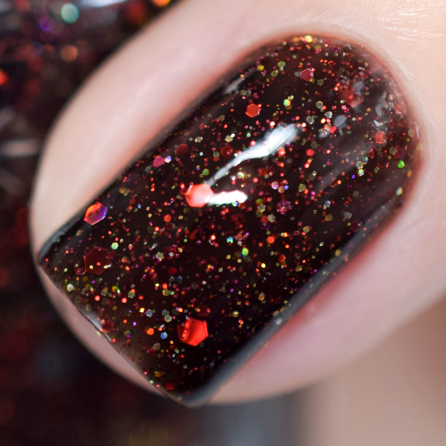 Agora vamos ao Fancy Food, que é um preto lindo, com glitters holográficos dourados e vermelhos. ❤