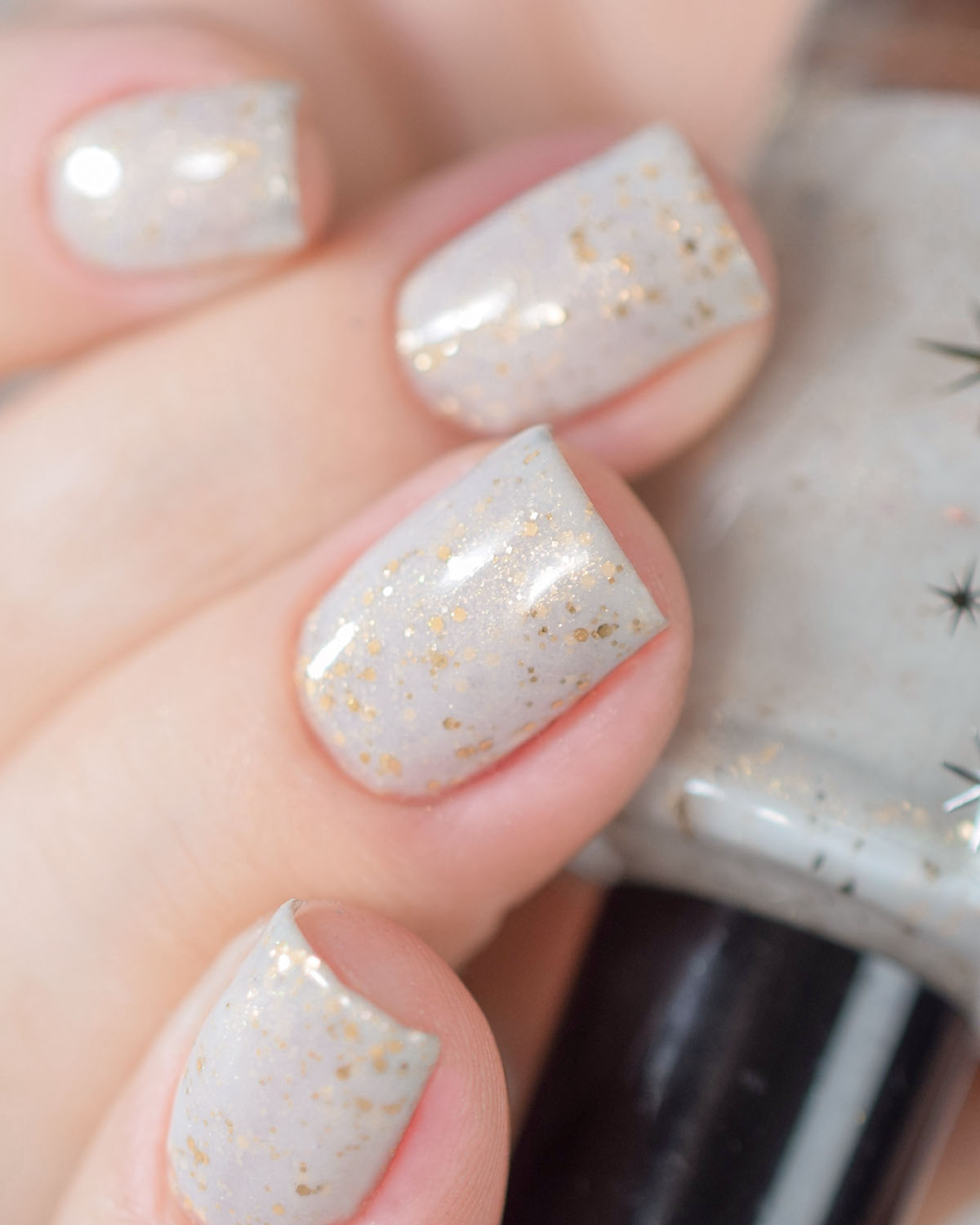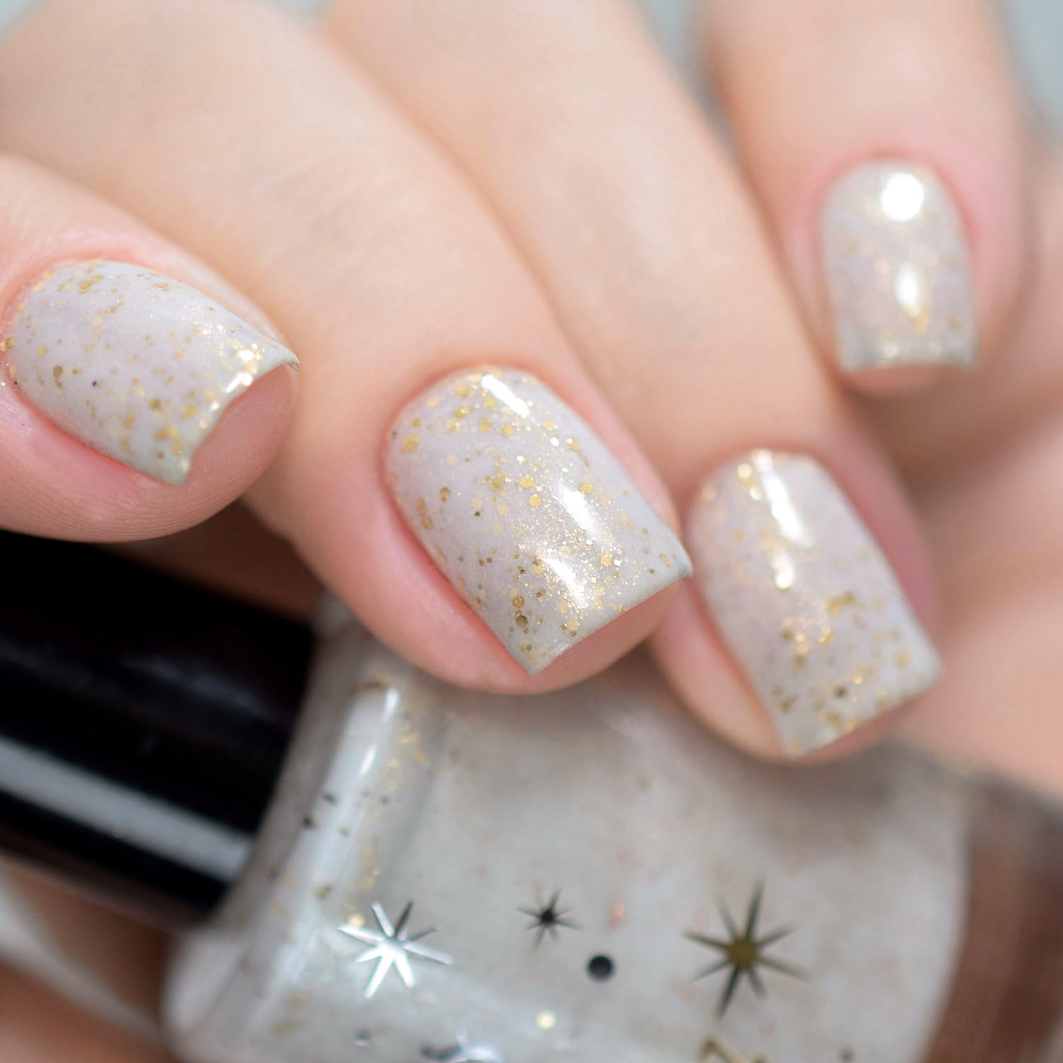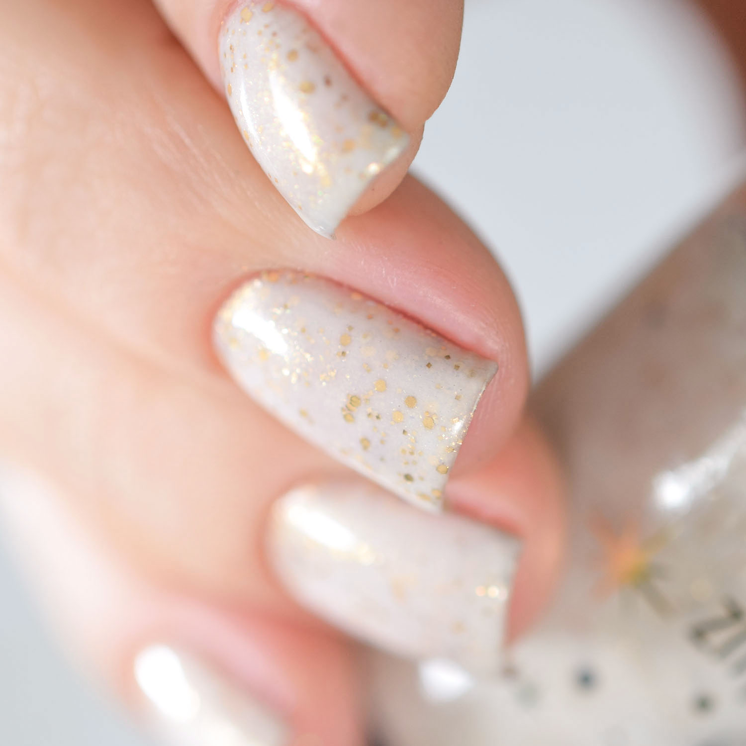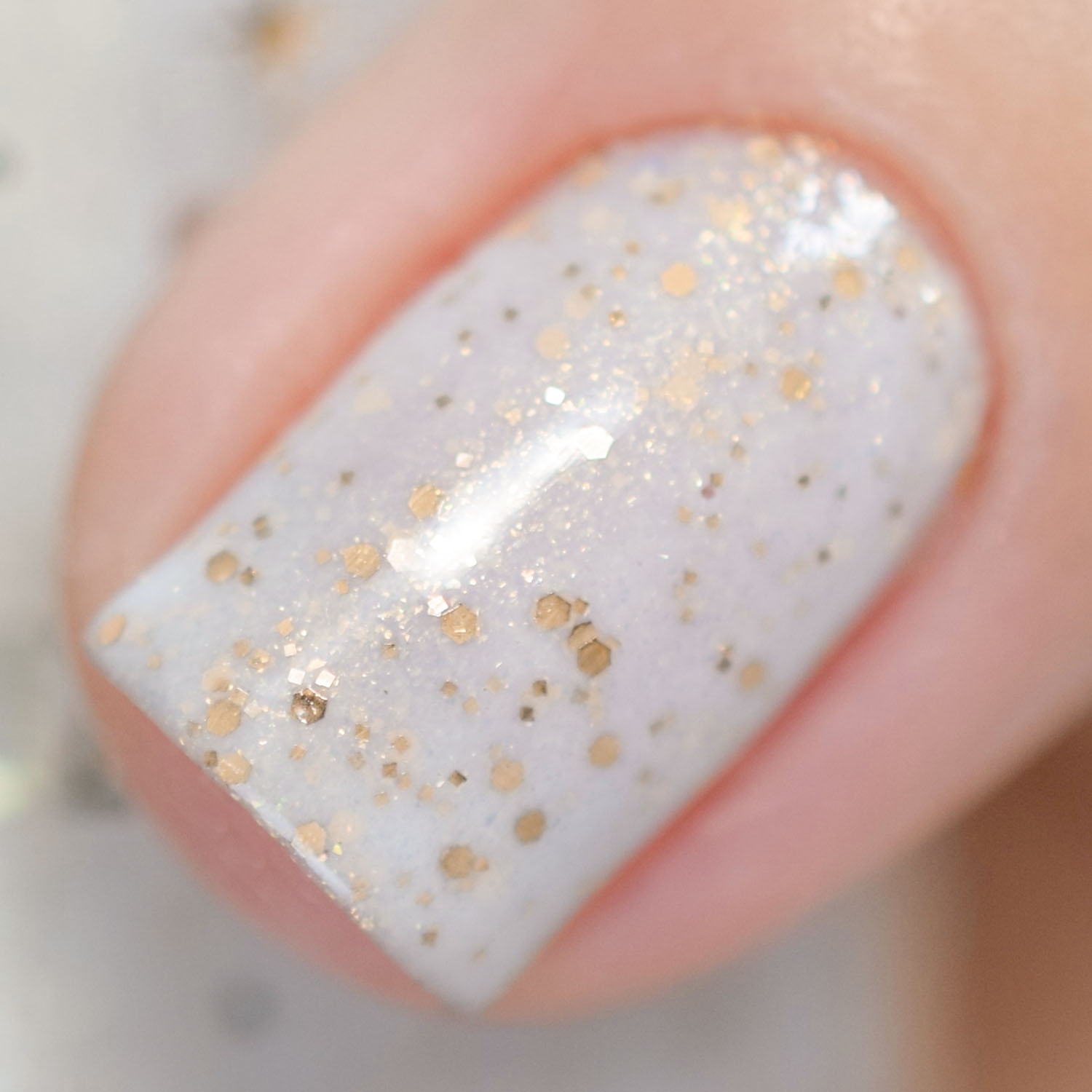 Primeiro vamos conhecer o Gingerbread, que é um branquinho leitoso com glitter metálico dourado e floquinhos dourados. Muito fofo ❤