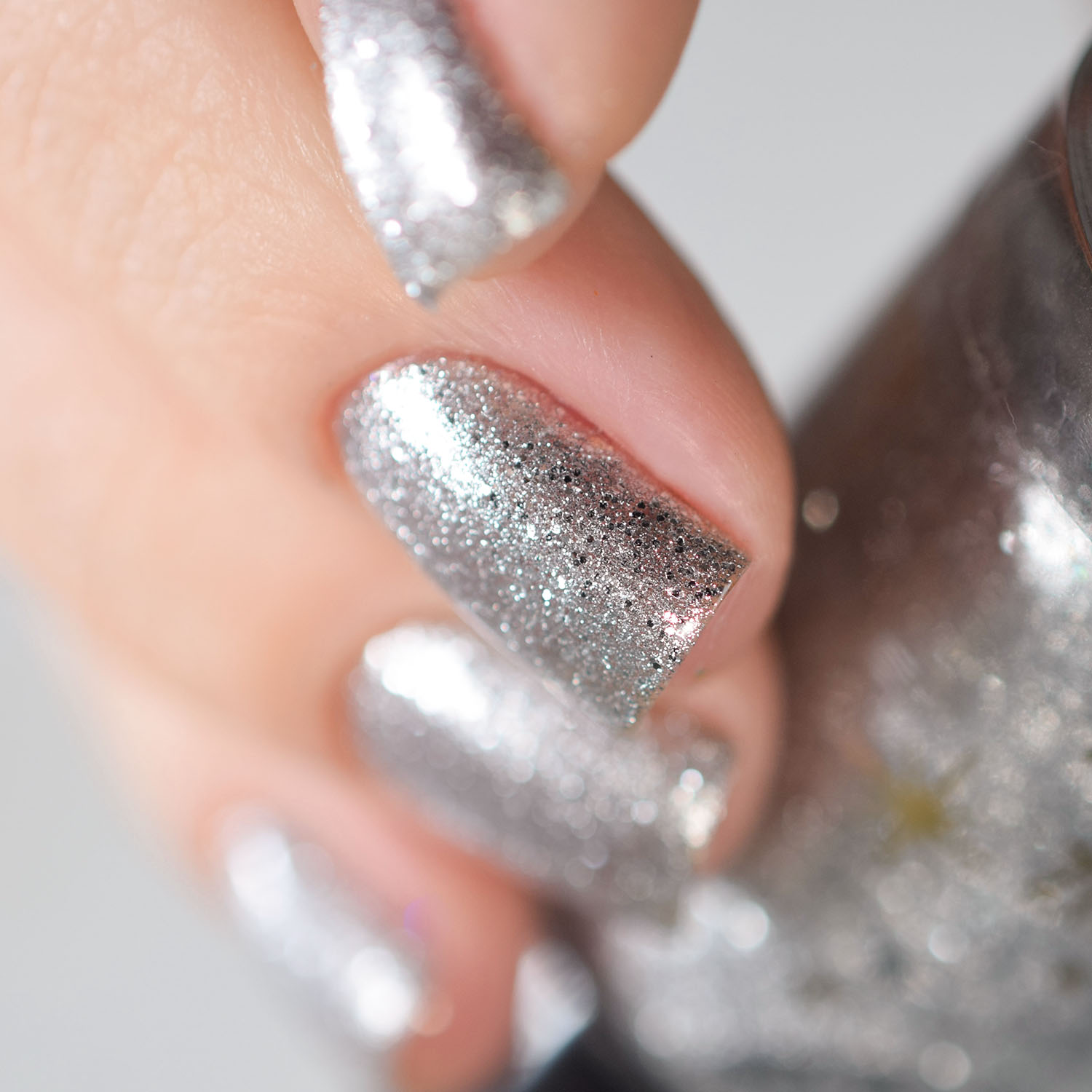 Agora vamos conhecer o Silver Bells, que é esse prata lindo e brilhoso! Ele tem pigmento prata e glitter prata metálico. Amei muito ele!
