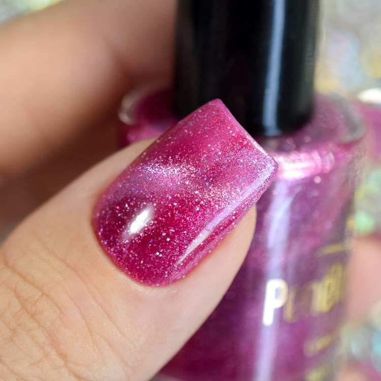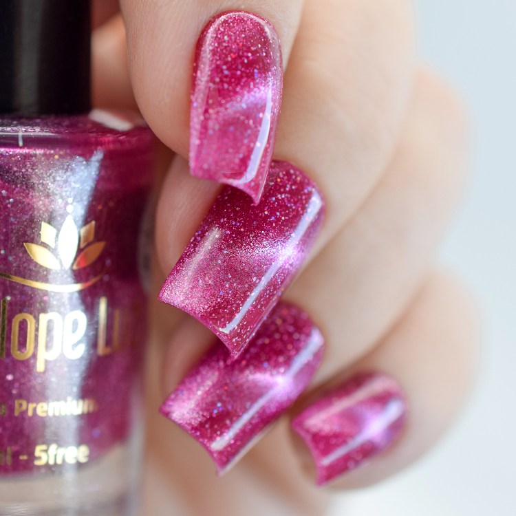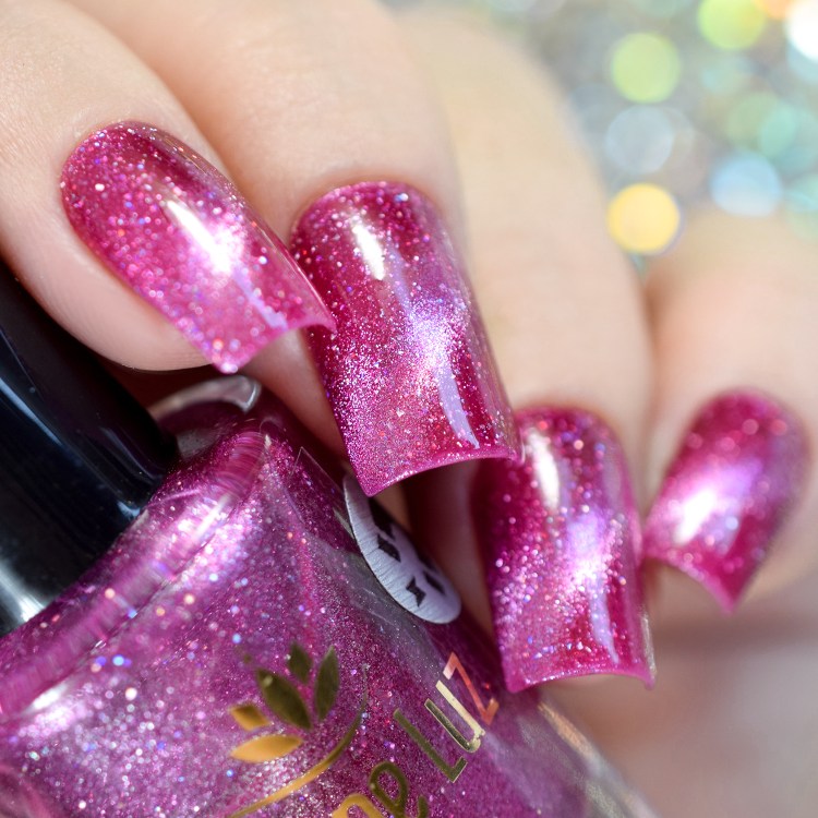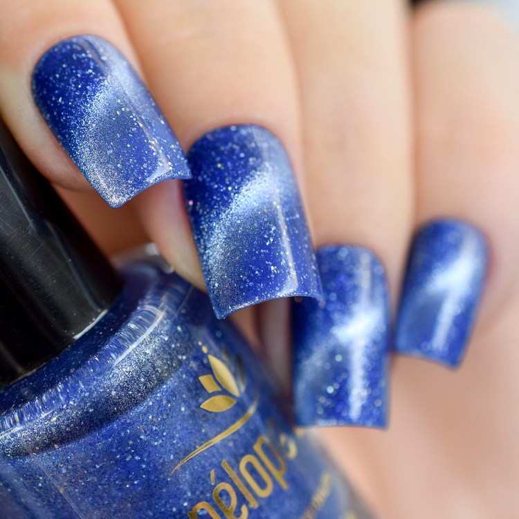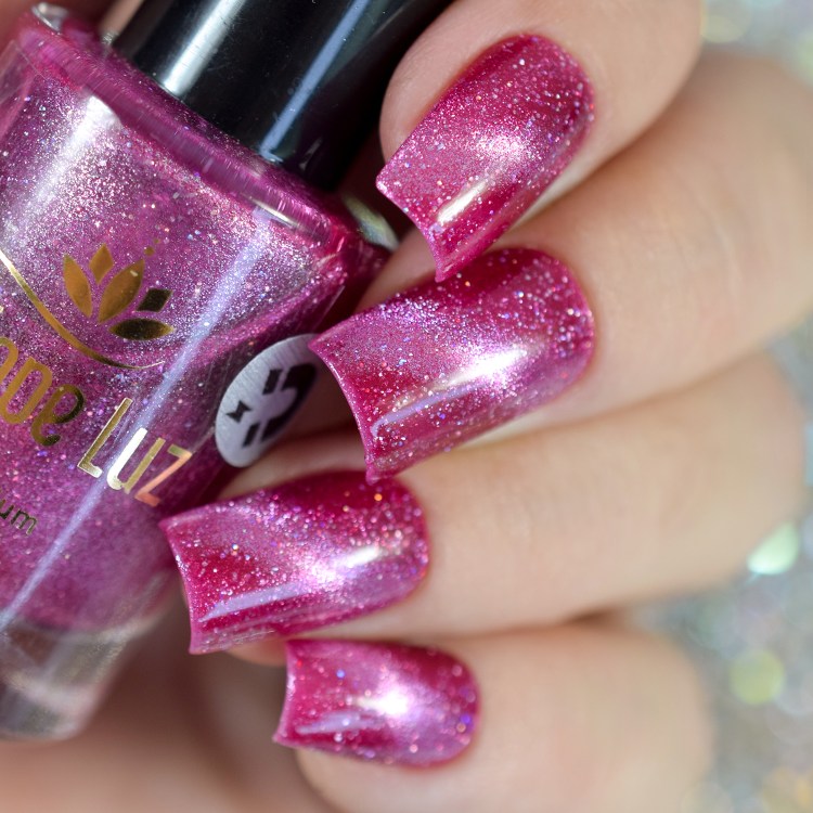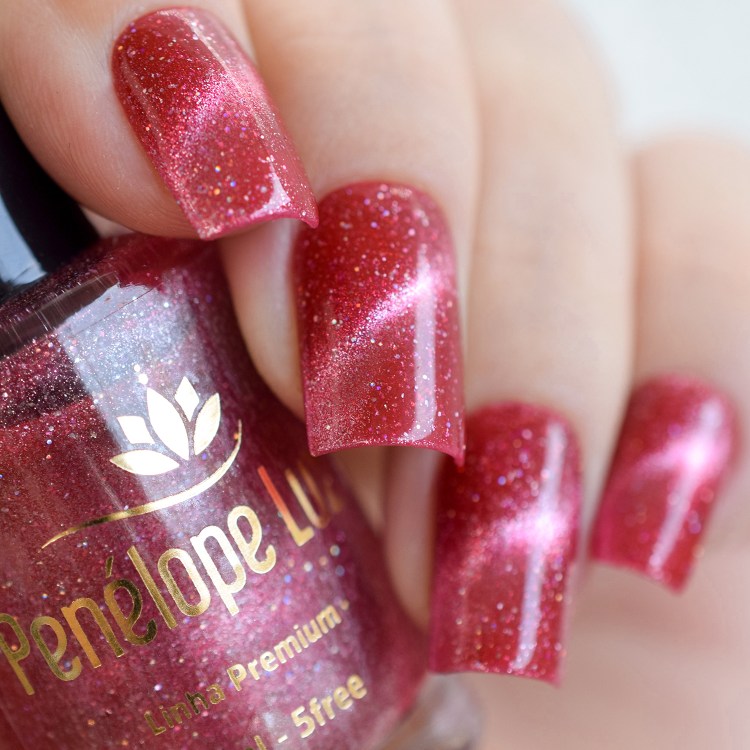 A coleção é composta por 6 cores, todas com efeito magnético 5D. Esse pigmento magnético é o mesmo do Pure Light da coleção de Natal, ele brilha demais e tem um efeito mais intenso, mais profundo. A unha parece mesmo que está viva, é muito lindo! Além do pigmento magnético, coloquei também um pouco de flakie holográfico e glitter galaxy prata, pra deixar ele com ainda mais profundidade! Por mais esforço que façamos para as fotos fiés, nenhuma mostra a beleza real deles, só ao vivo mesmo. Esse pigmento é um espetáculo! ❤