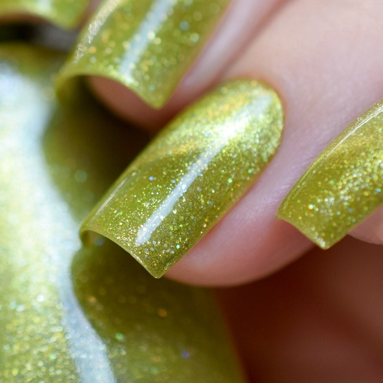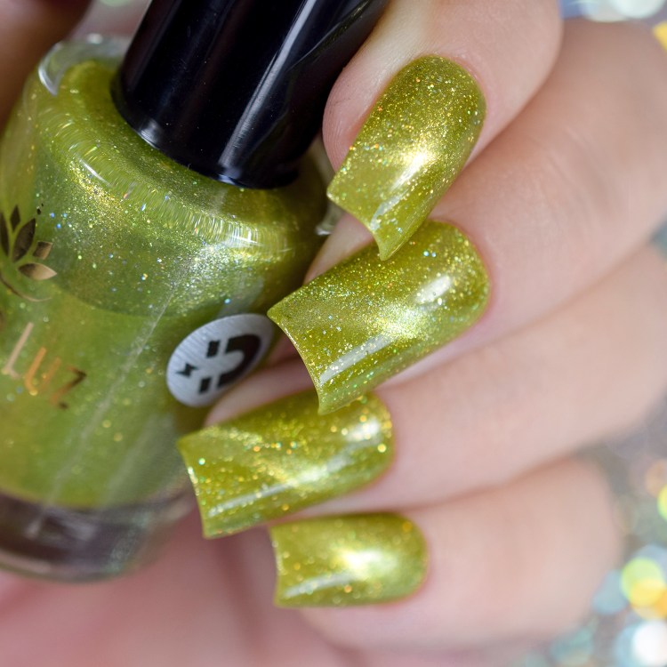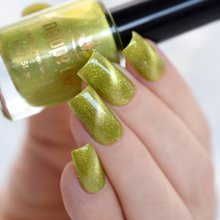 Agora vamos ao Lemon Pie, que é um amarelo limão com uma pitada de verde! Esse é um escâdalo, gente! Como ficou lindo esse pigmento nesse efeito magnético! A unha fica parecendo aquelas jóias encantadas! Eu que não sou chegada nem em esmalte amarelo e nem em verde, fiquei apaixonada nesse! A profundidade dele está espetacular!