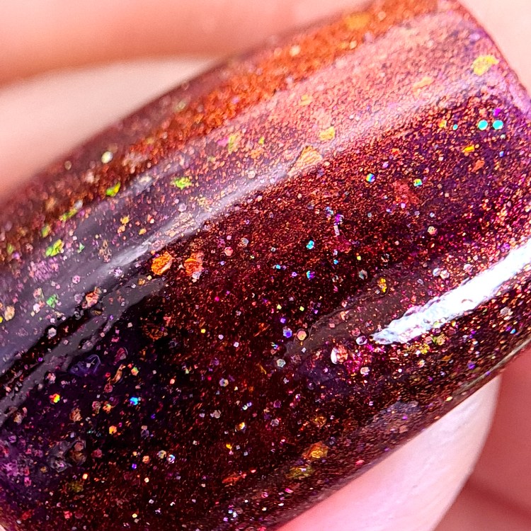 Agora vamos ao So Spicy!, porque não poderia faltar a homenagem ao amor que a Índia tem por tudo apimentado! rsrsrs Eu fico doida vendo vídeos de culinária indiana que as indianas amam gravar, quando elas colocam três a quatro pimentas ENORMES e daquelas bem picantes nas panelas! Fico pensando como alguém consegue comer aquilo sem se desintegrar por dentro! Eu só aguento pimenta biquinho e pimenta de cheiro! kkkkk O esmalte é um magnético multichrome, que vai do vermelho para o cobre e dourado. Ele tem a base roxa e em também um pouco de glitter dourado e flakie iridescente só para dar um charme e não esconder o efeito magnético.