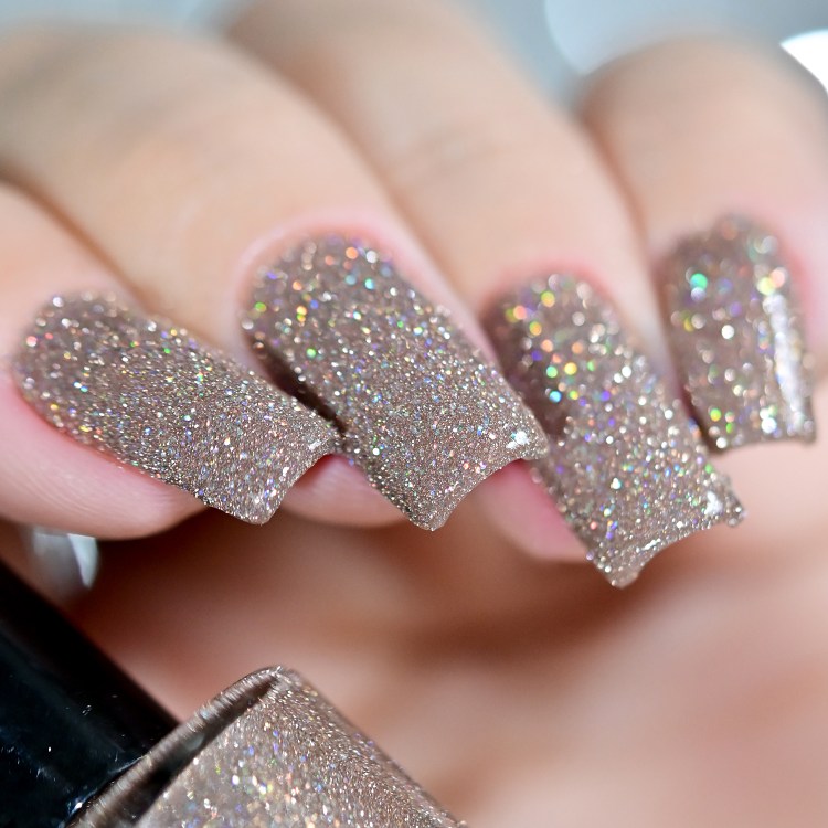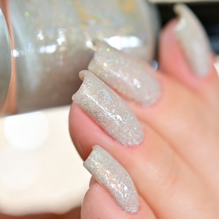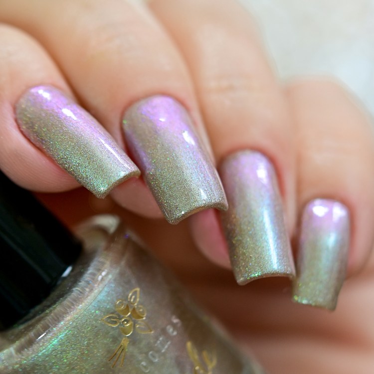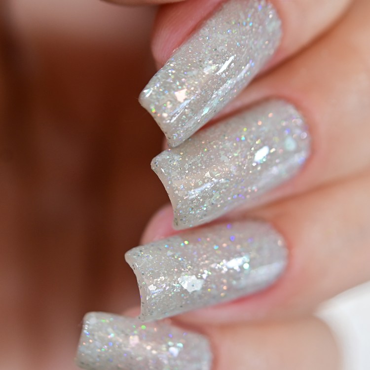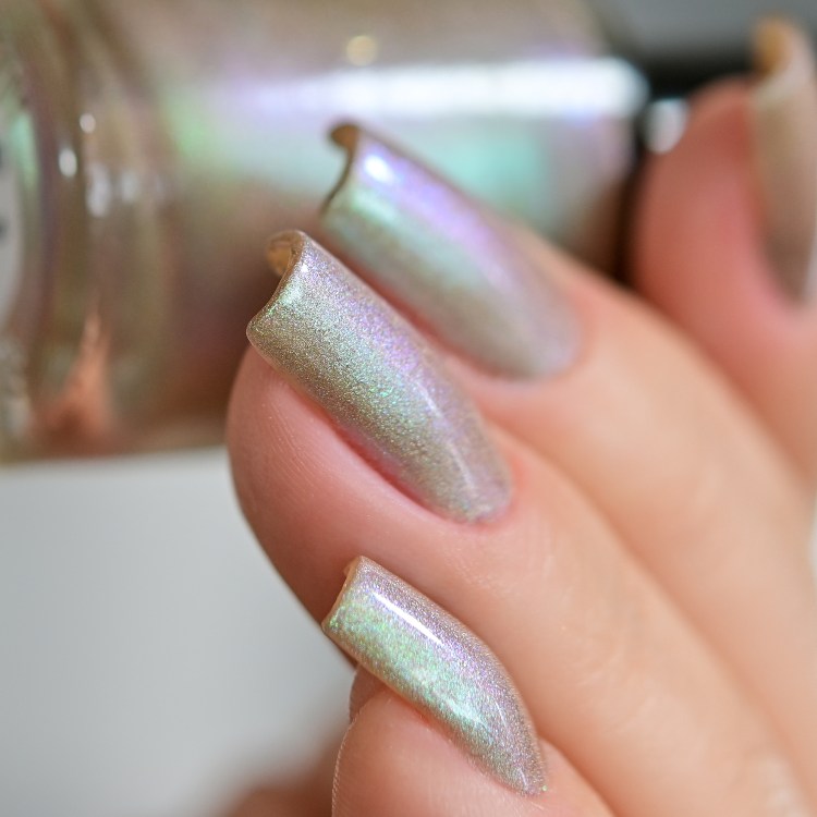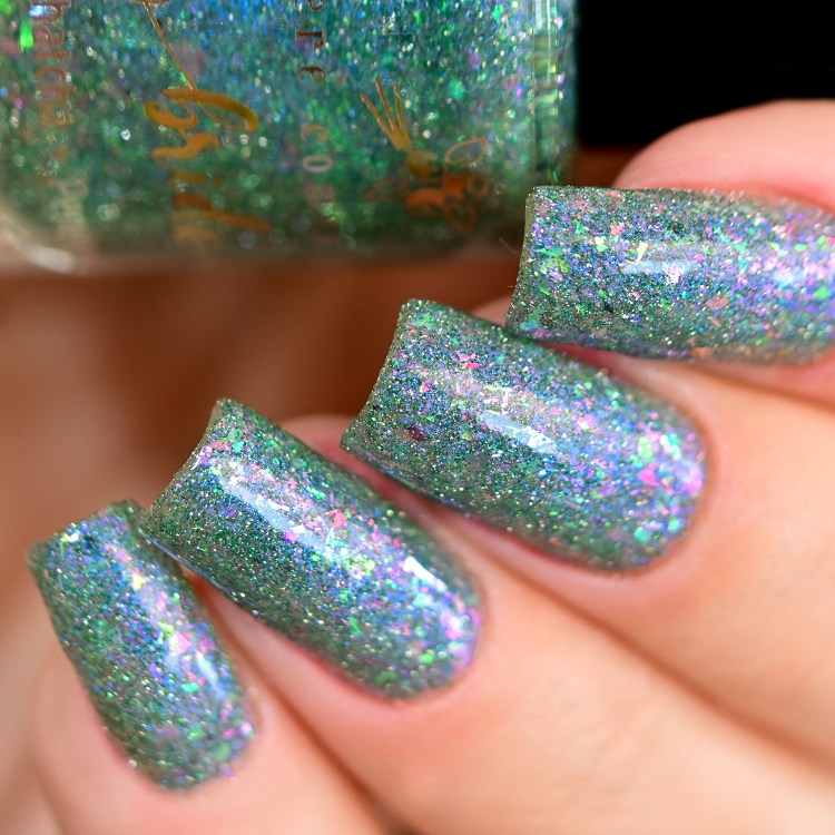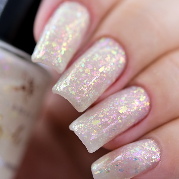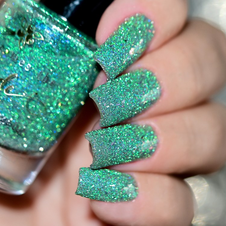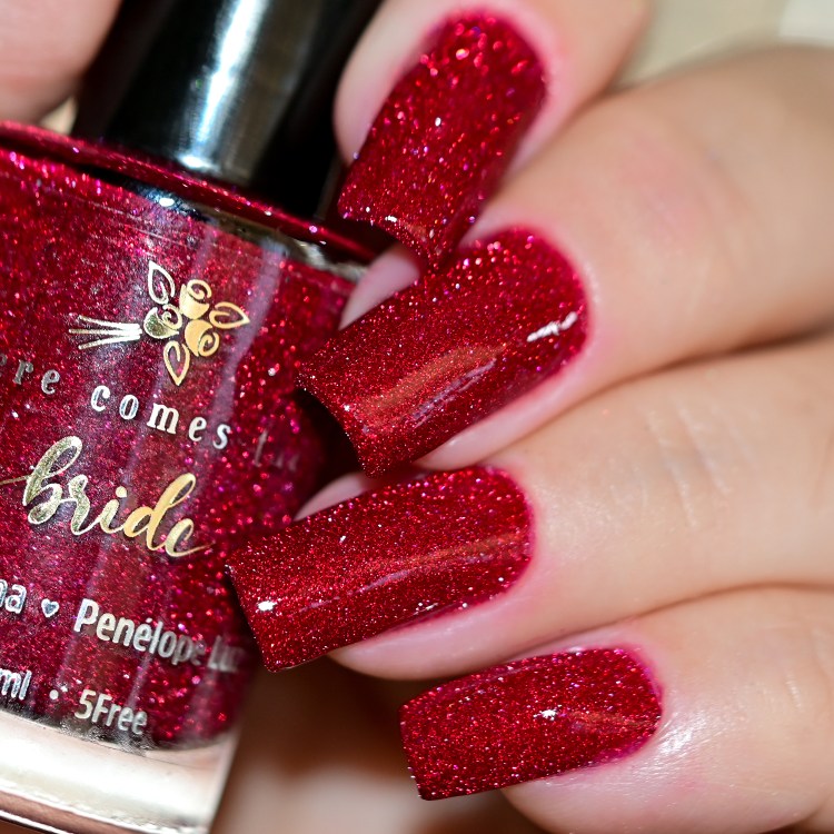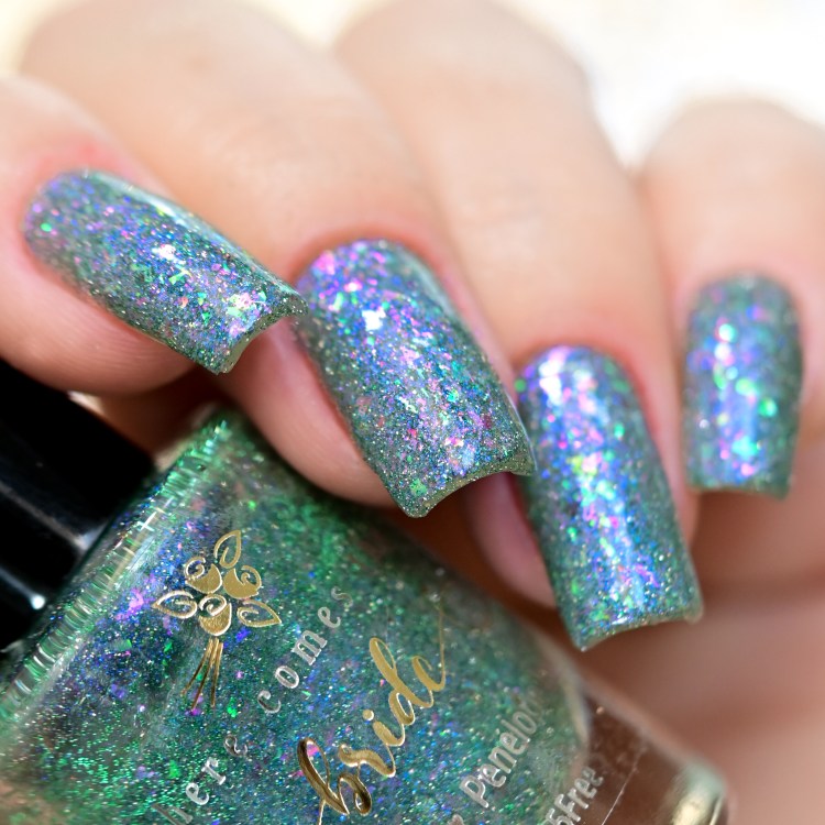 Por fim vamos ao Maid of Honor, pensando justamente nas madrinhas lindas que também precisam estar com as unhas maravilhosas! Ele tem flakes iridescentes, aurora e glitter refletivo verde. ❤