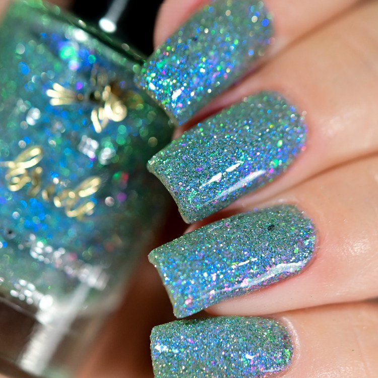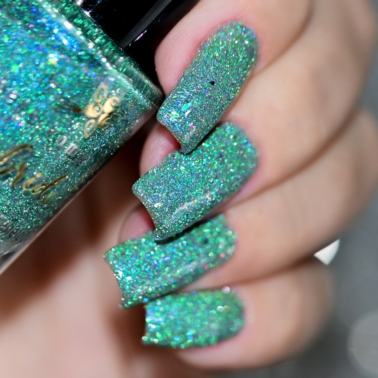 Agora vamos conhecer o Beach Wedding, que é um verde água lindo com pigmento holográfico e aurora. ❤