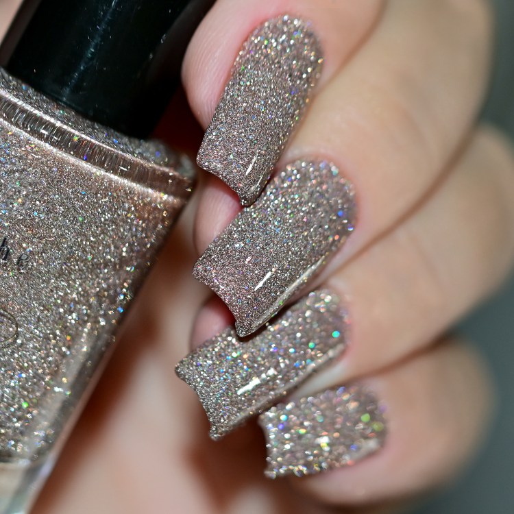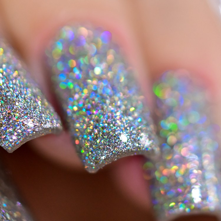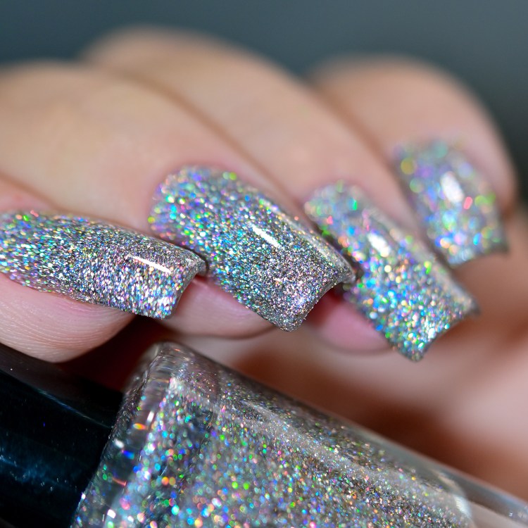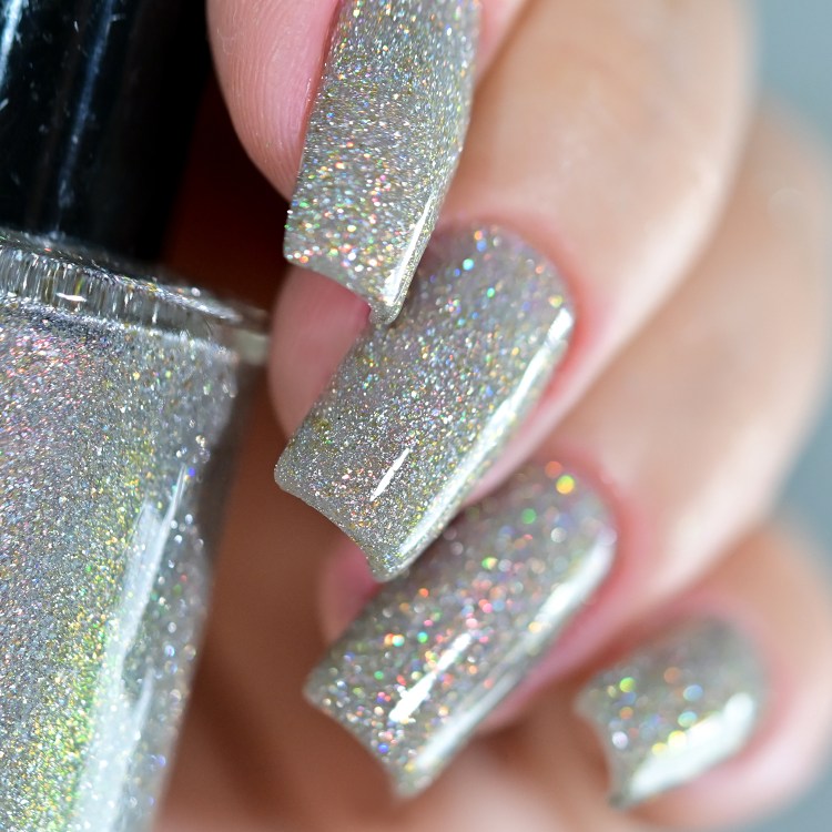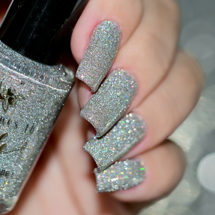 Agora vamos ao Shiny Eyes, que é o prata holo escândalo da coleção, pra quem quer muito brilho, mas não curte os refletivos. Esse vai brilhar muito sem relevo! Tá uma loucura esse esmalte, cheio de flake holográfico e glitter galaxy holográfico prata. ❤