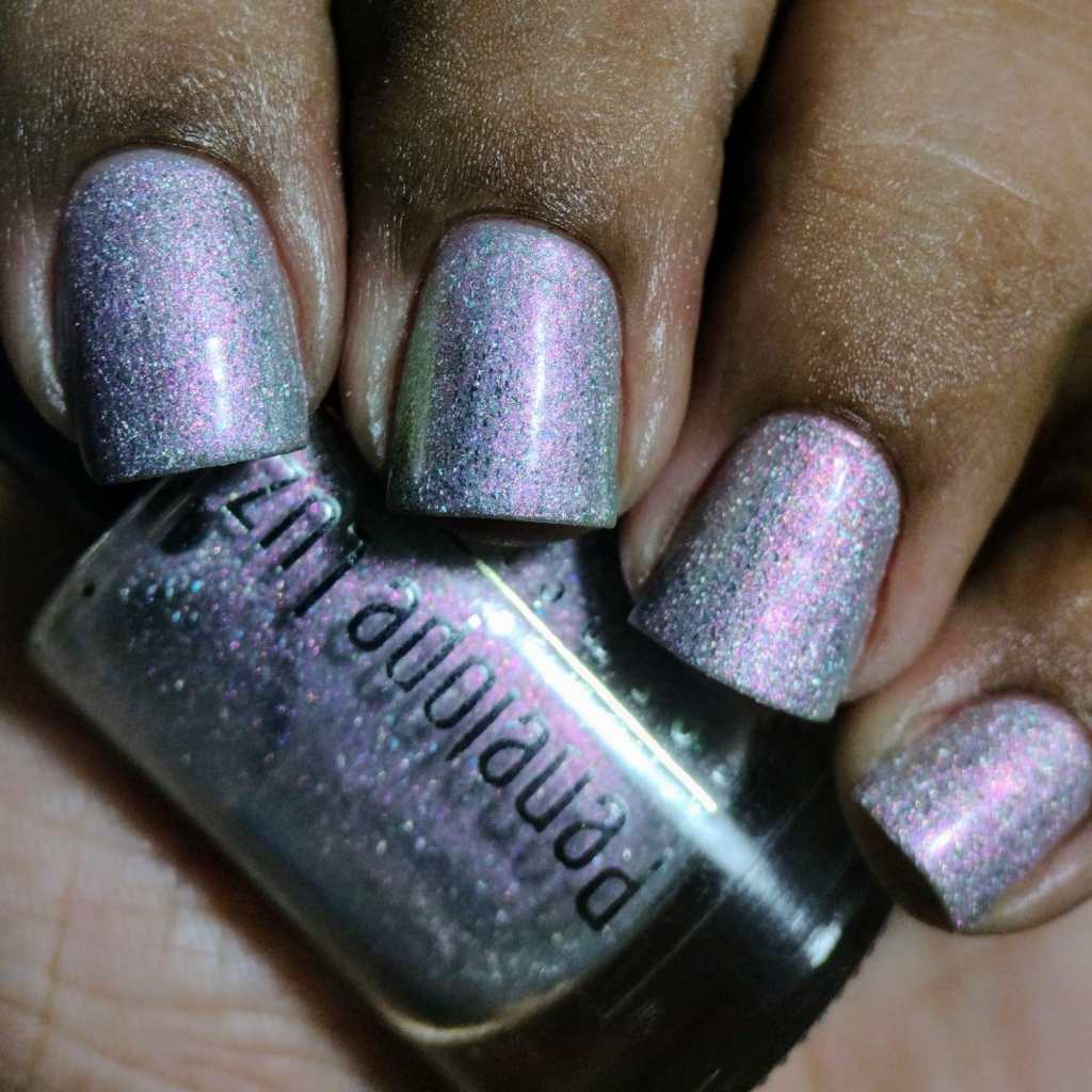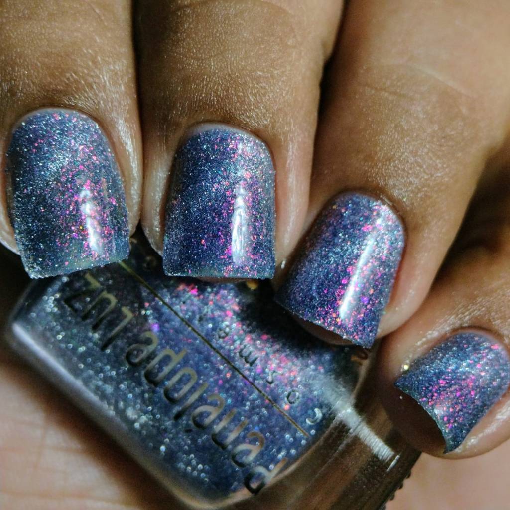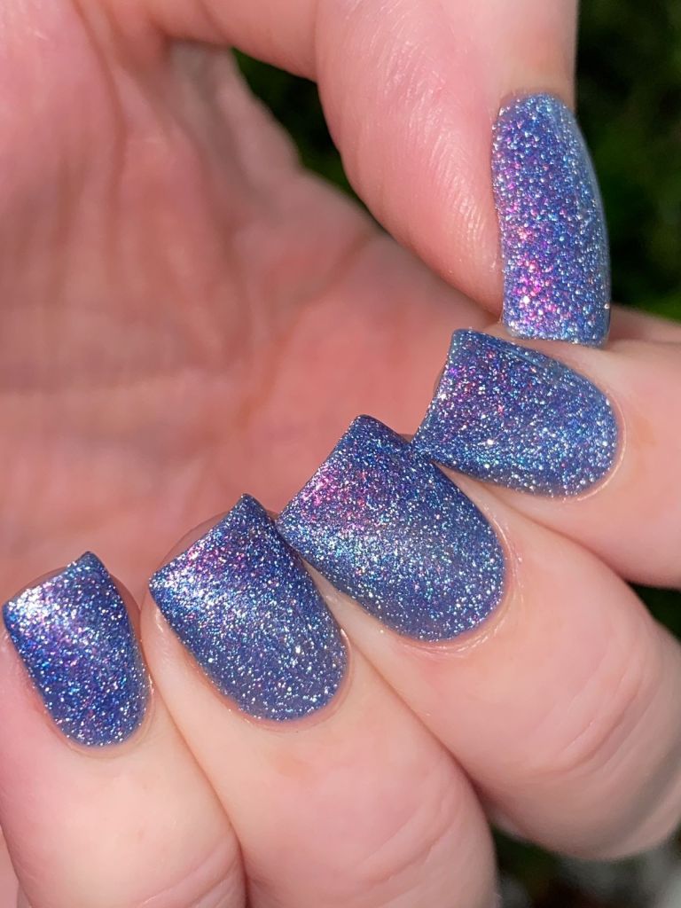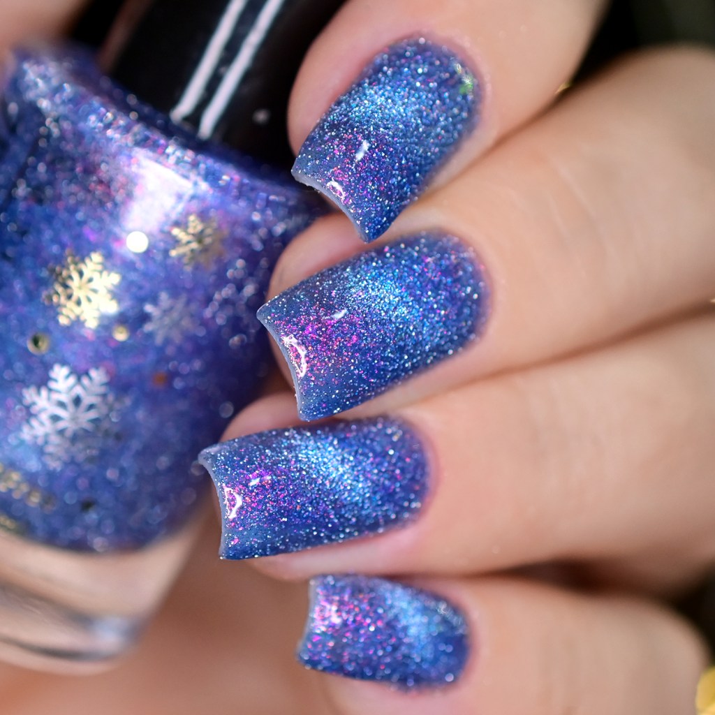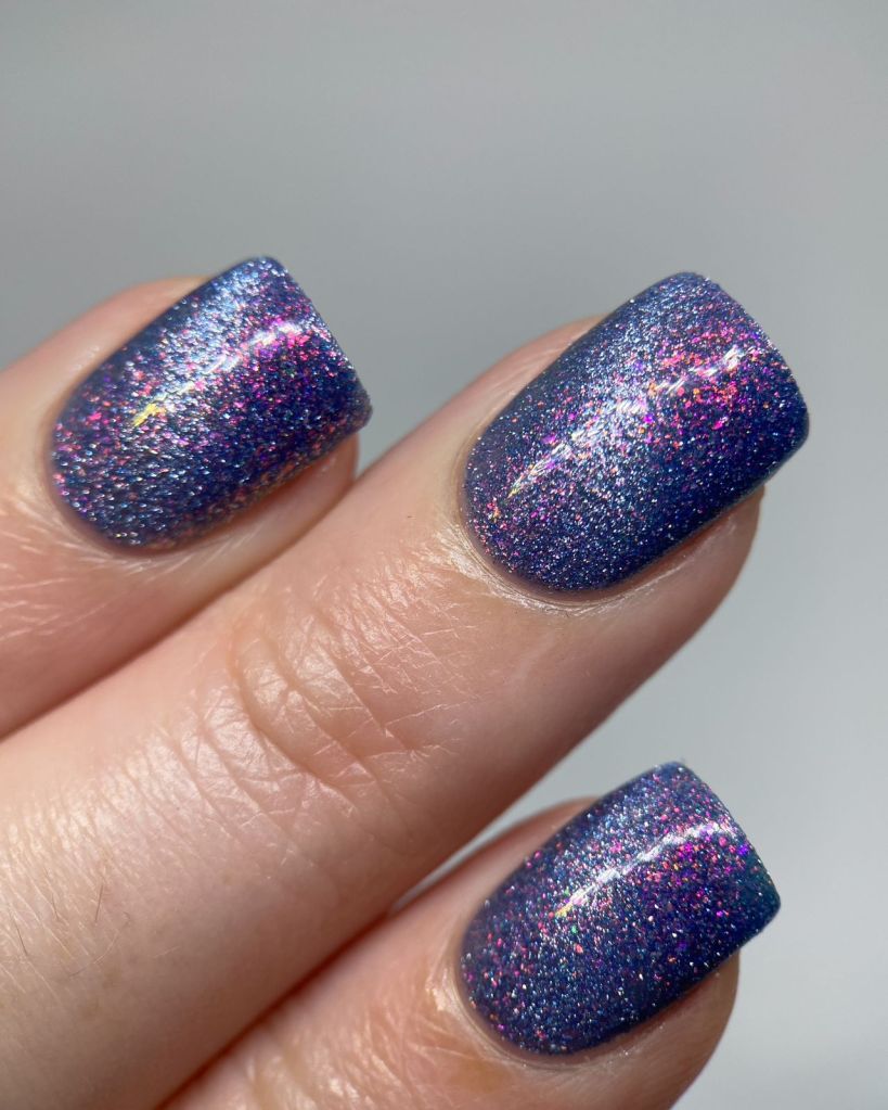 O primeiro é o Frosty Night, um azul hortência com magnético prata, micro flakies rosa/dourado e glitter refletivo prata.
