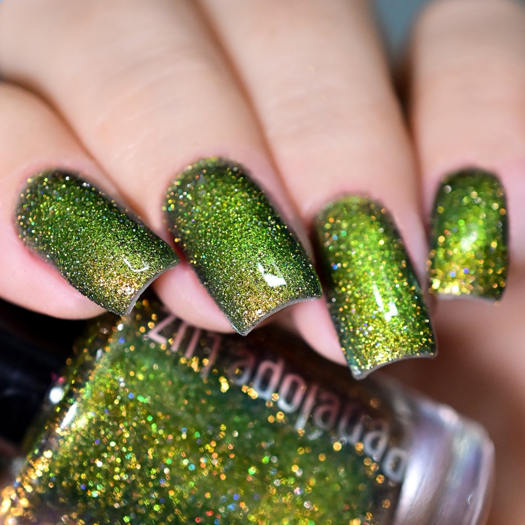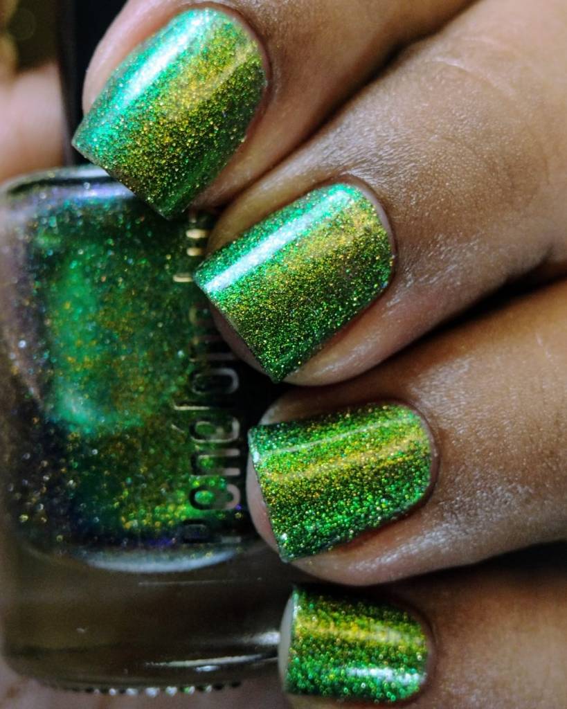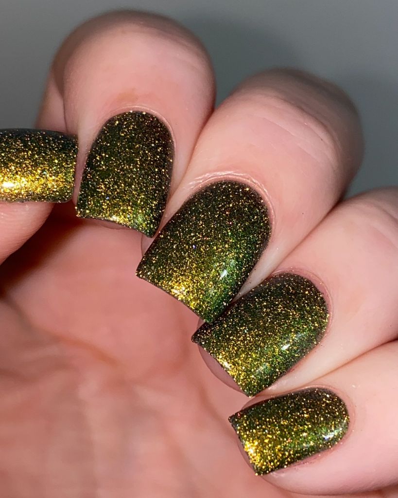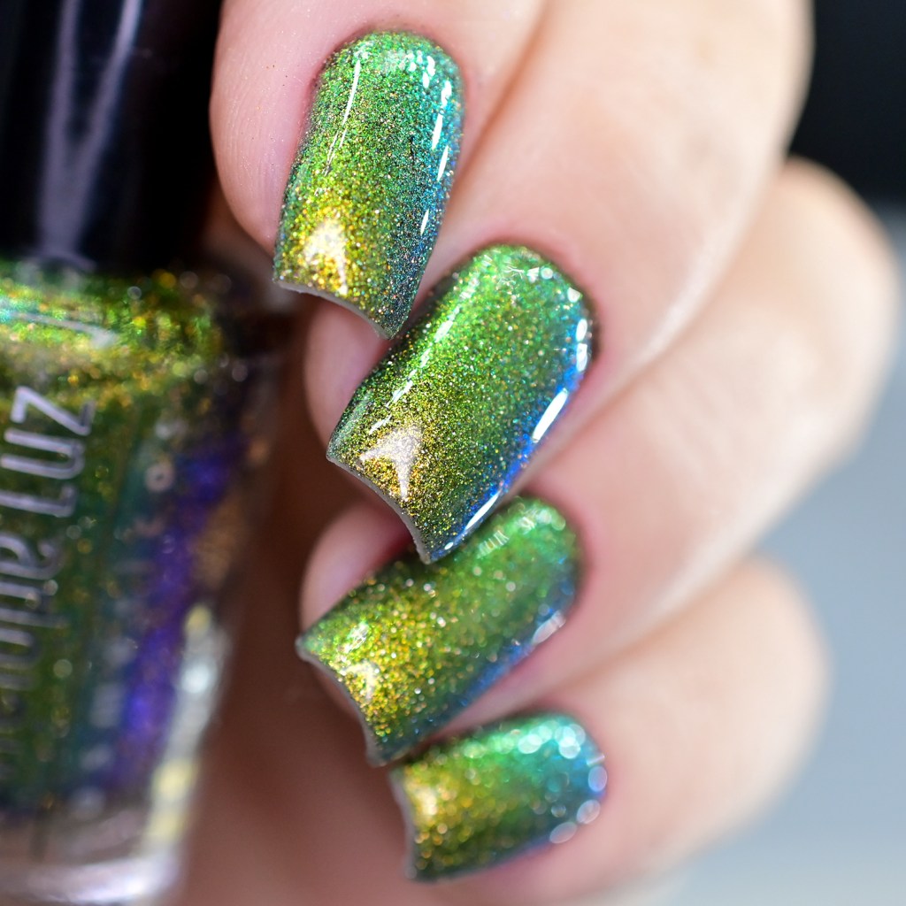 Agora vamos ao Mr. Grinch que é um multichrome verde vivo com shimmer dourado e azul, mais glitter refletivo dourado.