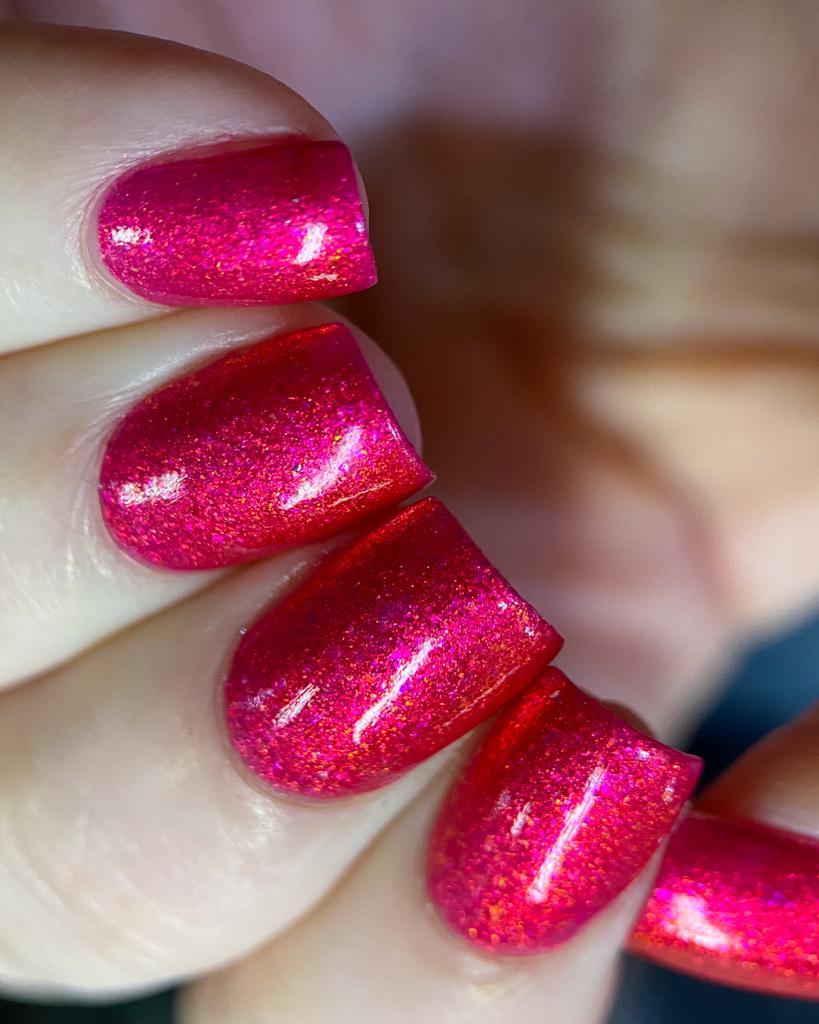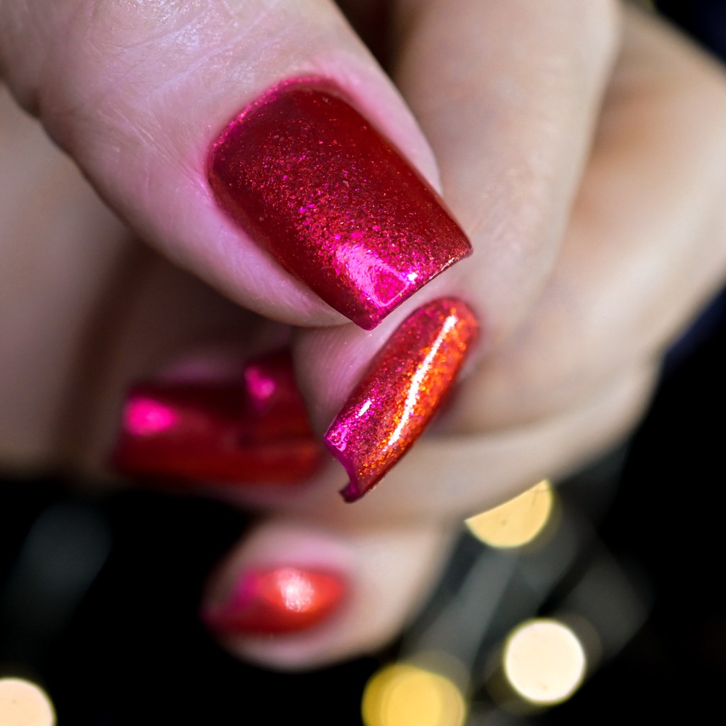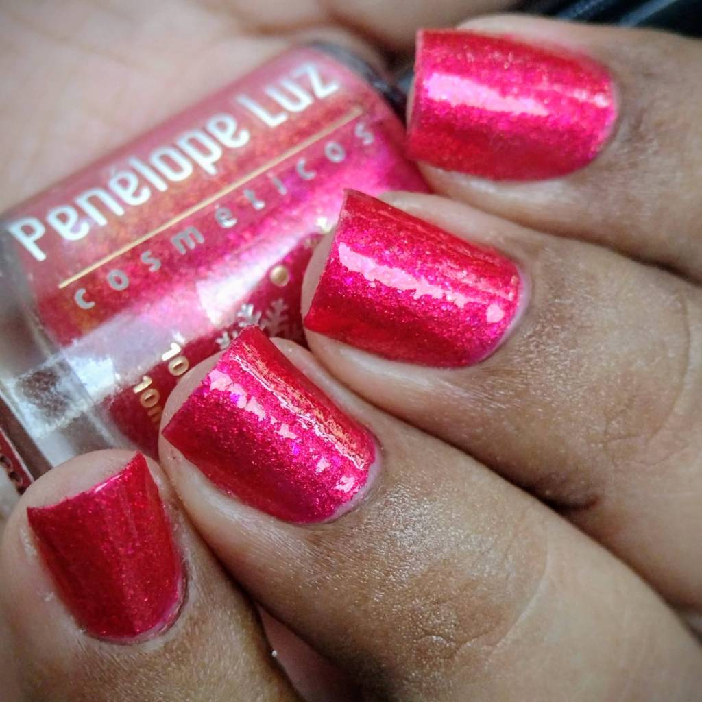 Agora vamos conhecer o Must Be Santa, que é um vermelho rosado claro com shimmer rosa/dourado. Esse esmalte é bem dificil de fotografar, acredito que as fotos onde ele está mais fiel são nas minhas, nas da Tati Matheus – as últimas – e nas da Carol. A câmera da Carol captou muito bem, na minha não (saiu da câmera parecidas com as da Claudinha), mas depois de 12 anos editando foto, raramente não consigo deixar fiel na edição. Nas fotos da Tati ficou com a cor muito fiel, e ela usa o mesmo celular que a Kelly, então para vocês verem como a iluminação faz diferença também, não é só a câmera. E eu uso uma câmera profissional, com a última geração de sensor da Nikon e ainda assim não ficou bom, precisei ajeitar a cor. Eu poderia editar as fotos delas, mas achei melhor deixar para vocês verem como fica diferente às vezes quando sai da câmera e quando muda a iluminação.