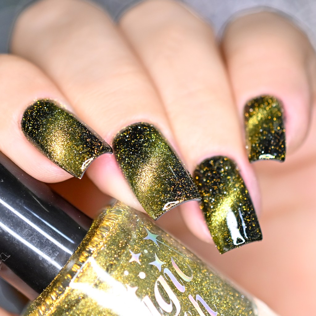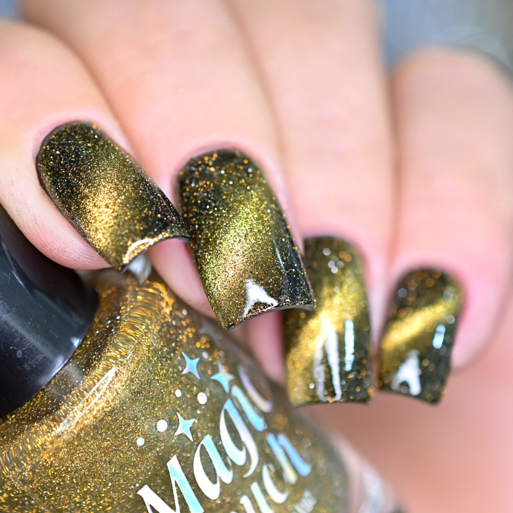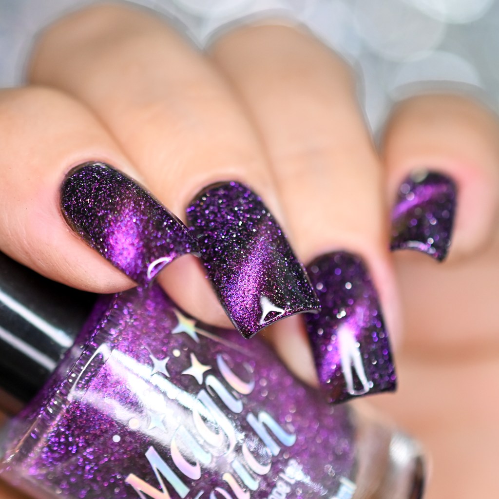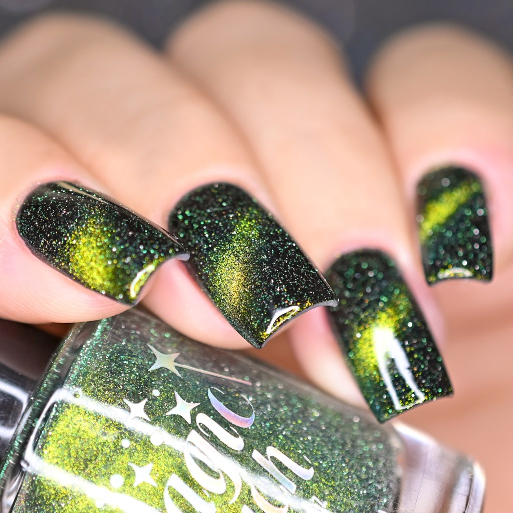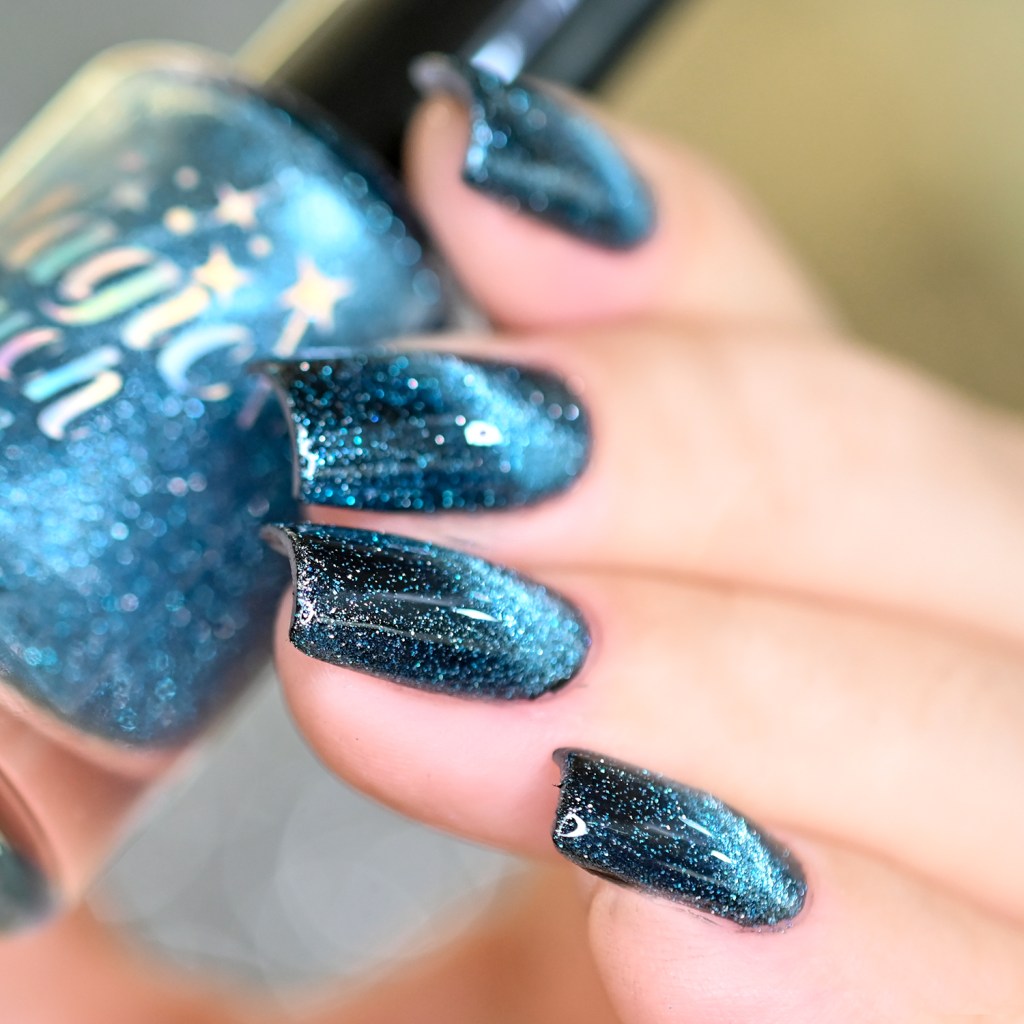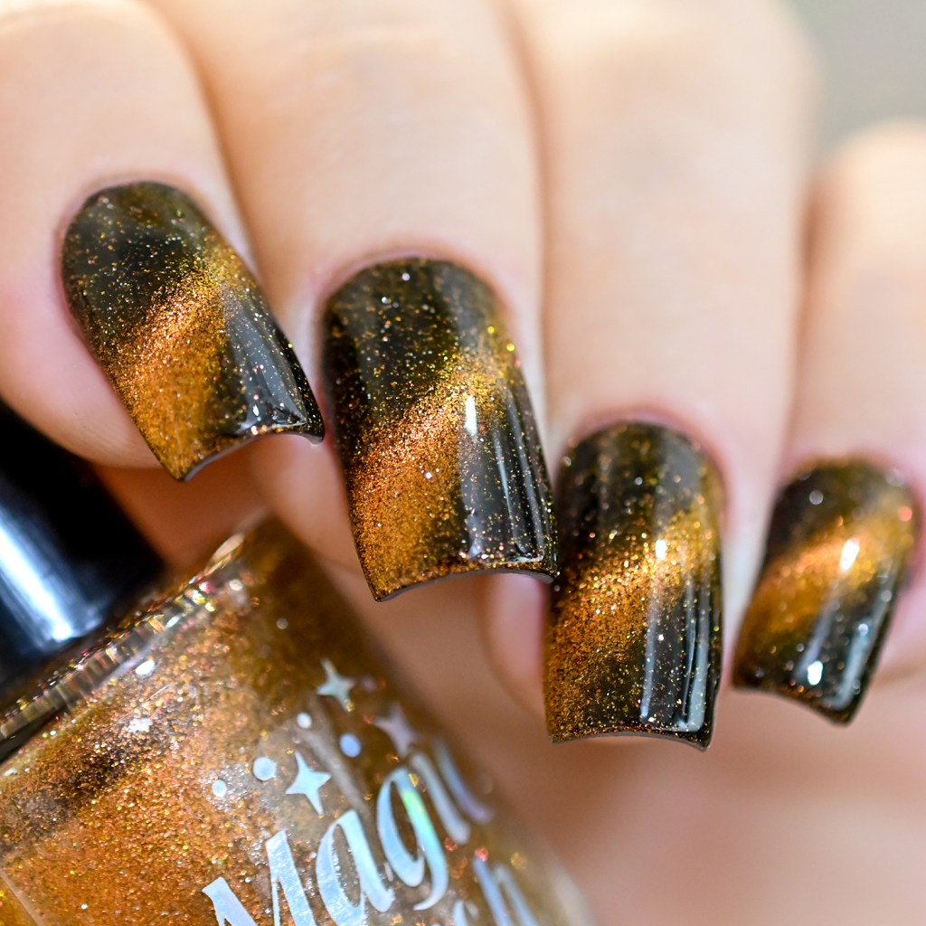 Esse pigmento magnético é 5D, tem o efeito bem forte, realmente lindo! São como aquele prata lindo que uso no Cloudy Day, só que coloridos! Todos estão com uma camada de extra-brilho efeito gel da Risque. Não usei o Over The Glitter porque a quantidade de glitter refletivo é pequena, para que ele não acabasse sendo o protagonista, e de fato tivéssemos os dois acabamentos dividindo harmoniosamente o reinado!