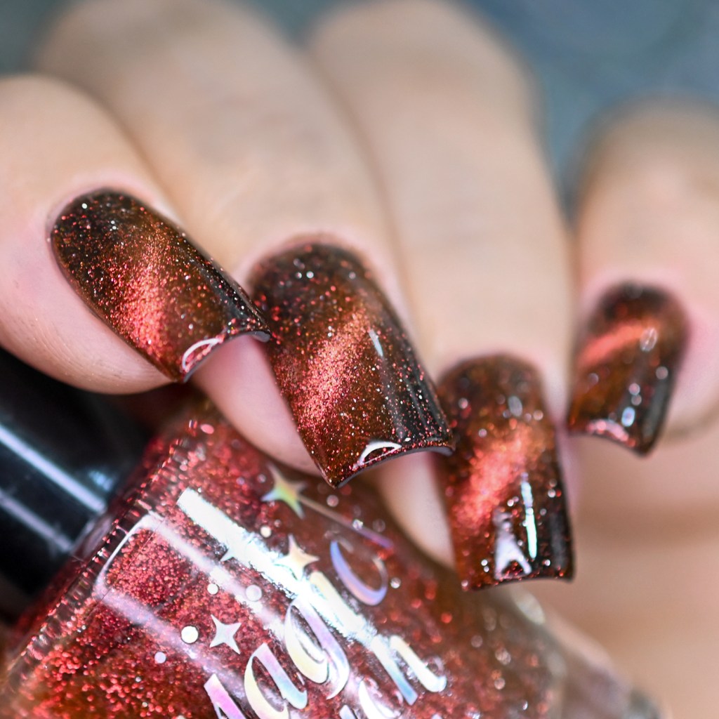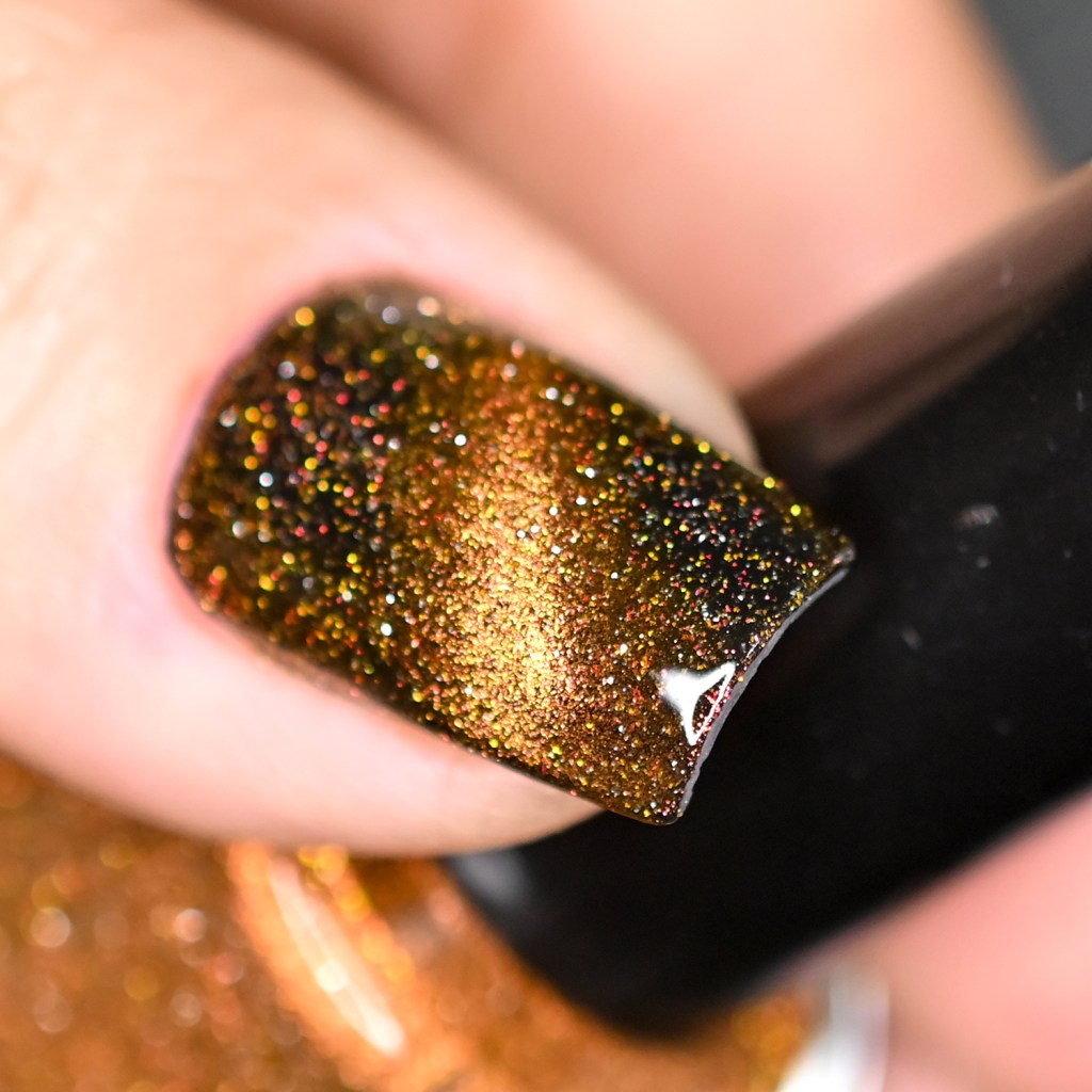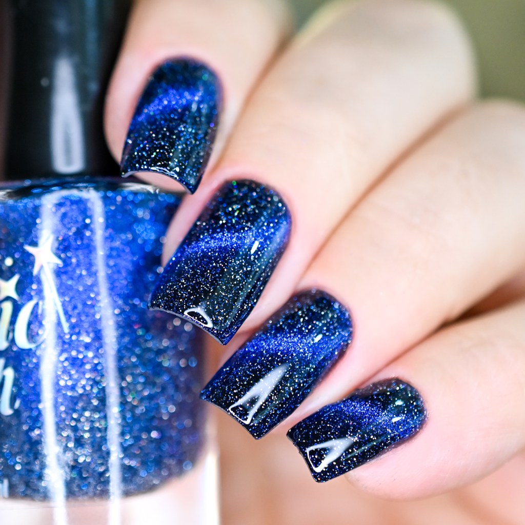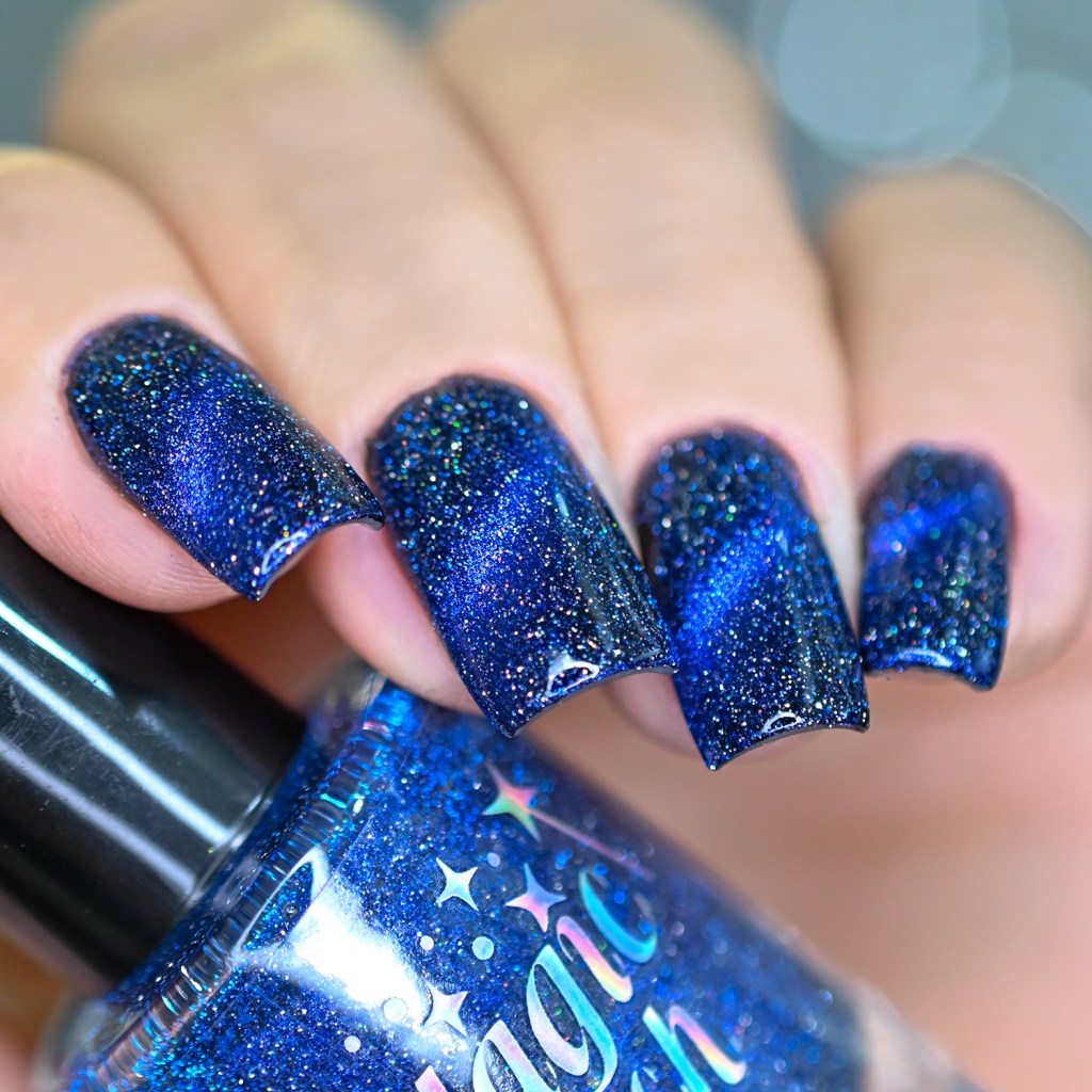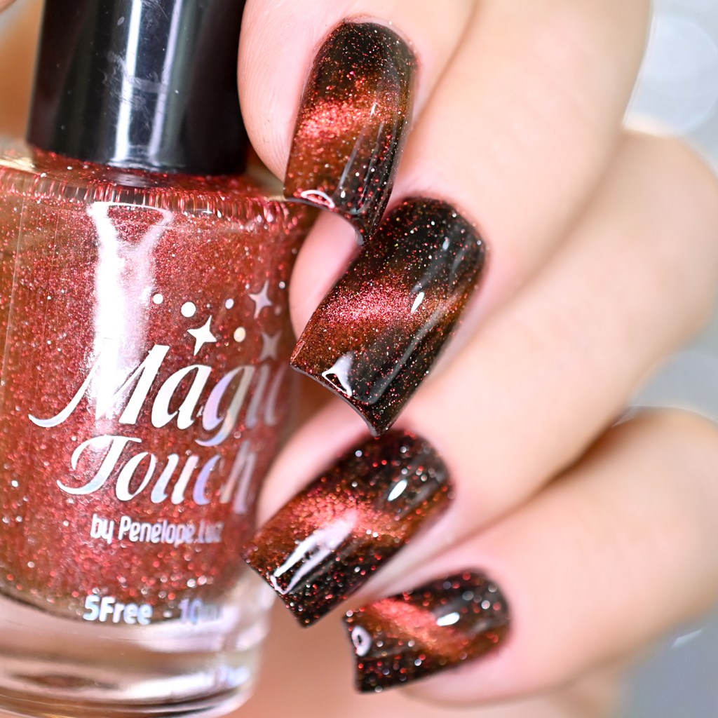 Esse pigmento magnético é 5D, tem o efeito bem forte, realmente lindo! São como aquele prata lindo que uso no Cloudy Day, só que coloridos! Todos estão com uma camada de extra-brilho efeito gel da Risque. Não usei o Over The Glitter porque a quantidade de glitter refletivo é pequena, para que ele não acabasse sendo o protagonista, e de fato tivéssemos os dois acabamentos dividindo harmoniosamente o reinado!