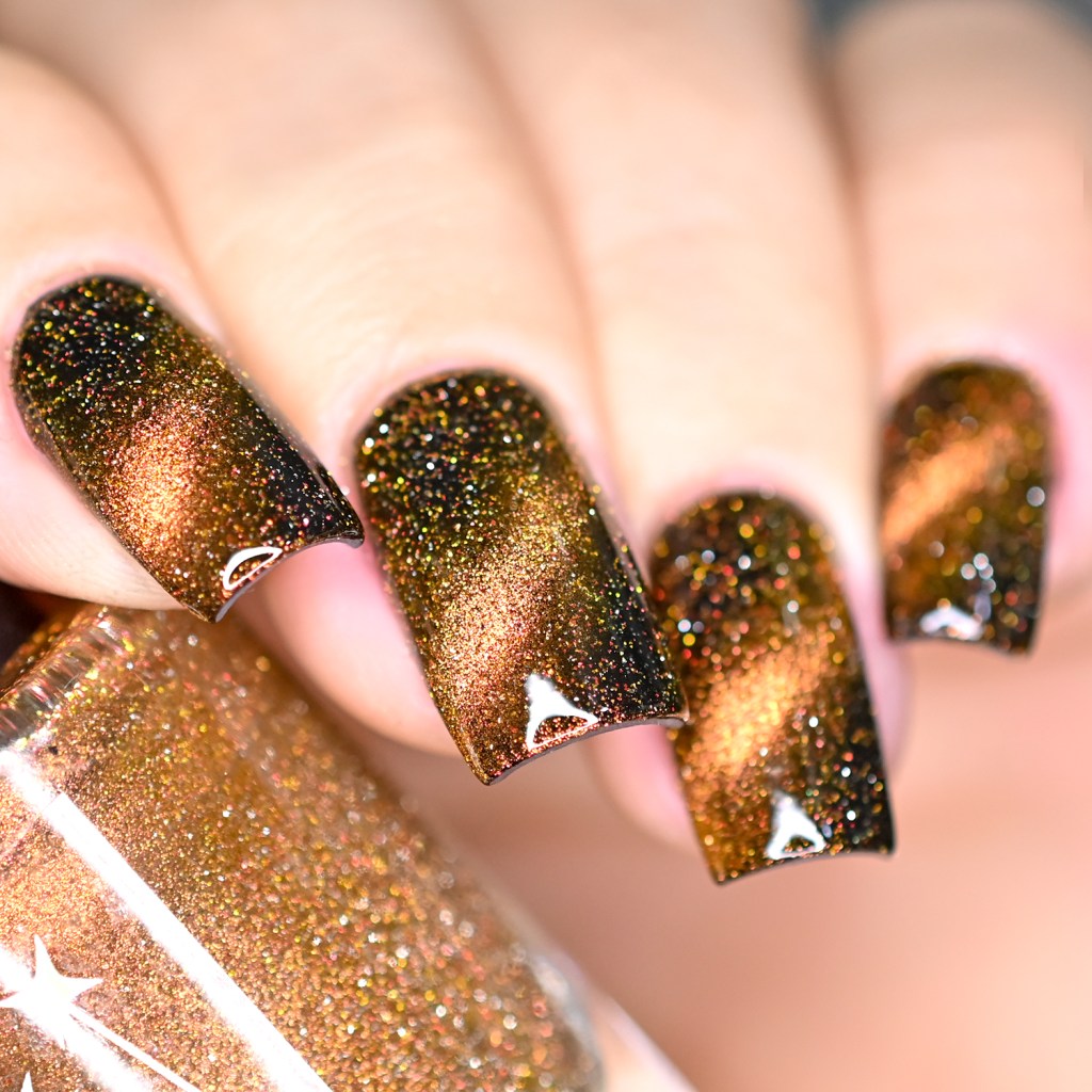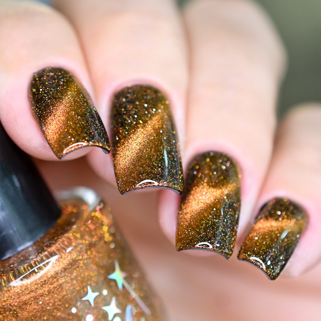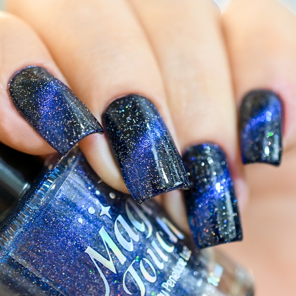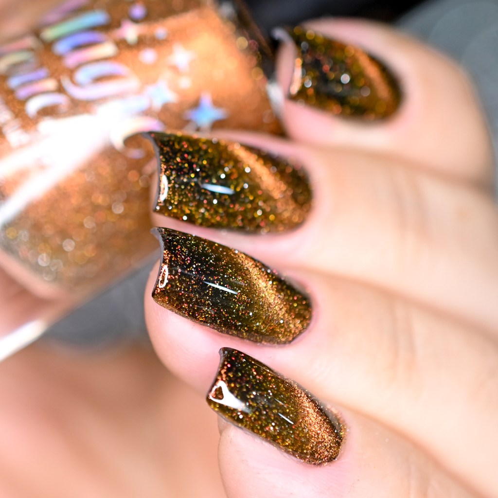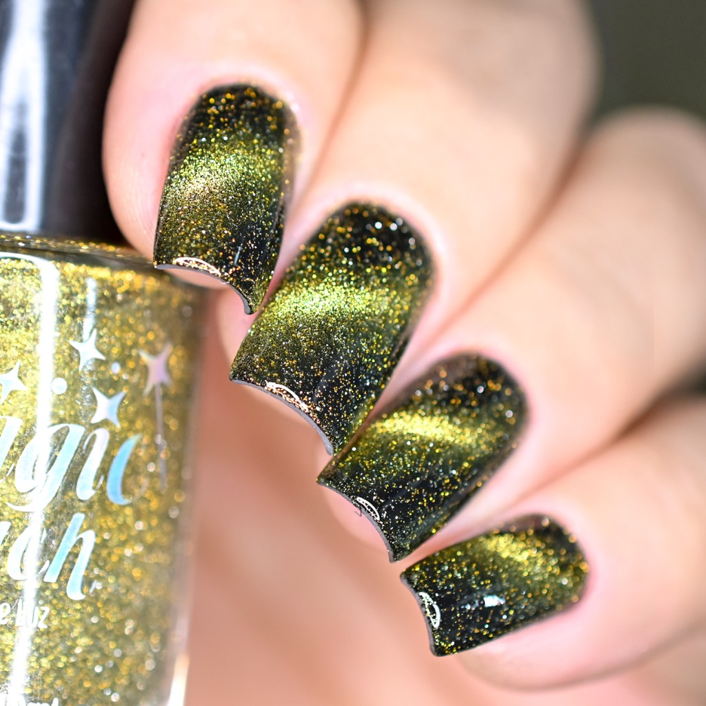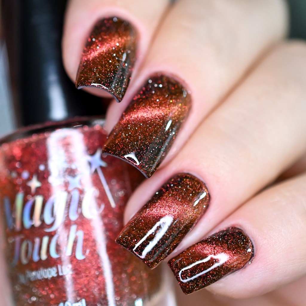 Esse pigmento magnético é 5D, tem o efeito bem forte, realmente lindo! São como aquele prata lindo que uso no Cloudy Day, só que coloridos! Todos estão com uma camada de extra-brilho efeito gel da Risque. Não usei o Over The Glitter porque a quantidade de glitter refletivo é pequena, para que ele não acabasse sendo o protagonista, e de fato tivéssemos os dois acabamentos dividindo harmoniosamente o reinado!