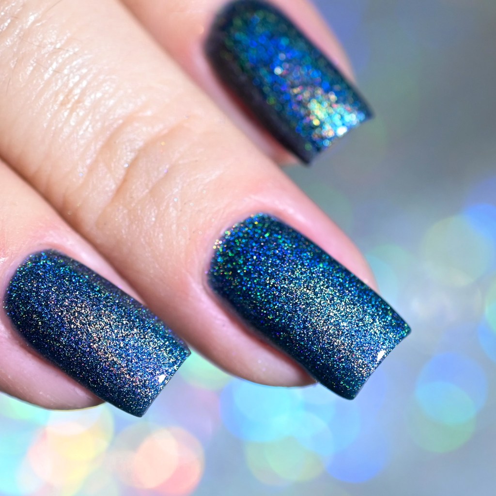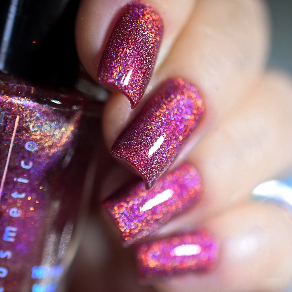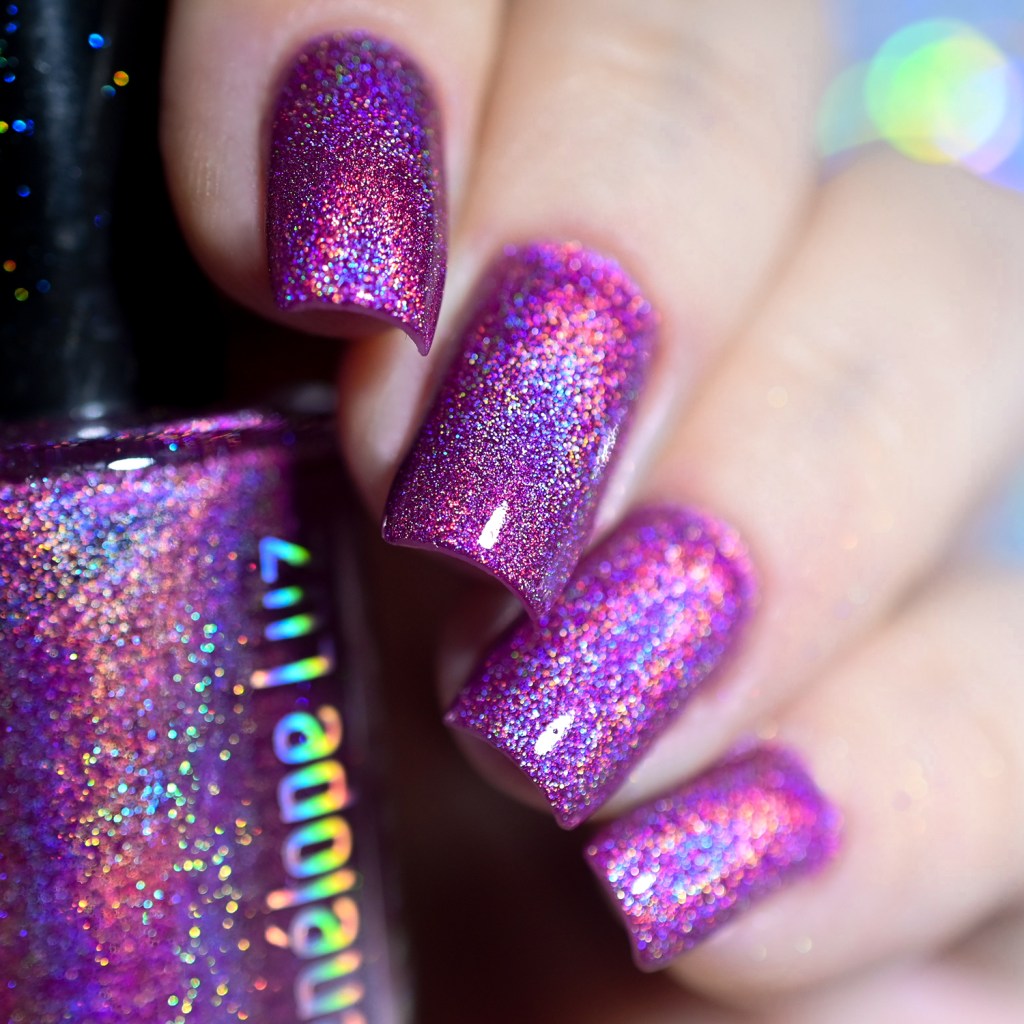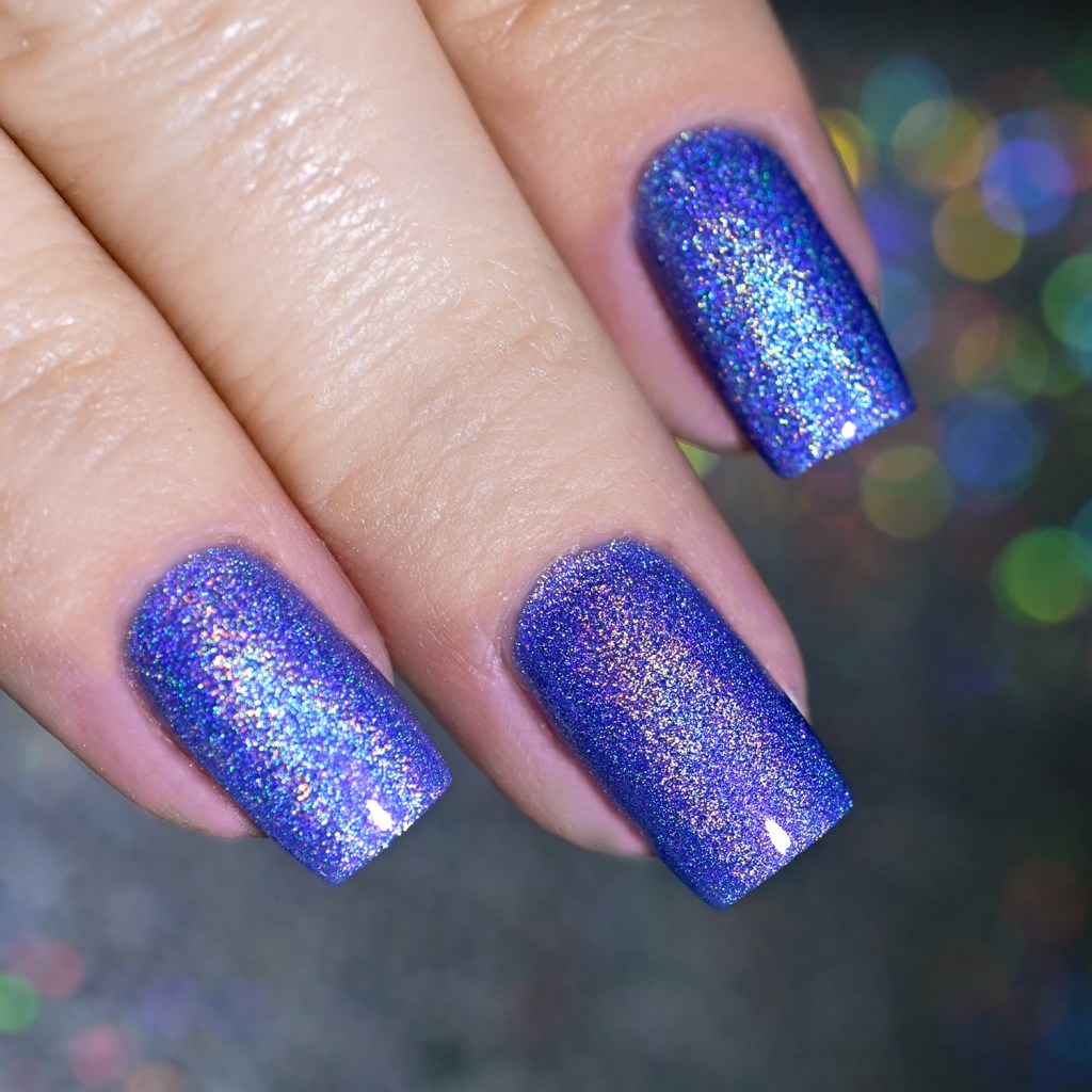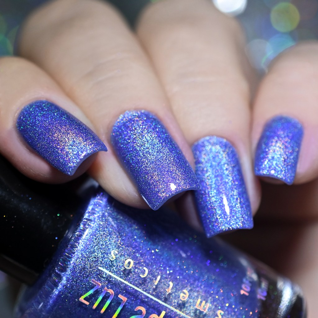 Agora vamos conhecer o Violet, que é um roxinho lindo demais! Quando usarem ele, se quiserem manter o efeito holo bem forte, evitem extra-brilho. Mas se quiserem ele ainda mais vibrante, podem se jogar no extra brilho! Esse é daqueles pigmentos que alteram com extra brilho. O bom é que temos duas versões maravilhosas no mesmo esmaltes ❤