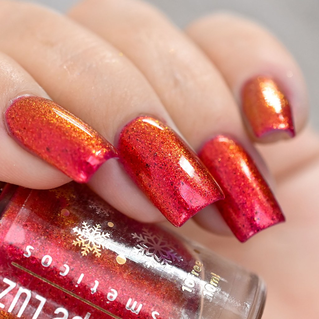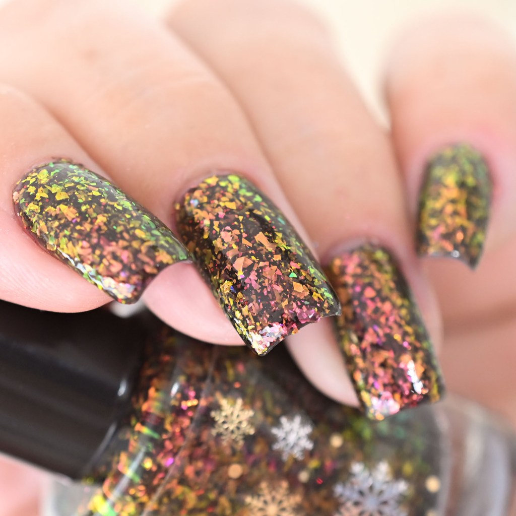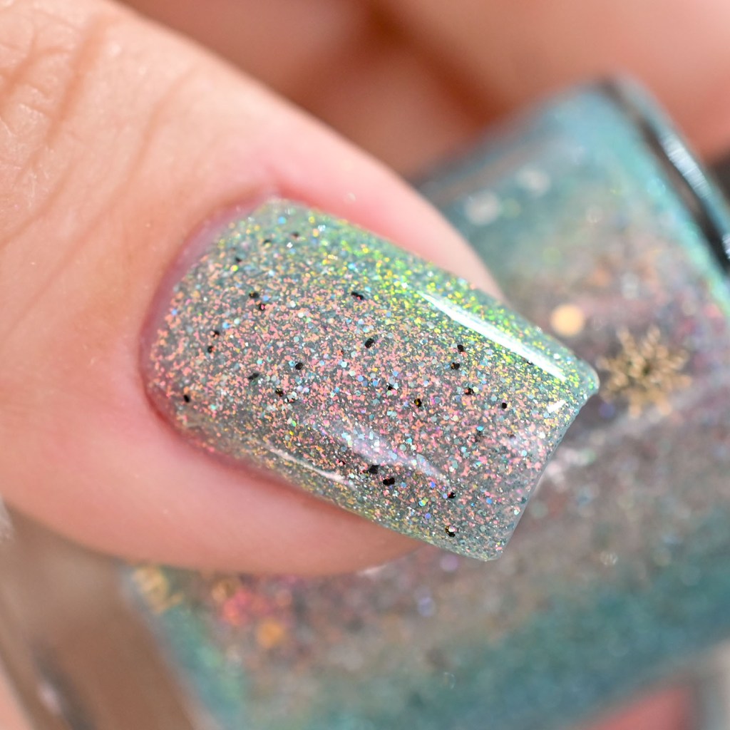 Agora vamos conhecer o Eat With Joy (nem preciso de espírito natalino pra comer com alegria em qualquer época do ano kkkkk), um glitter refletivo com aurora sparkle! Brilha muito!